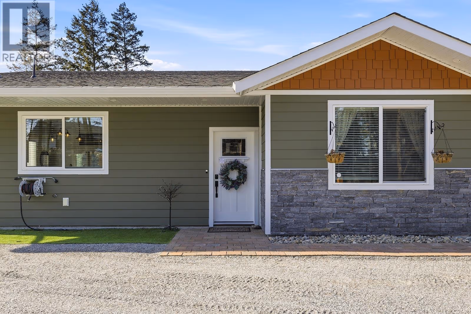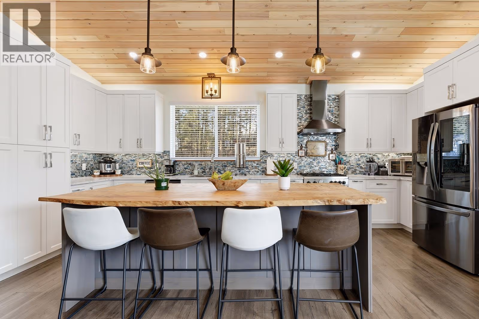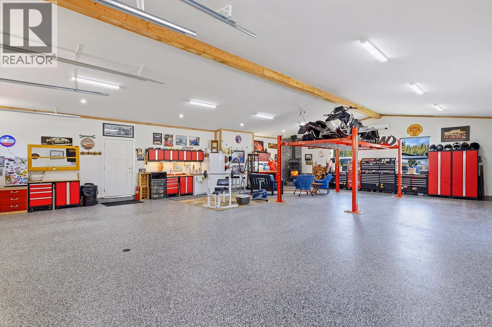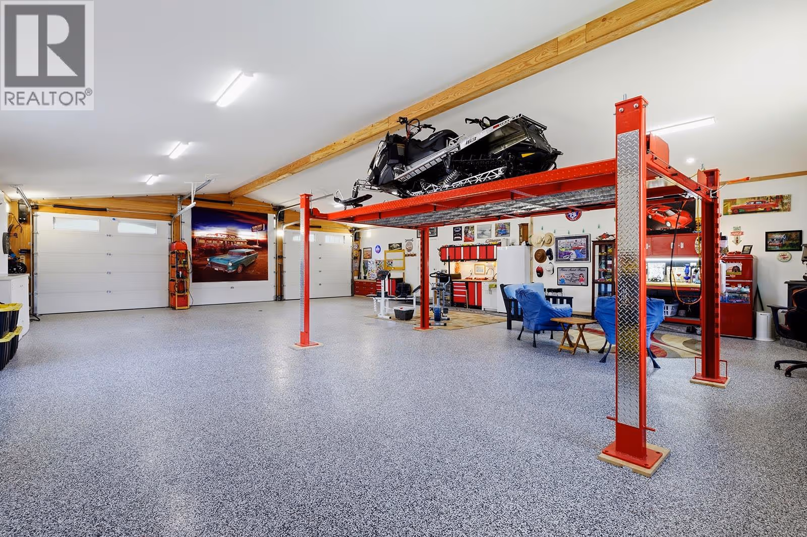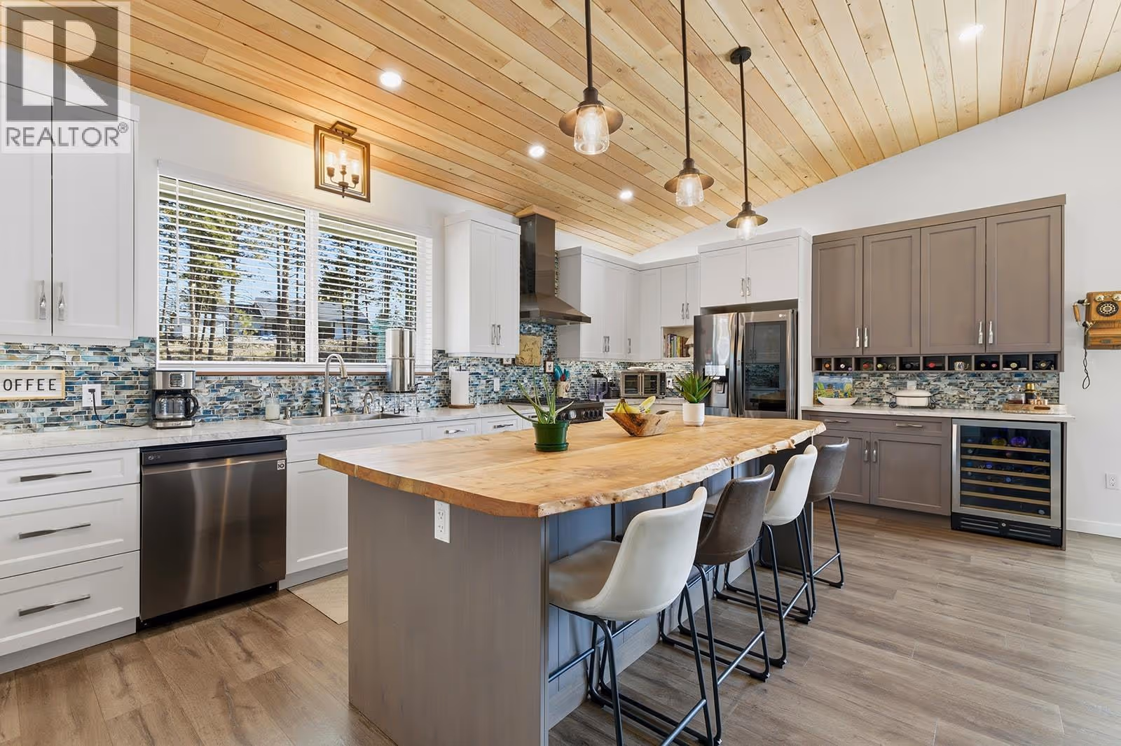 Welcome to this beautifully designed home that perfectly blends comfort,efficiency,and upscale finishes.You’ll appreciate the vaulted ceilings,thoughtful layout,and high-end features throughout. An entertainers dream kitchen features a massive live edge island,Wine fridge and dedicated wine bar,Propane stove, high end appliances,Trash Compactor,Pot drawers,extra-tall cabinetry,pantry,and on demand hot water sink feature.Your private master suite has direct access to your patio with hot tub.Walk-in closet, Spa-inspired ensuite with dual vanity,Dual-head walk-in shower and a deep soaker tub for ultimate relaxation.The living room gives an inviting feel with a fireplace,Live Edge Wood Mantle,and 77” OLED TV (included).Dining room,second large bedroom,guest bathroom and an office space, complete this home.The house and garage offer Heat pumps providing efficient heating and air conditioning throughout,Instant hot water,4” high-density foam beneath the concrete slab for superior heat retention.The fully equipped 6 car garage is a standout and a second entertaining space. Extra high 9 & 11 foot overhead doors, Hot and cold water,floor drain and car wash hookup,Built-in gas tank,High-end JA Roby wood stove, and Epoxy flooring. Whether hosting family gatherings or intimate evenings, this space was built to impress. This property is on the doorstep of Fintry Provincial Park, Beach and Boat Launch and natures playground full of trails, hiking, secret water holes and so much more! (id:62999)