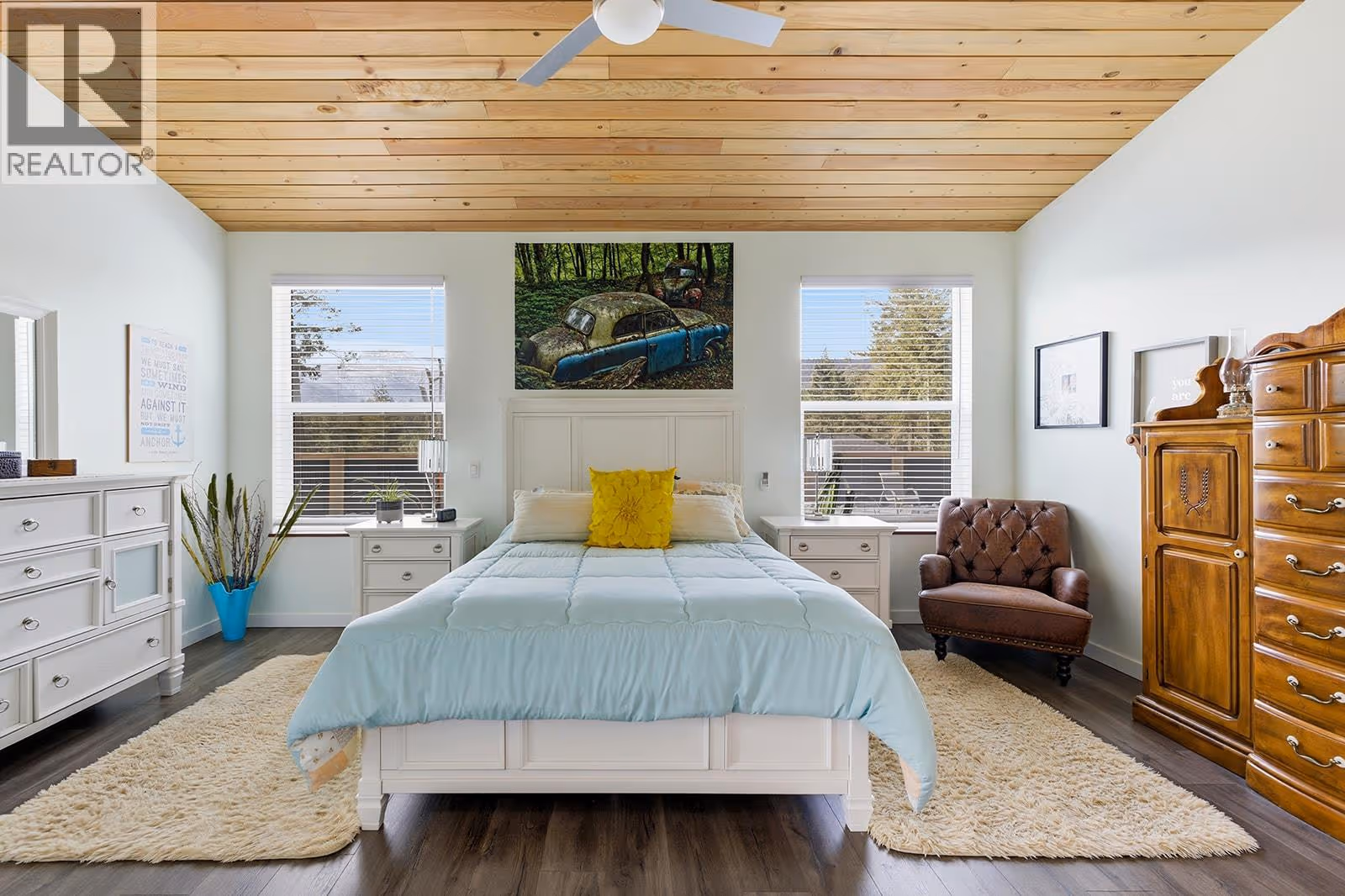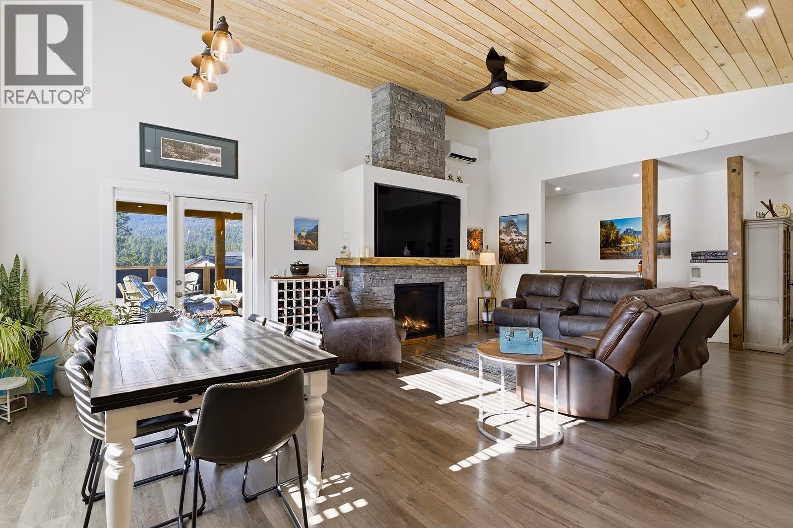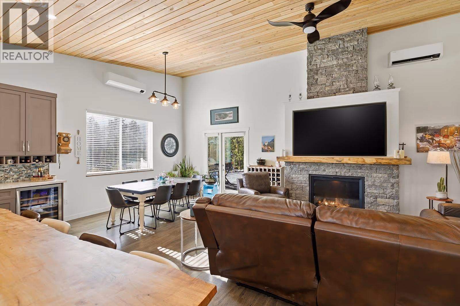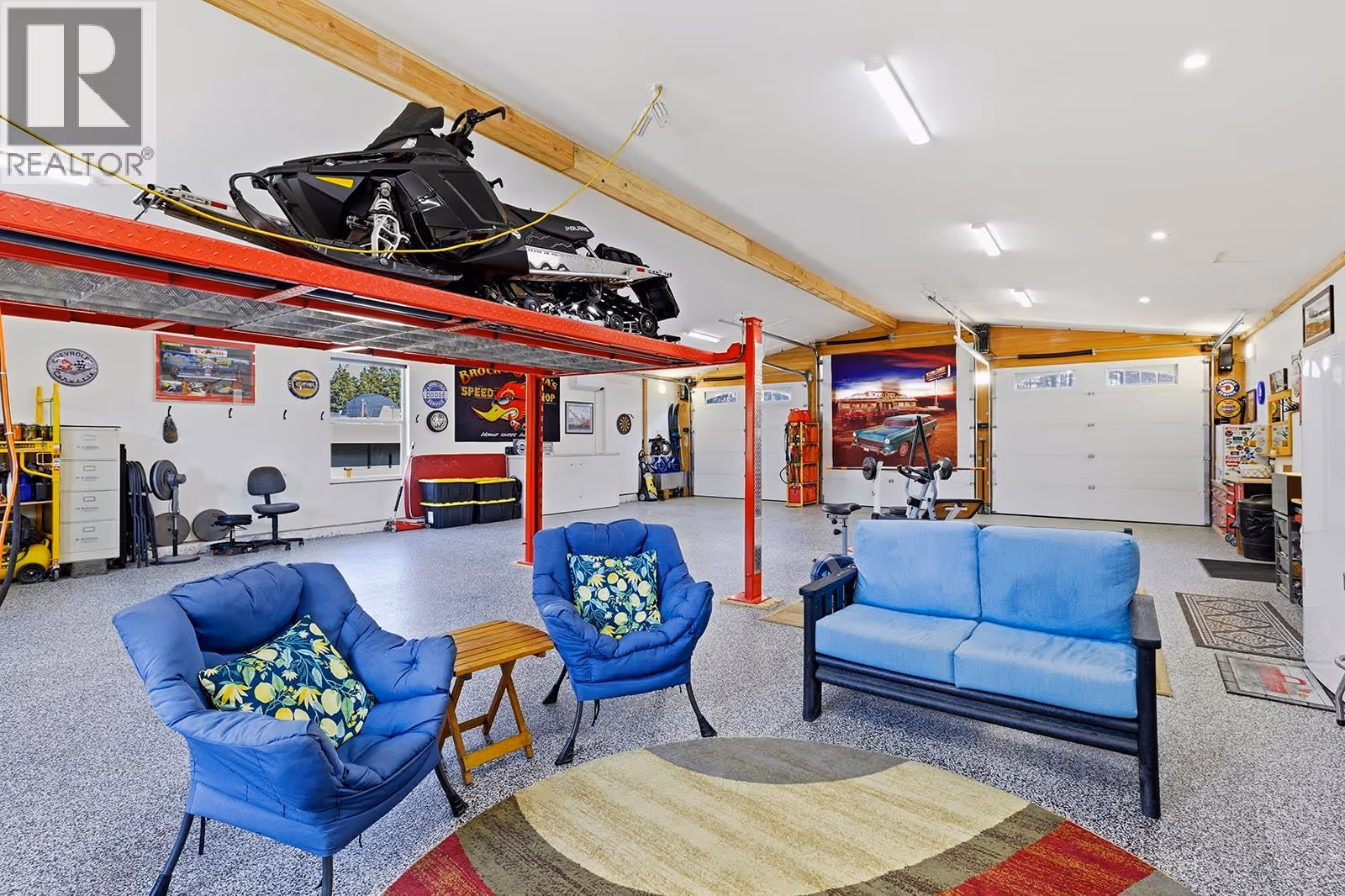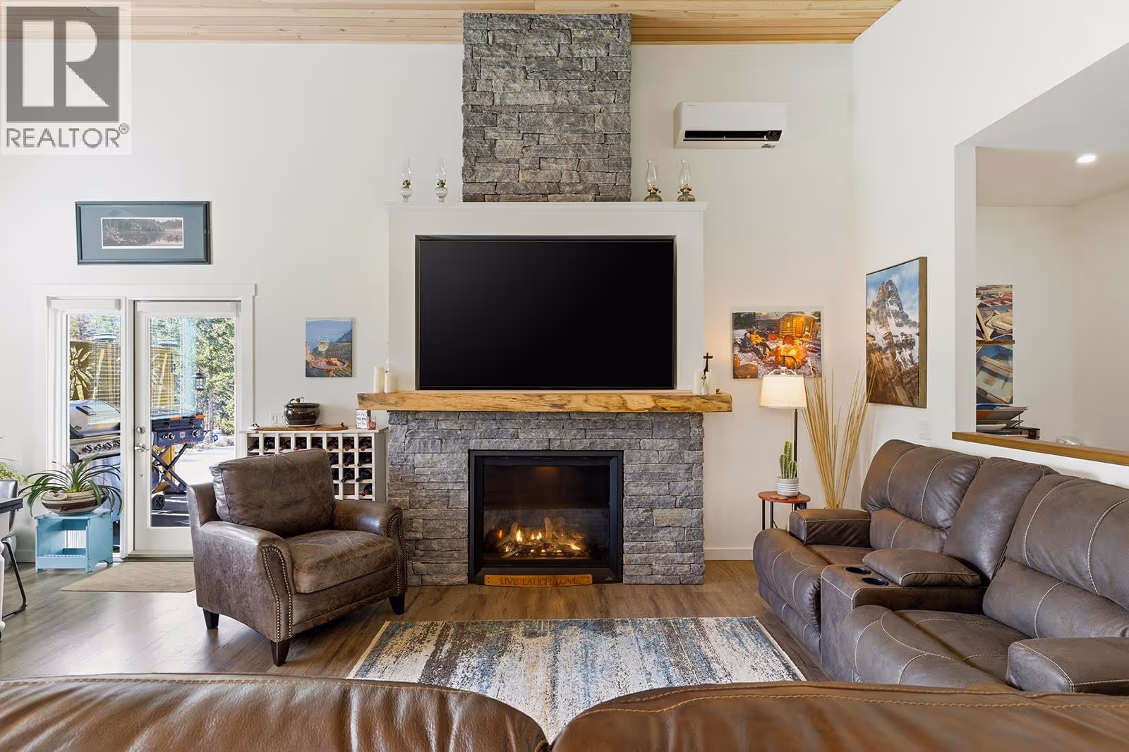 Welcome to this beautifully designed home that perfectly blends comfort,efficiency,and upscale finishes.You’ll appreciate the vaulted ceilings,thoughtful layout,and high-end features throughout. An entertainers dream kitchen features a massive live edge island,Wine fridge and dedicated wine bar,Propane stove, high end appliances,Trash Compactor,Pot drawers,extra-tall cabinetry,pantry,and on demand hot water sink feature.Your private master suite has direct access to your patio with hot tub.Walk-in closet, Spa-inspired ensuite with dual vanity,Dual-head walk-in shower and a deep soaker tub for ultimate relaxation.The living room gives an inviting feel with a fireplace,Live Edge Wood Mantle,and 77” OLED TV (included).Dining room,second large bedroom,guest bathroom and an office space, complete this home.The house and garage offer Heat pumps providing efficient heating and air conditioning throughout,Instant hot water,4” high-density foam beneath the concrete slab for superior heat retention.The fully equipped 6 car garage is a standout and a second entertaining space. Extra high 9 & 11 foot overhead doors, Hot and cold water,floor drain and car wash hookup,Built-in gas tank,High-end JA Roby wood stove, and Epoxy flooring. Whether hosting family gatherings or intimate evenings, this space was built to impress. This property is on the doorstep of Fintry Provincial Park, Beach and Boat Launch and natures playground full of trails, hiking, secret water holes and so much more! (id:62999)