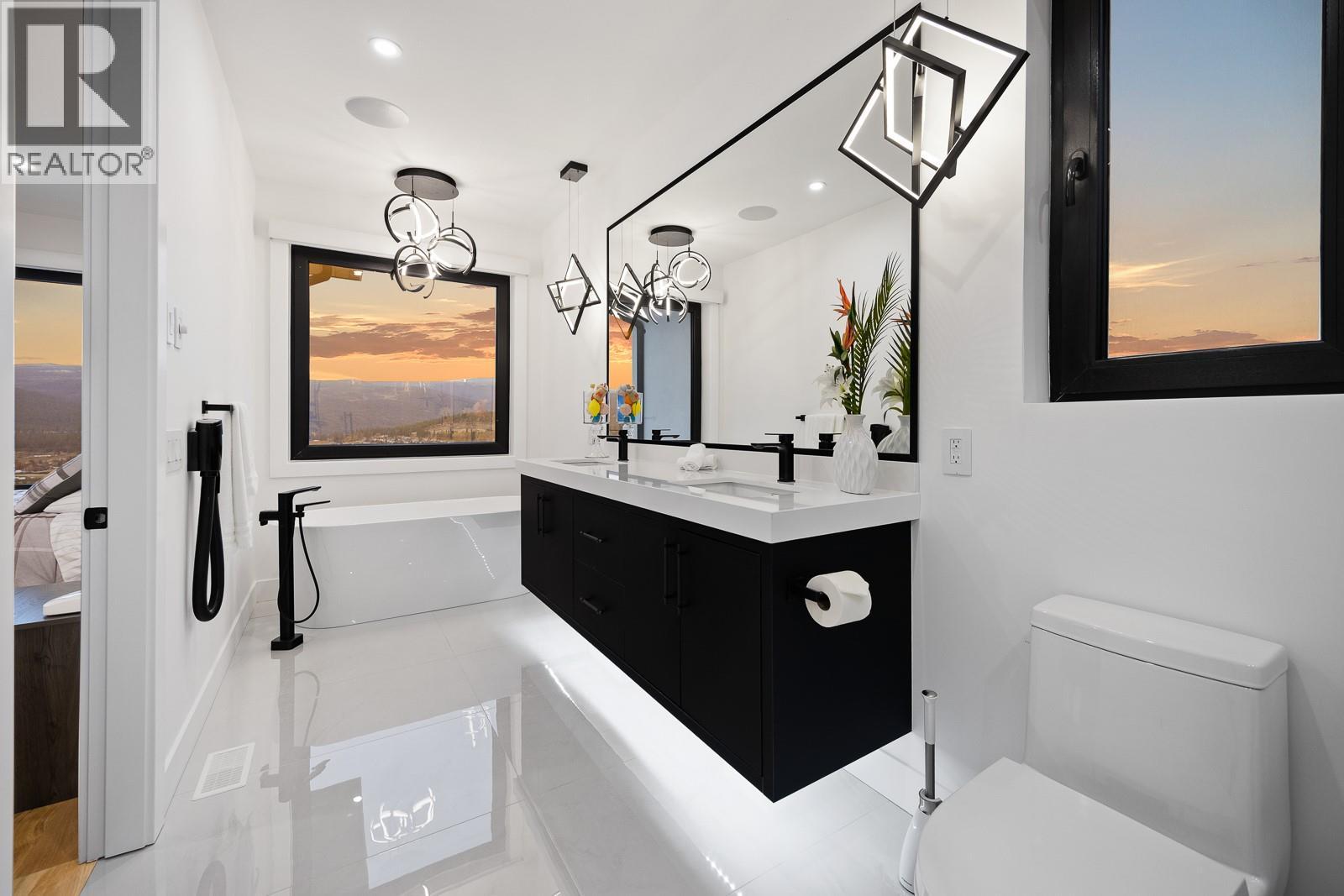 Better Than New! Step into this modern, custom-built masterpiece, meticulously designed for those who appreciate living at the highest level. Expansive south-facing windows illuminate the 30-foot ceilings, showcasing a chef’s kitchen with an oversized island that flows effortlessly onto the spacious covered patio, perfect for taking in the panoramic views. This residence seamlessly blends grand scale with exquisite finishes, including engineered hardwood, custom cabinetry, high-end appliances, & a kitchenette in the bright pantry with access to an additional cooking patio. Outdoors, enjoy low-maintenance syn lawn with a covered swim spa & hot tub, complemented by an outdoor shower, ready for outdoor BBQ kitchen dreams. Live in style on the lower level with a sleek wet bar & media room, plus large sliding doors that create a seamless connection to the outdoors. The triple car garage offers extended ceilings, epoxy floors, built-in storage, with a dog wash to elevate functionality. Upstairs, a private 1-bed legal suite with a full kitchen, patio, and stair lift offers versatile accommodation for your family, guests, or rental potential. Sophisticated tech, including various media zones & exterior cameras, helps to ensure your comfort. From expansive entertaining areas to thoughtfully designed family amenities, this home epitomizes elevated living with unparalleled Black Mountain prestige, offering a rare combination of scale, functionality & refined sophistication. GST paid (id:62999)