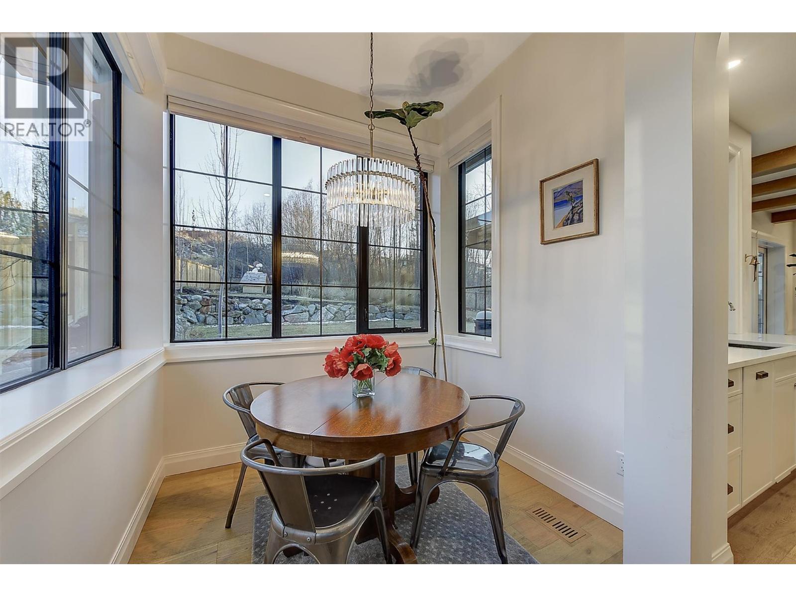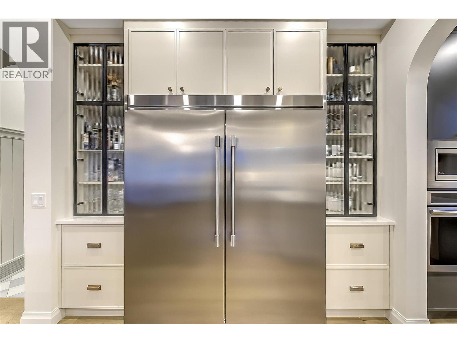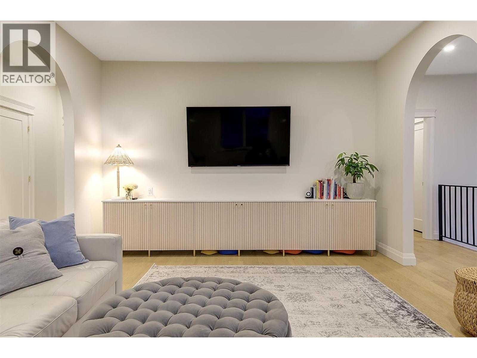 Tucked into a quiet cul-de-sac, this European-inspired residence offers over 4500 sqft of beautifully finished living space backing onto protected parkland. A dramatic arched walnut front door welcomes you into spacious foyer opening to a sun-filled great room with soaring ceilings. White oak flooring, custom Westwood millwork, quartz surfaces & designer lighting create a warm yet sophisticated aesthetic throughout. The chef’s kitchen is anchored by an oversized island, premium appliances and a fully equipped butler’s pantry for seamless entertaining. A charming morning room provides casual dining space, while an additional dining area with picturesque streetscape views easily hosts larger gatherings. The great room features a striking cast-concrete fireplace and triple French doors opening to the private backyard, blending indoor and outdoor living. Upstairs offers 4 bdrms, including a stunning primary retreat w/vaulted ceilings, lake views and a spa-inspired 6pc ensuite. Two additional bedrooms, a guest bedroom w/ensuite and a spacious upper-level family room complete the level. The lower level includes a finished gym plus approx 1500 sqft ready for future development. Built with ICF construction and triple-pane windows for exceptional efficiency, this home also features a triple garage, RV parking, RV sanitary connection & rough-ins for a pool & hot tub. Ideally located just minutes to shopping, schools, dining, and hiking trails, this is luxury living in a premier setting (id:62999)