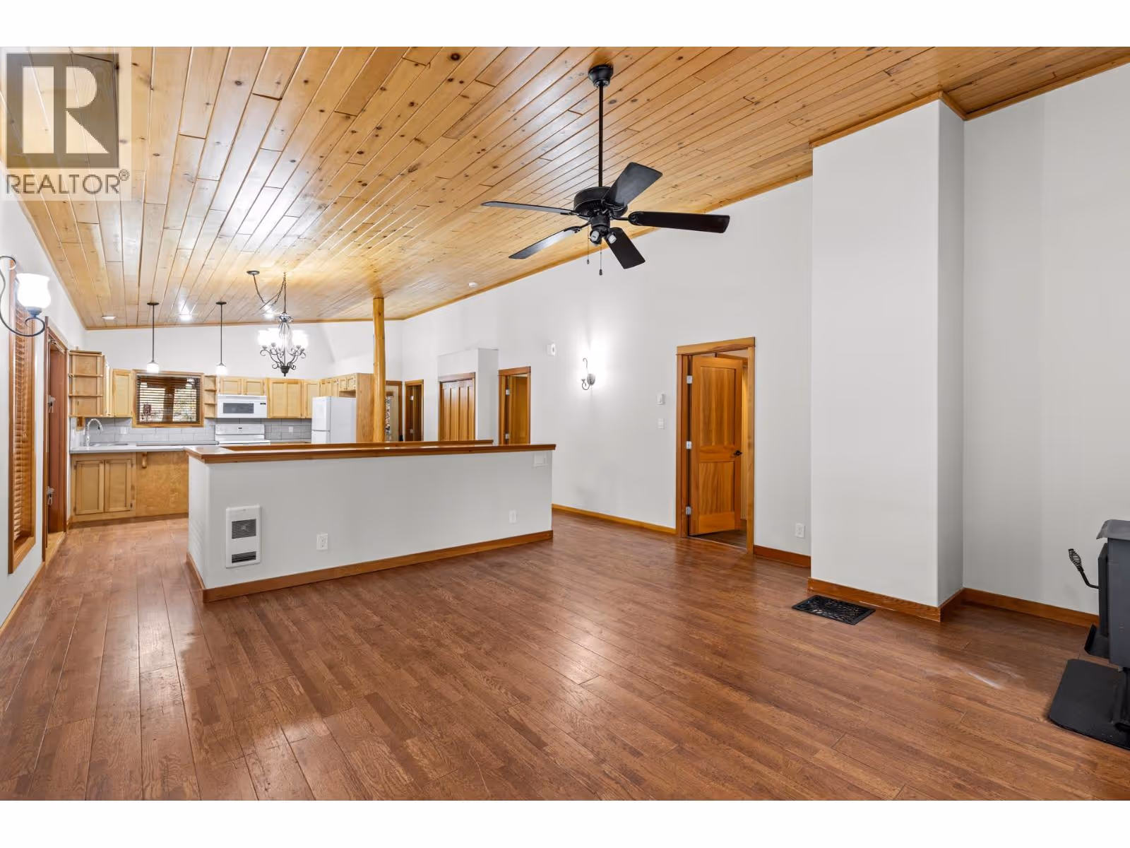 Step into the warmth and charm of this beautifully custom-built home, perfectly situated on a generous 0.47-acre lot surrounded by parks, trails, and endless recreation opportunities. With four bedrooms, three bathrooms, and 2,383 square feet of thoughtfully designed living space, this home offers the perfect blend of comfort, style, and flexibility. The main level welcomes you with an inviting open-concept design highlighted by stunning wood vaulted ceilings and an expansive wraparound covered deck—ideal for morning coffee, evening sunsets, and year-round entertaining. The spacious primary bedroom features a walk-in closet and private ensuite, while a second bedroom and full bathroom complete this level with ease and convenience. Downstairs, the fully renovated basement shines with new flooring, fresh paint, updated lighting, and a beautifully finished bathroom with dual vanities. With a separate entrance and suite rough-in already in place, this level offers excellent potential for extended family living or future rental income. Outside, you’ll appreciate the oversized detached double garage, abundant additional parking, and the freedom to store all your vehicles, recreational toys, and equipment with ease. The exterior showcases gorgeous woodwork and beams, complemented by a durable metal roof designed to stand the test of time. If you’re looking for space, privacy, income potential, and a peaceful natural setting to call home, this property truly has it all. (id:62999)