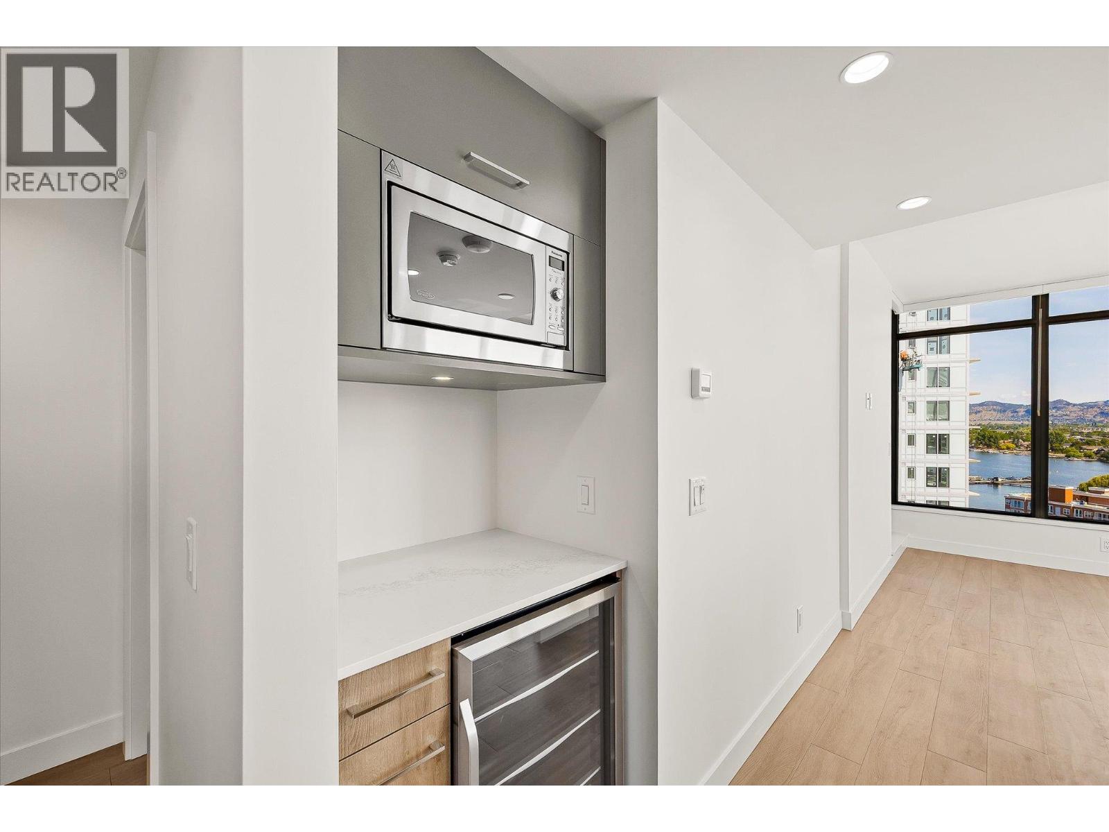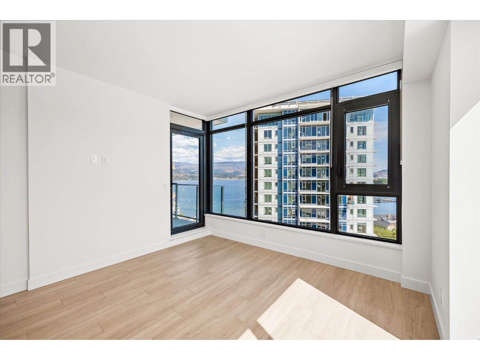 Welcome to premium resort-style lakeside living at AQUA Phase 1. This NE facing corner suite offers 2 bedrooms and 2 bathrooms, thoughtfully positioned to capture tranquil water and mountain views from its patio. The home includes 1 secure parking stall, 1 storage locker and 1 bike locker and features upgraded closet organizers and a customized laundry storage system. Built with quality in mind, this 15-storey concrete tower offers 8 inches of concrete between floors, oversized windows, and a central hot water system (included in strata fees). Enjoy quiet, energy-efficient comfort through VRV heating & cooling paired with an ERV system. The home is also fiber-optic wired and finished with quartz countertops and a premium stainless-steel appliance package. Pet-friendly living is welcomed here with 2 pets and no size restrictions. AQUA’s resort-caliber amenities include a 5th-floor outdoor pool and hot tub, landscaped BBQ area, fireside lounge, two-storey 2,000 sq. ft. gym with yoga space, co-working area, shared kitchen, and dog wash station. Ownership includes priority access to membership opportunities at the onsite Aqua Boat Club (available at current market rates, subject to availability) - your gateway to unforgettable days on the lake. Step outside to experience Kelowna’s vibrant waterfront, surrounded by shopping, dining, and recreation. This home is covered by new home warranty. Measurements are approximate & should be verified if important. Price is Exclusive of GST. (id:62999)