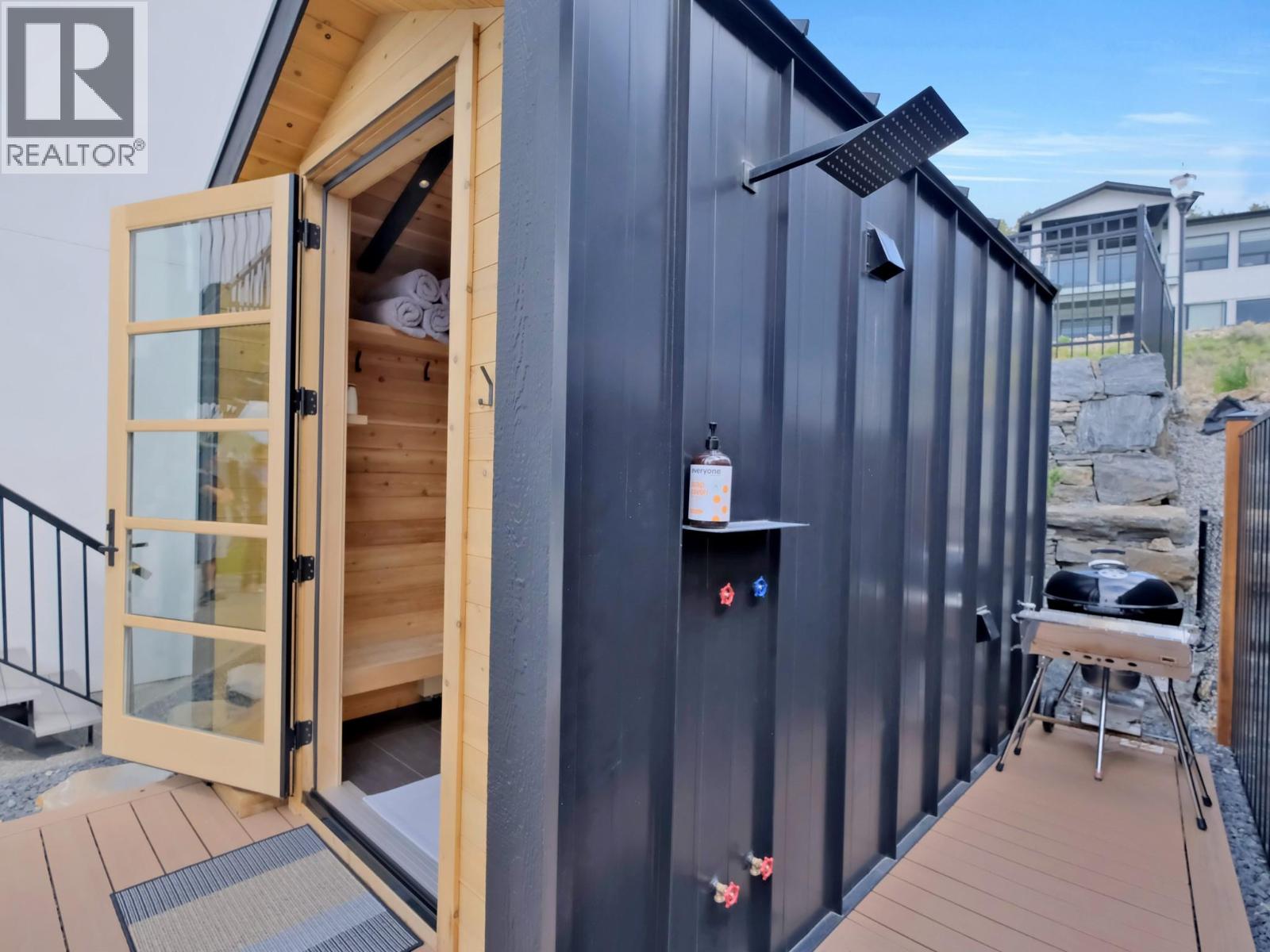Experience this contemporary custom home in Kelowna, boasting breathtaking panoramic views of the city, Okanagan Lake, and the majestic mountains. A unique feature is the rare extra RV parking, a valuable asset in the neighborhood. Inside, a grand 13-foot foyer welcomes you, leading to the spacious 10-foot ceilinged living and kitchen areas. The custom kitchen is a chef's delight with quartz countertops, built-in appliances, and custom cabinetry throughout the home. Conveniently located near the entrance is an office with custom cabinetry. Upstairs, the master suite offers a spa-like ensuite with heated floors. The basement provides two bedrooms, two full bathrooms, a family room, and a guest bedroom. A separate one-bedroom legal suite adds versatility. The heated two-car garage includes hot and cold water. Outside, the property is fully fenced for privacy. Enjoy a custom Scandinavian sauna, a relaxing outdoor area, an outdoor shower, and a hot tub, all designed to maximize enjoyment of the stunning Kelowna surroundings. This home seamlessly blends luxurious living with exceptional, sought-after amenities. (id:62999)