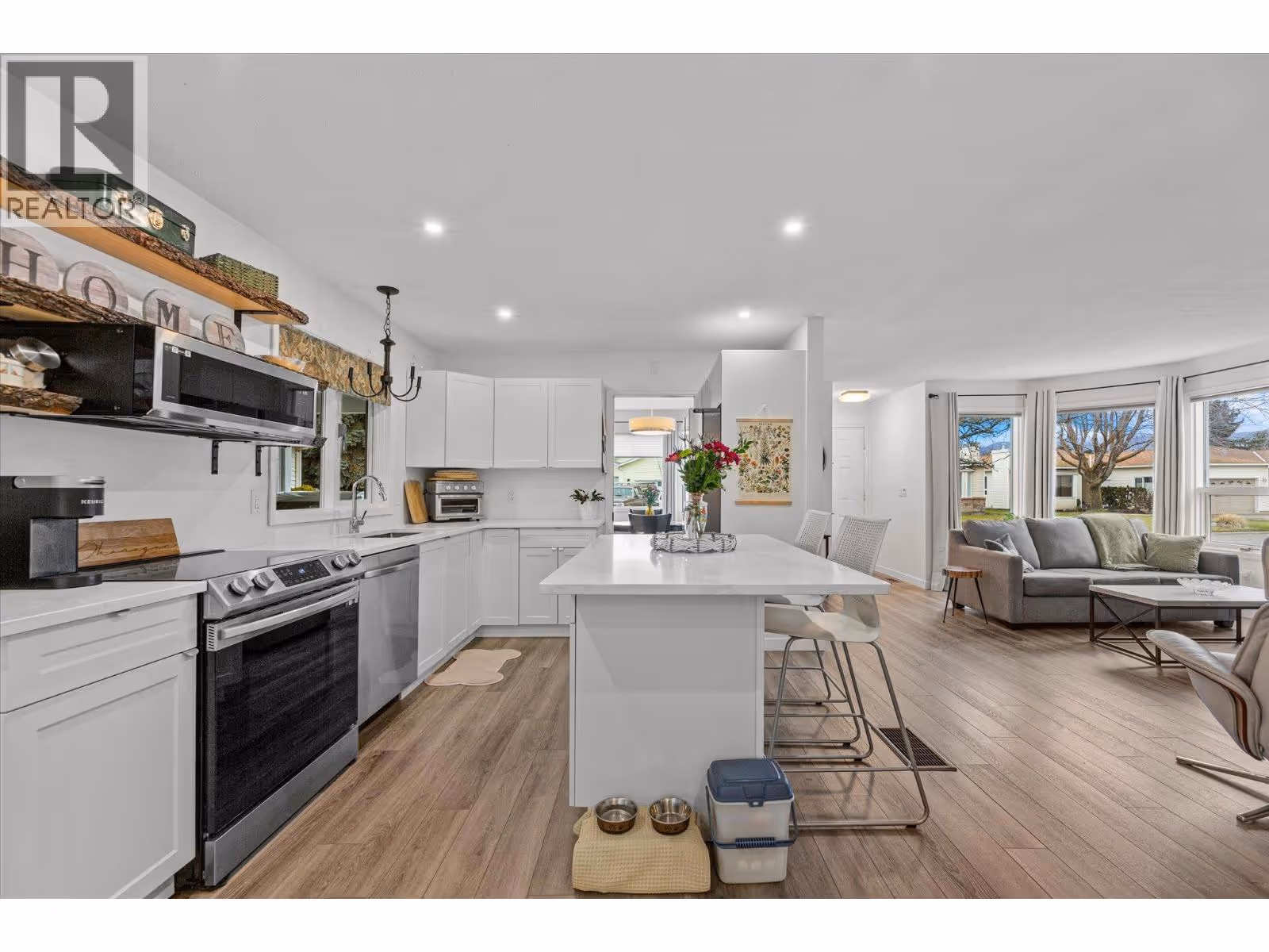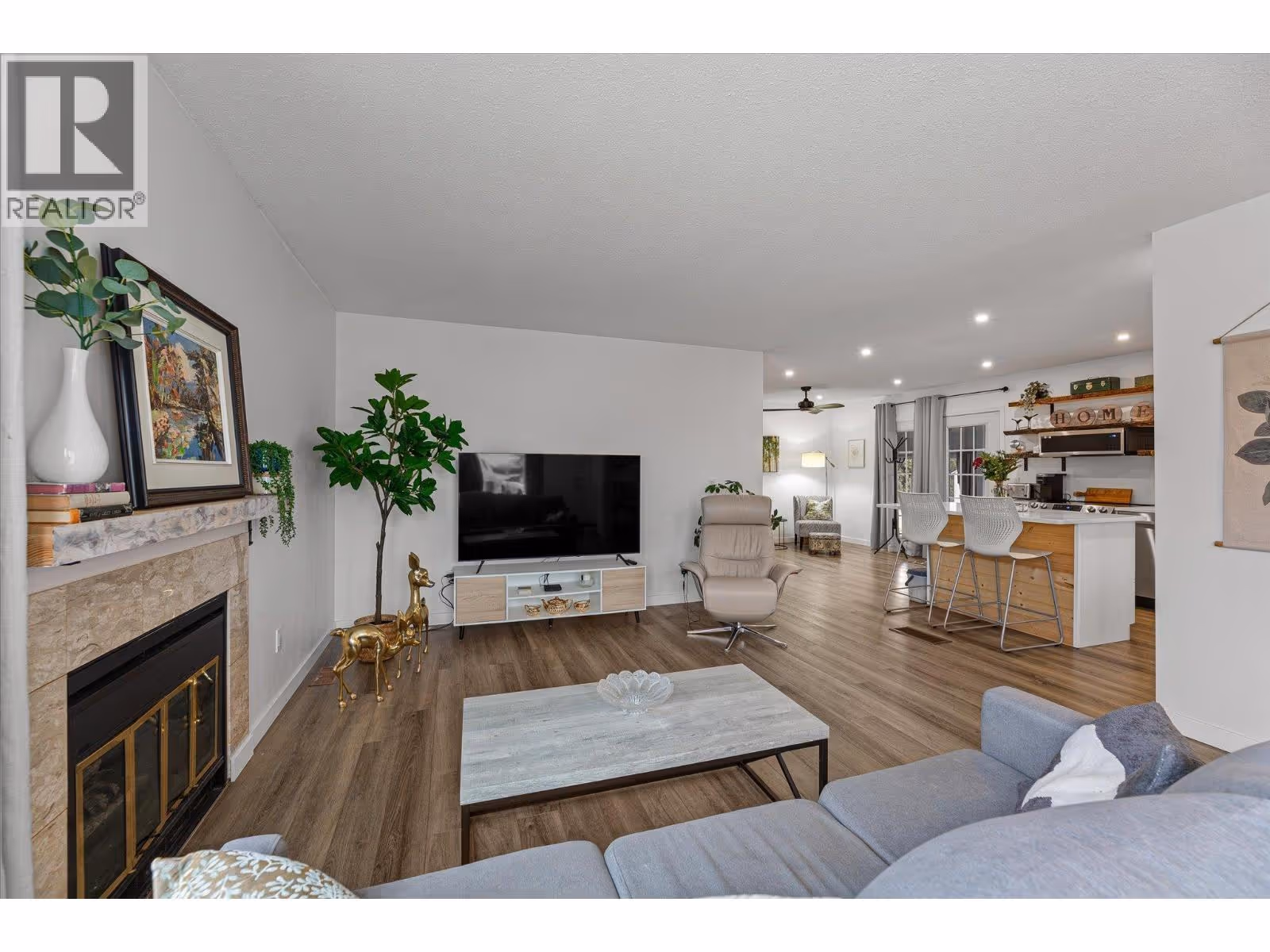 Welcome to Sunrise Village, a sought after 45+ lifestyle community known for its quiet, friendly neighbours and resort style living in the heart of Kelowna. This beautifully updated, move in ready home offers the ease of one level living and feels fresh, modern, and welcoming the moment you step inside. The open concept layout is bright and functional, featuring a stylish kitchen with quartz countertops and an upgraded S/S appliance package, ideal for everyday living and entertaining. Fresh paint, contemporary lighting, and thoughtful updates throughout create a clean, cohesive look. The spacious living room boasts a cozy gas fireplace, while the generous primary bedroom offers a walk-in closet and a well appointed ensuite. Recent updates include a newer hot water tank, furnace, and air conditioning, providing peace of mind year round. Outside, enjoy an enclosed tandem carport with durable Hardie plank siding and windows, plus a bonus attached space ideal for storage or a workshop. The private backyard is designed for minimal upkeep, giving you more time to enjoy the Okanagan lifestyle. Sunrise Village residents enjoy exceptional amenities including a clubhouse, swimming pool, year round hot tub, fitness room, library, billiards, and common kitchen. RV storage available within the community pending availability. Pet-friendly, with restrictions. Walkable and centrally located close to shopping, transit, medical offices, KGH, Pandosy Centre, and Guisachan Village. (id:62999)