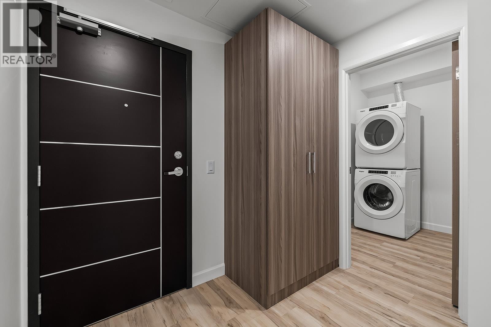 Brand New. Move-In Ready. And anything but ordinary. Welcome to Eminence at Knox Mountain. This 2-bed, 2-bath home offers approx. 904 sqft of smart, sophisticated living designed for people who appreciate clean lines & thoughtful details. Inside, 9-ft ceilings and expansive windows create a bright, open feel. The Earth colour palette interior blends warm wood tones, striking black accents & glass balcony features. The kitchen is a standout with premium 2-tone cabinetry, quartz countertops, stainless steel appliances, a gas range & a unique wine storage feature. An in-suite laundry room adds bonus storage, while designer LED lighting, a statement entry door, solid-core interior doors, & custom shelving & closet solutions complete the polished finish. You’ll also enjoy underground parking with your own private bike cage. The building’s common rooftop viewing terrace gives all new meaning to Kelowna’s Patio Season. Pet-friendly & Nature at your doorstep with direct access to Knox Mountain’s hiking & biking trails. Downtown Kelowna and Glenmore are minutes away. Buy new & save. Eligible buyers may qualify for the Property Transfer Tax exemption & the upcoming 1st time home buyer GST exemption & remaining homes include up to $100k in built-in savings from original pricing. If you want a designer condo you’ll genuinely love coming home to, this one checks all the boxes. Move-In Ready 1-Bed to 2-Bed + Den homes available. Sales Centre open Sat & Sun 12-4pm or by appointment. (id:62999)