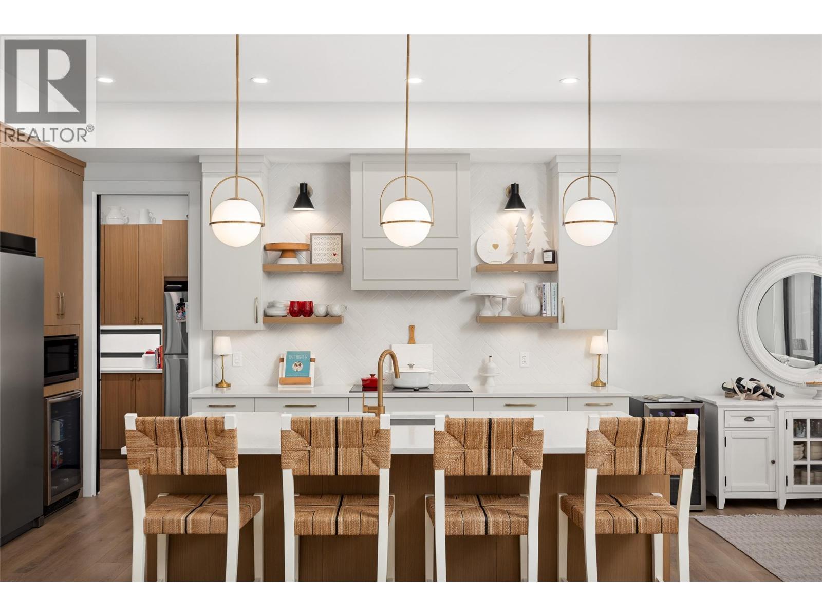 A stunning private backyard featuring a heated saltwater pool, hot tub, turf lawn, covered patio, and a pool house with a built-in bar and bathroom sets this exceptional Kettle Valley residence apart. Designed for effortless indoor-outdoor living, sliding glass doors extend the main living space seamlessly to the outdoor area. Inside the 7 bed + den / 6 bath home, timeless finishes and quality craftsmanship shine throughout. Hardwood flooring and soaring open-to-below ceilings create an impressive, light-filled living area anchored by a striking fireplace feature wall with custom shelving and statement lighting. The chef’s kitchen is equally refined, featuring a large island, professional stainless steel appliances, soft-close cabinetry, under-cabinet lighting, and a butler’s pantry. Adding incredible versatility, the home features a spacious 2 bed/1 bath legal suite that feels like a home of its own. Complete with a full kitchen, stainless steel appliances, separate laundry, private entrance, its own dedicated single garage, and a private balcony with stunning lake and valley views, ideal for extended family or rental income. Located in the highly desirable, family-friendly Kettle Valley neighbourhood just minutes from Chute Lake Elementary, Canyon Falls Middle School, and a short drive to the shops, cafes, and restaurants of the Upper Mission. A rare opportunity to own a home that truly offers it all, schedule your private showing today. (id:62999)