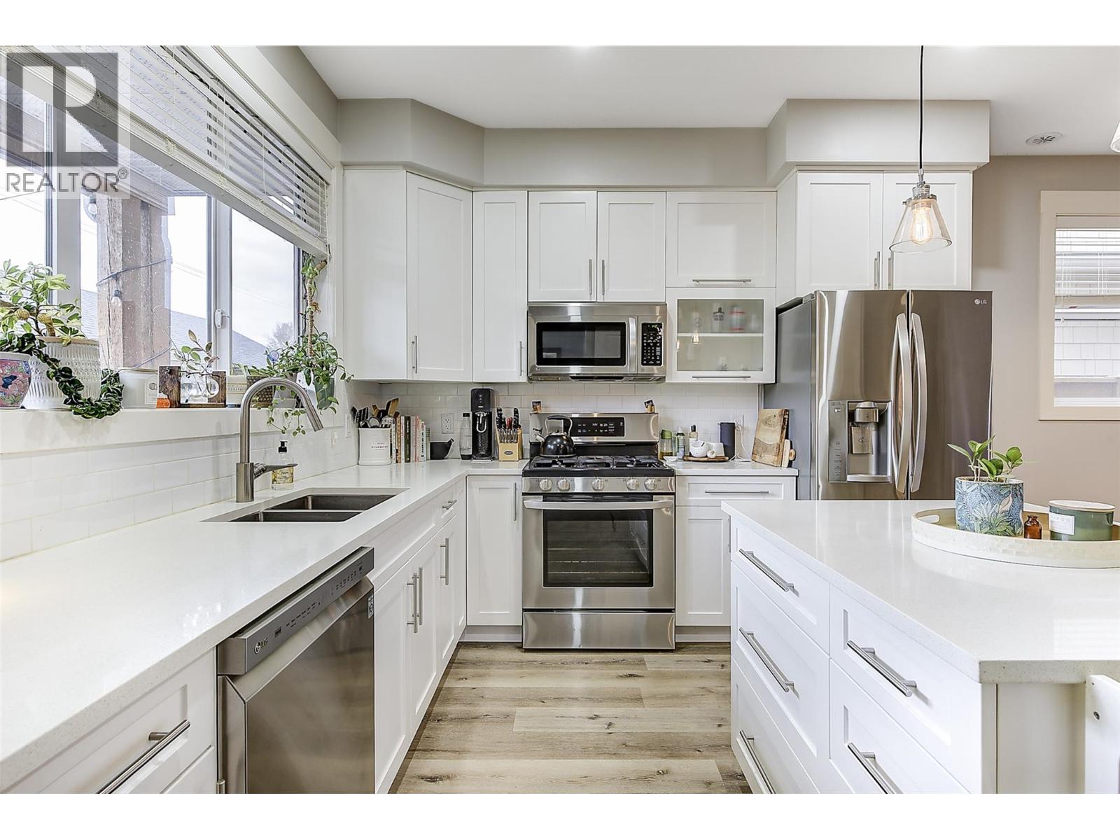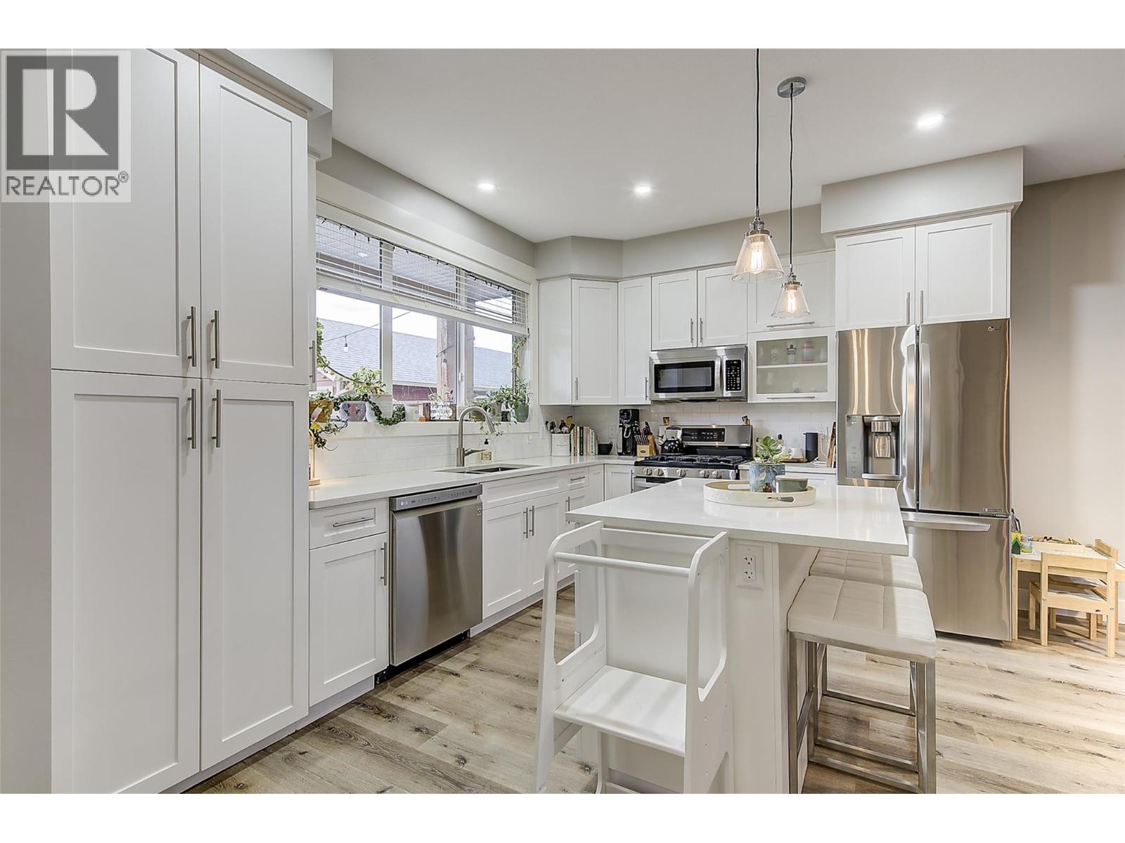 Experience relaxed, connected Kelowna living in this beautifully maintained townhome crafted by Maraine Construction. Thoughtfully designed with a warm, modern aesthetic, the home offers an inviting atmosphere from the moment you step inside. Sunlit living spaces create an easy flow for daily life—perfect for quiet mornings, relaxed evenings, or hosting friends in comfort. The kitchen’s quartz surfaces, stainless steel appliances, and gas range set the stage for effortless cooking and gathering. Upstairs, three bright bedrooms—primary with its own ensuite— provide privacy and comfort for homeowners, guests, or renters. A rare advantage in this category, the generous yard offers room to unwind outdoors, garden, or simply enjoy your own slice of city space. With covered garage parking, extra storage (including above-garage storage accessed by pull-down stairs), and efficient heating and cooling, the home delivers convenience without compromise. Situated near transit, schools, and essential amenities—and within a five-minute walk to three different parks with playgrounds—the location unlocks a genuinely walkable lifestyle. Bike or stroll to Pandosy Village or Downtown with ease, supported by direct access to the Ethel biking corridor. Offering style, comfort, and long-term value, this thoughtfully kept two-story townhome is an appealing alternative to condo living—ideal for a first home, investment, or those seeking a vibrant urban-adjacent community. (id:62999)