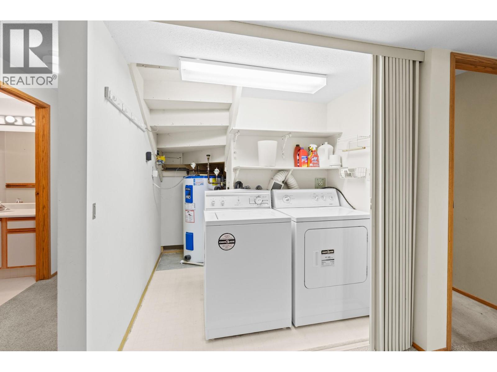 Lovely End unit tucked inside on the quiet end of Dilworth Green! Spacious rancher with basement offers generous natural light on the main level with the extra windows offered in a corner unit! Perfect location in Springvalley located across from Costco, shopping center, and a short stroll to Mission Creek Regional Park. Wonderful neighbourhood is perfect for walking or biking to everything you need, as the roads are level and there are bike paths & crosswalks around. This home offers a full basement with a guest bedroom (no window so it can also be used as a Den), bathroom, Billiard room or Recreation/Gym/Media room with generous storage. Extra storage in locker off the carport for your sporting goods or yard tools. The main floor offers an expansive living area and dining room to entertain many guests. Walk-through double closet and a 4piece ensuite off of the primary bedroom. 2nd bedroom upstairs and guest bathroom. The main living area hosts a skylight adding even more natural light. The large living room has a corner gas fireplace. Open the sliding glass door to a covered patio overlooking green space that is perfect for loungers, flower pots and morning coffee/tea or an evening cocktail. Pet rules: 1 dog allowed, no higher than 14"" at shoulder & no full or partial breed pitbulls or 1 indoor cat. Attached carport for 1 covered parking spot + 2nd parking spot on driveway to the right of the carport! No age restrictions-Family friendly! Quick possession is available! (id:62999)