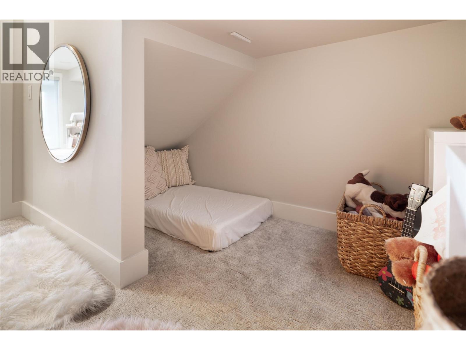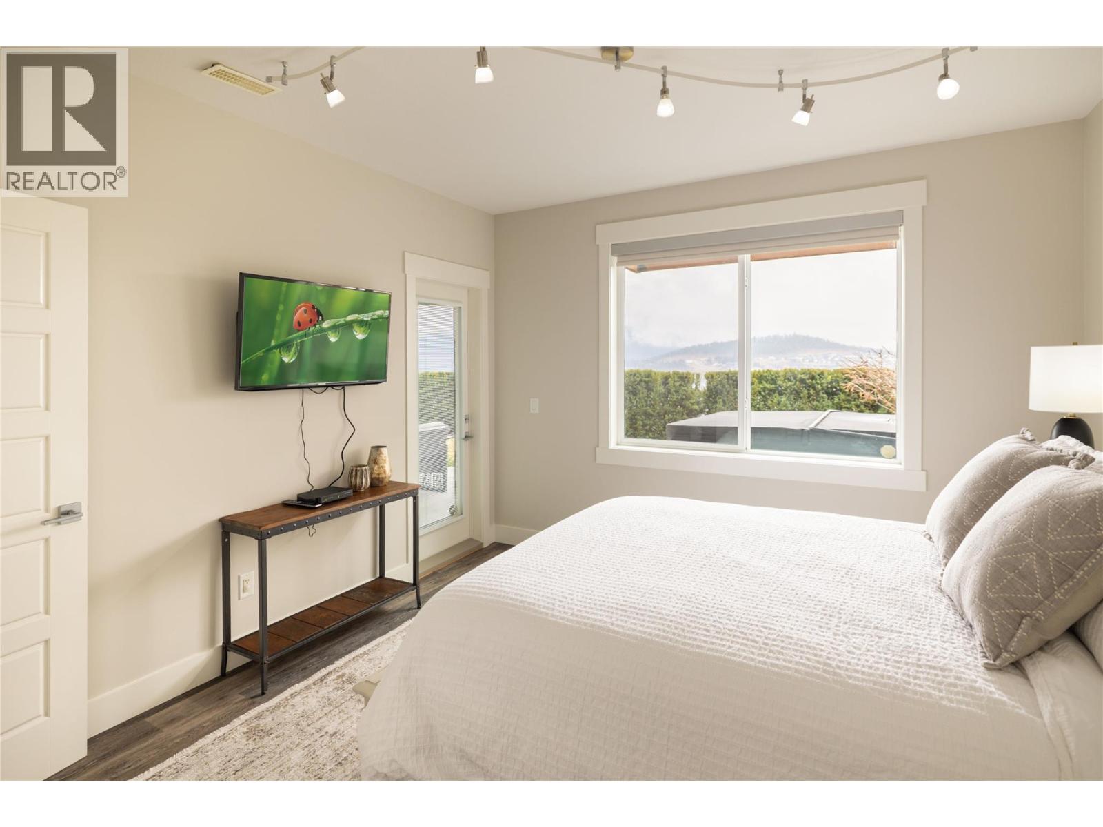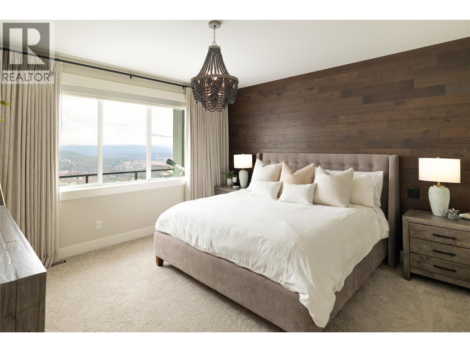 Located in a welcoming, family-friendly neighbourhood close to parks, schools, and Black Mountain Golf Club, this spacious walk-out rancher is ideal for growing families and those who love to entertain. Built by Candel Custom Homes as the builder’s own residence, the home reflects exceptional craftsmanship with numerous upgraded features and thoughtful design details throughout. The main level unfolds into an open-concept kitchen, dining, and living area framed by large windows that draw in natural light and showcase the surrounding scenery. Sliding doors lead to a generous covered deck, extending the living space. The kitchen is designed to gather around, featuring a large island with seating, shaker cabinetry, quartz countertops, stainless steel appliances, and a gas range. A butler’s pantry provides additional prep space and storage. A striking fireplace feature wall with built-in shelving anchors the living room. The primary suite is privately positioned on the main level and offers a peaceful retreat with a walk-in closet, and spa inspired ensuite. Two additional bedrooms and a full bathroom complete the main floor. The walk-out lower level is designed for both relaxation and entertainment. A stunning glass-enclosed wine display creates an impressive focal point, complemented by a full wet bar and lounge area. The space continues into a large recreation room with theatre-style projection and an expansive fitness area with mirrored wall — creating a private retreat for movies, workouts, or hosting guests. A fully self-contained legal suite with its own kitchen, living area, laundry, and private entrance provides excellent flexibility and income-generating potential, making it ideal for extended family or long-term rental opportunities. Thoughtfully designed with generous living spaces, quality finishes, and exceptional entertainment areas, this residence delivers a rare balance of comfort, flexibility, and everyday livability. (id:62999)