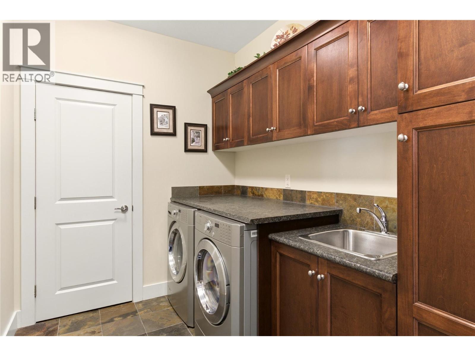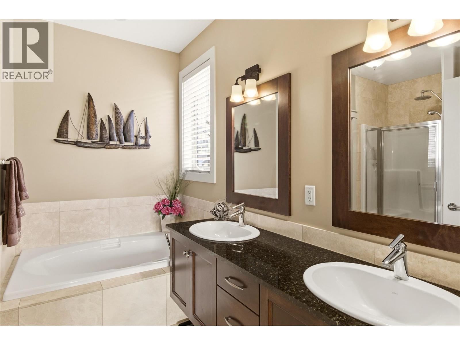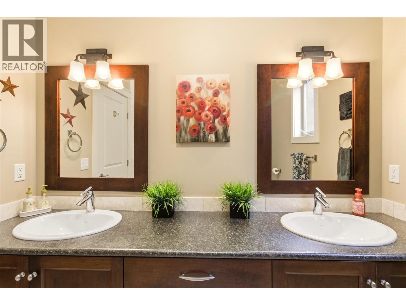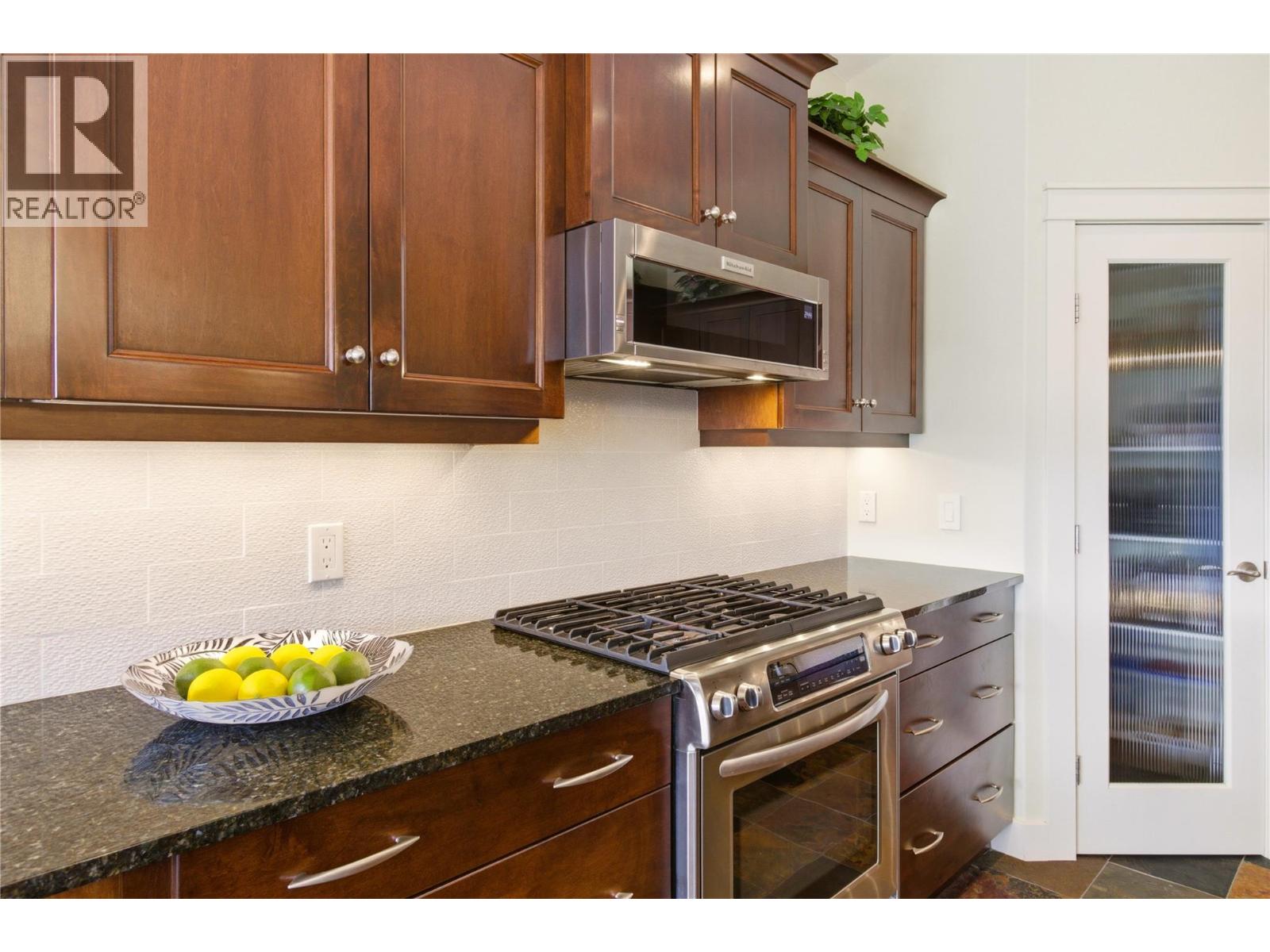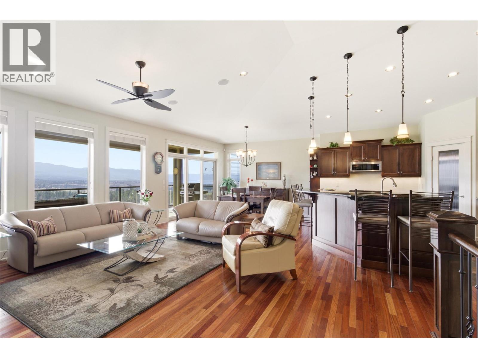 Set in the highly desirable Black Mountain community, this beautifully maintained rancher with basement offers over 3,000 sq ft of thoughtfully designed living space with 4 bedrooms and 3 bathrooms. Enjoy breathtaking mountain, valley, and lake views from a home that blends comfort and functionality. The main level features hardwood flooring, soaring ceilings, and a bright open-concept layout ideal for one-level living. The kitchen includes granite countertops, stainless steel appliances, and a large island with seating for six—perfect for entertaining. The inviting living room centers around a stone gas fireplace and opens onto a spacious deck with built-in ceiling speakers. The primary bedroom includes a full ensuite and integrated sound system, while the second bedroom has direct access to the main floor bathroom for added convenience. A combined laundry and mudroom off the garage adds everyday practicality. Downstairs, the fully finished lower level offers a large recreation room with projector, movie screen, and built-in surround sound—perfect for movie nights. Two additional bedrooms, a full bathroom, and ample storage complete the space. Outdoor areas are designed for easy living, featuring a lower deck suited for a hot tub, full irrigation, and a low-maintenance front yard with artificial turf. With quick access to Big White and nearby amenities, this property is ideal for those seeking both recreation and everyday convenience. (id:62999)