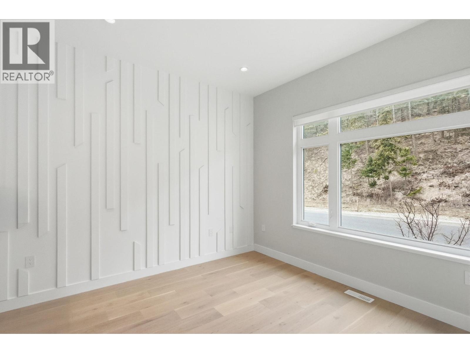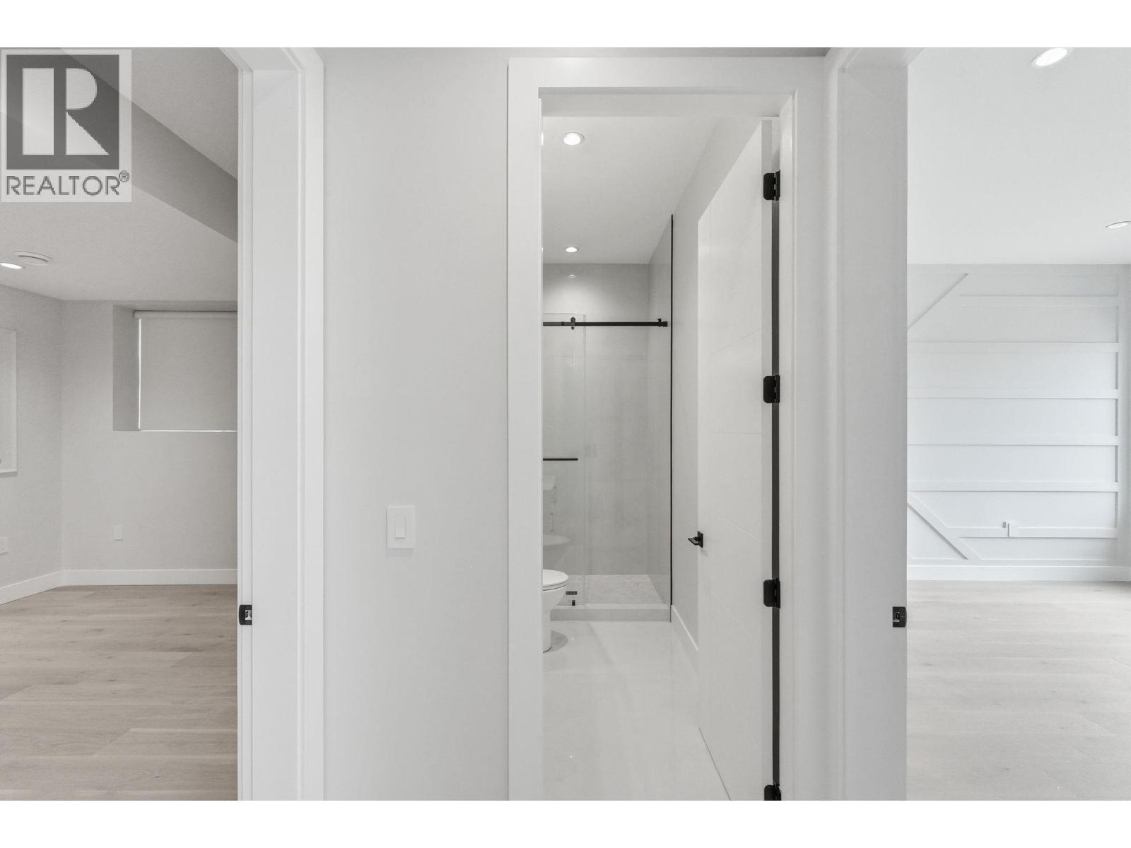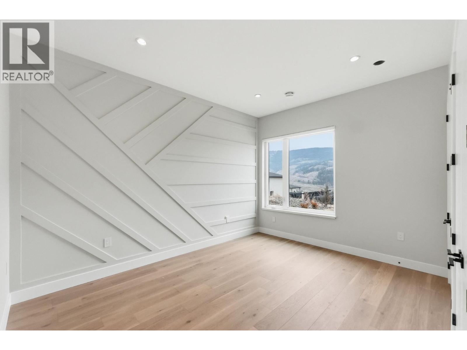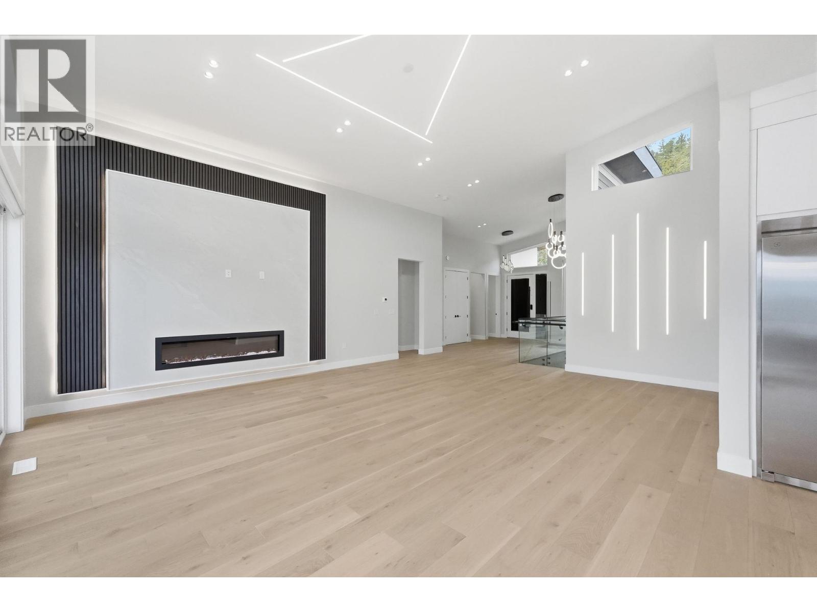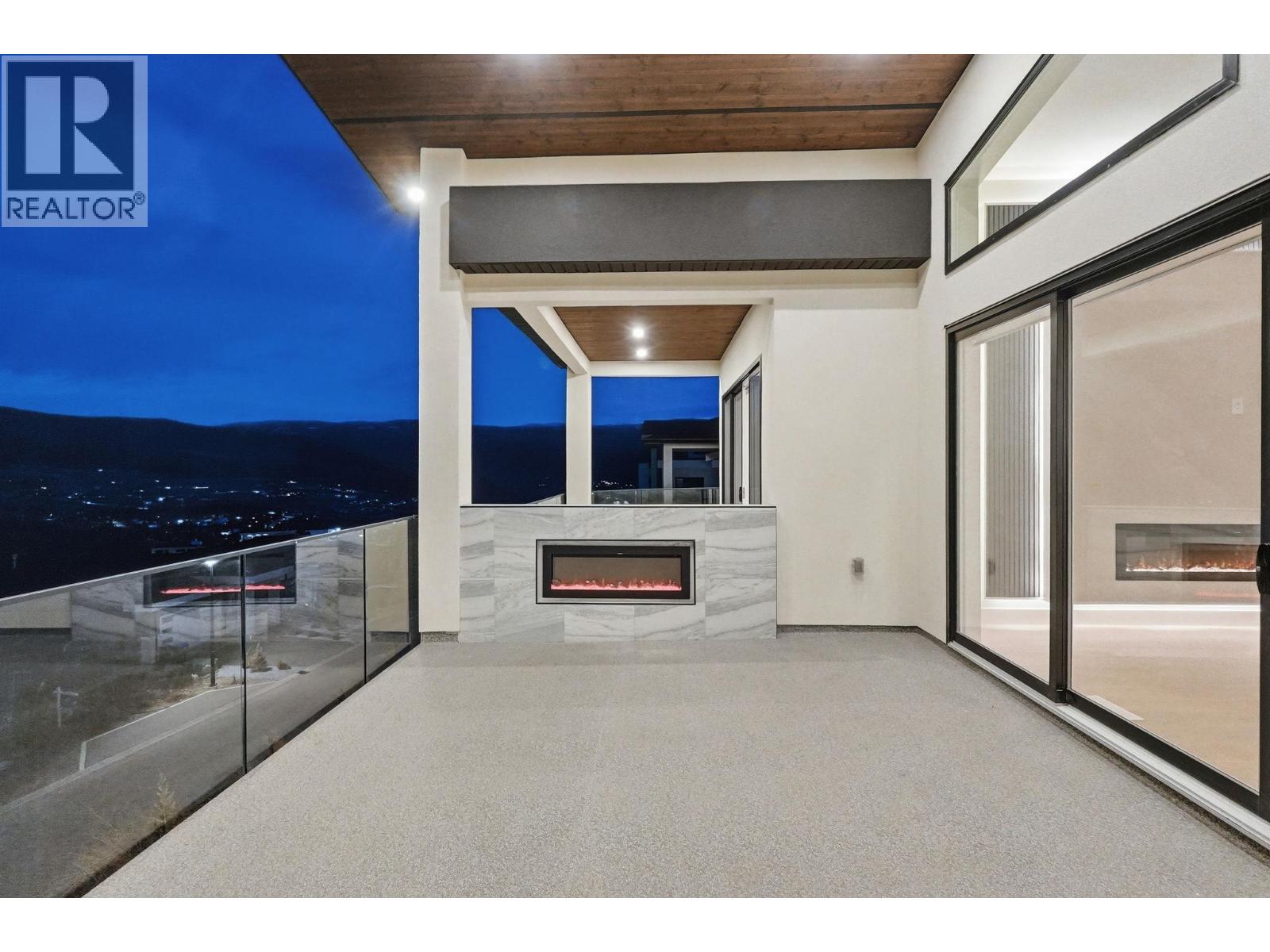 Perched on the hillside in desirable Black Mountain, this exceptional 6-bedroom, 4-bathroom residence offers stunning valley views, thoughtful design, and modern luxury throughout. Expansive windows flood the home with natural light, complemented by elegant lighting selections that allow you to set the perfect atmosphere day or night. The main living area features engineered hardwood flooring and a beautifully designed chef’s kitchen equipped with premium Electrolux appliances, a gas range, and an oversized chef’s refrigerator. A fully equipped spice kitchen provides additional space for cooking and entertaining while keeping the main kitchen pristine. Upon entry, a striking custom glass display above the staircase, crafted with a single joint, creates a dramatic focal point and enhances the home’s open feel. The layout flows seamlessly from the kitchen and living area onto a balcony with its own fireplace which is perfect for enjoying Okanagan evenings. Downstairs offers a spacious second living area, two additional bedrooms, and an impressive 23 ft x 23’6” theatre room complete with a built-in bar. The property also includes a private 2-bedroom suite currently rented for $2,000 per month, positioned along the side of the home to maximize privacy. Additional features include a double garage with epoxy flooring, irrigated landscaping, a generous backyard, and the added benefit of GST being paid by the seller. (id:62999)