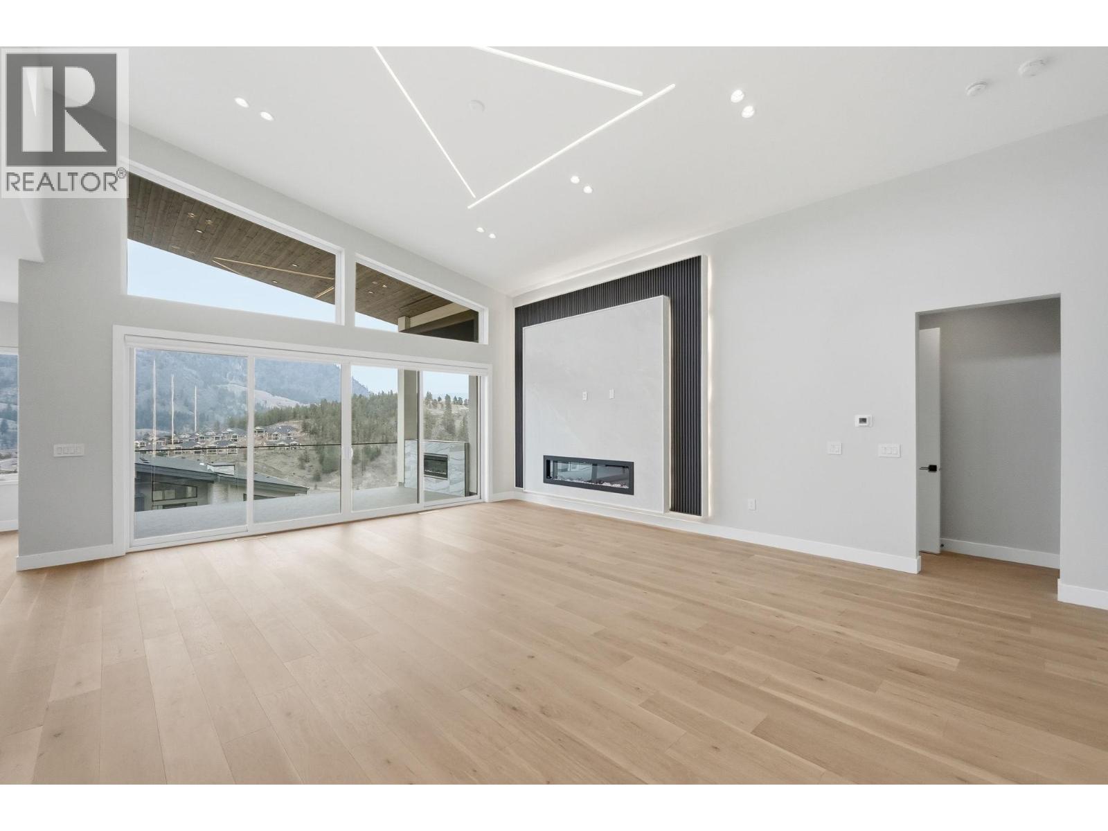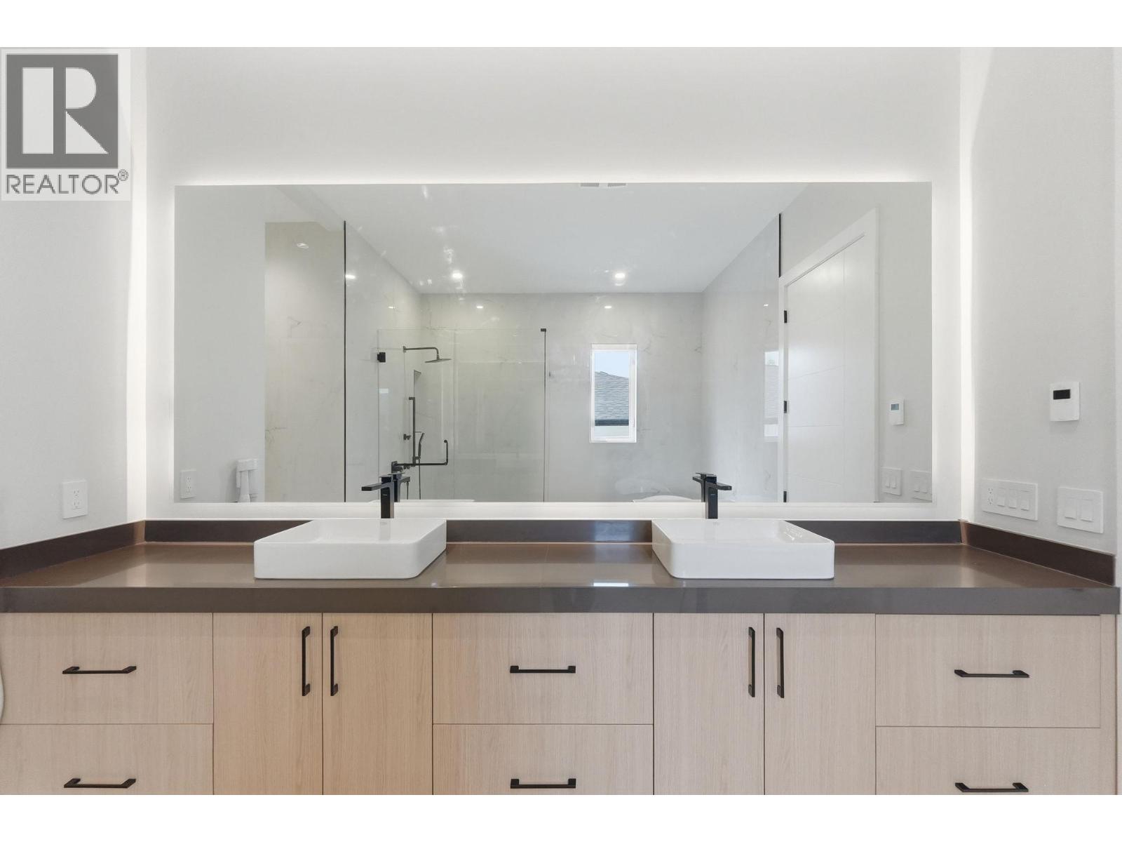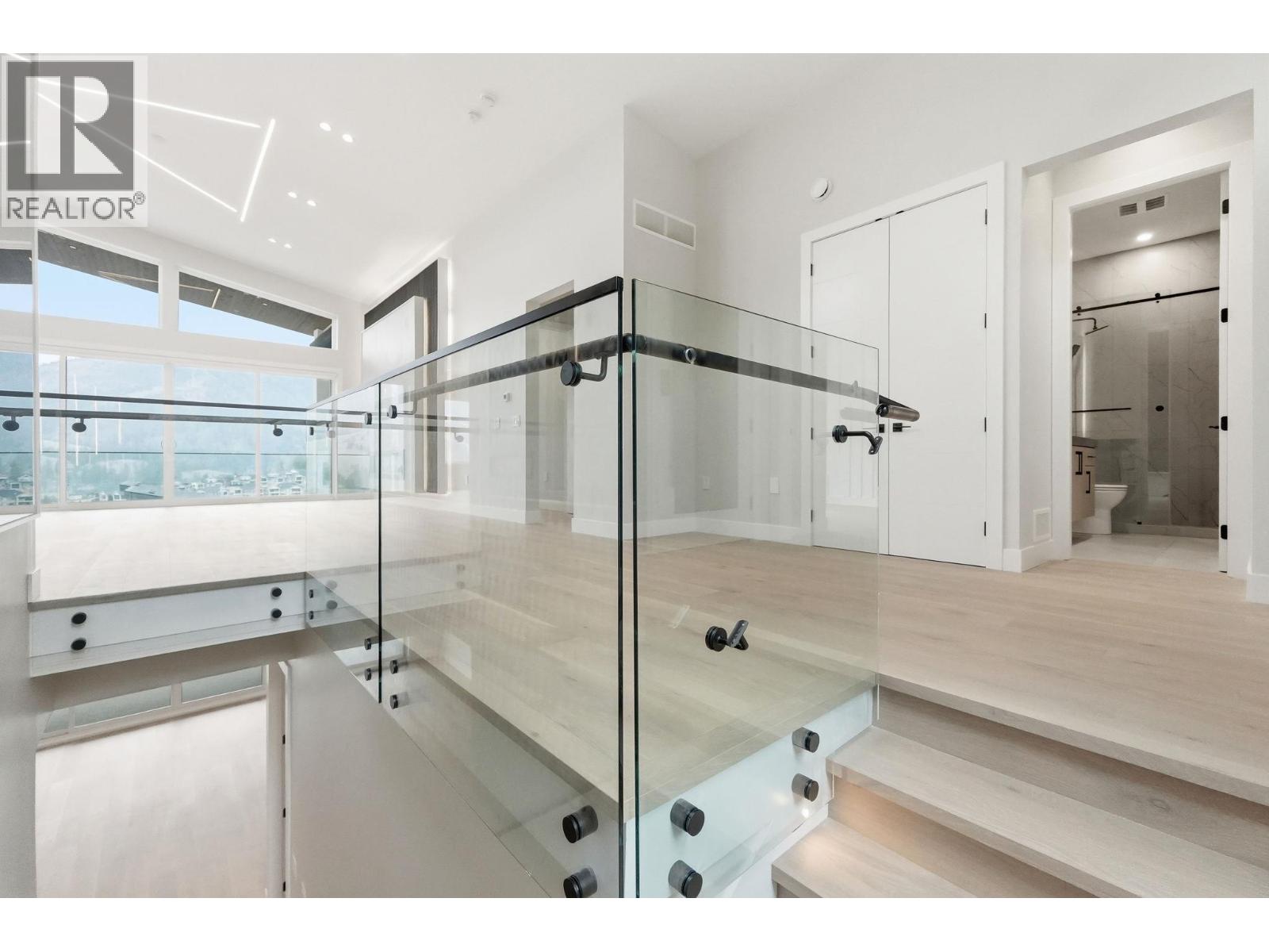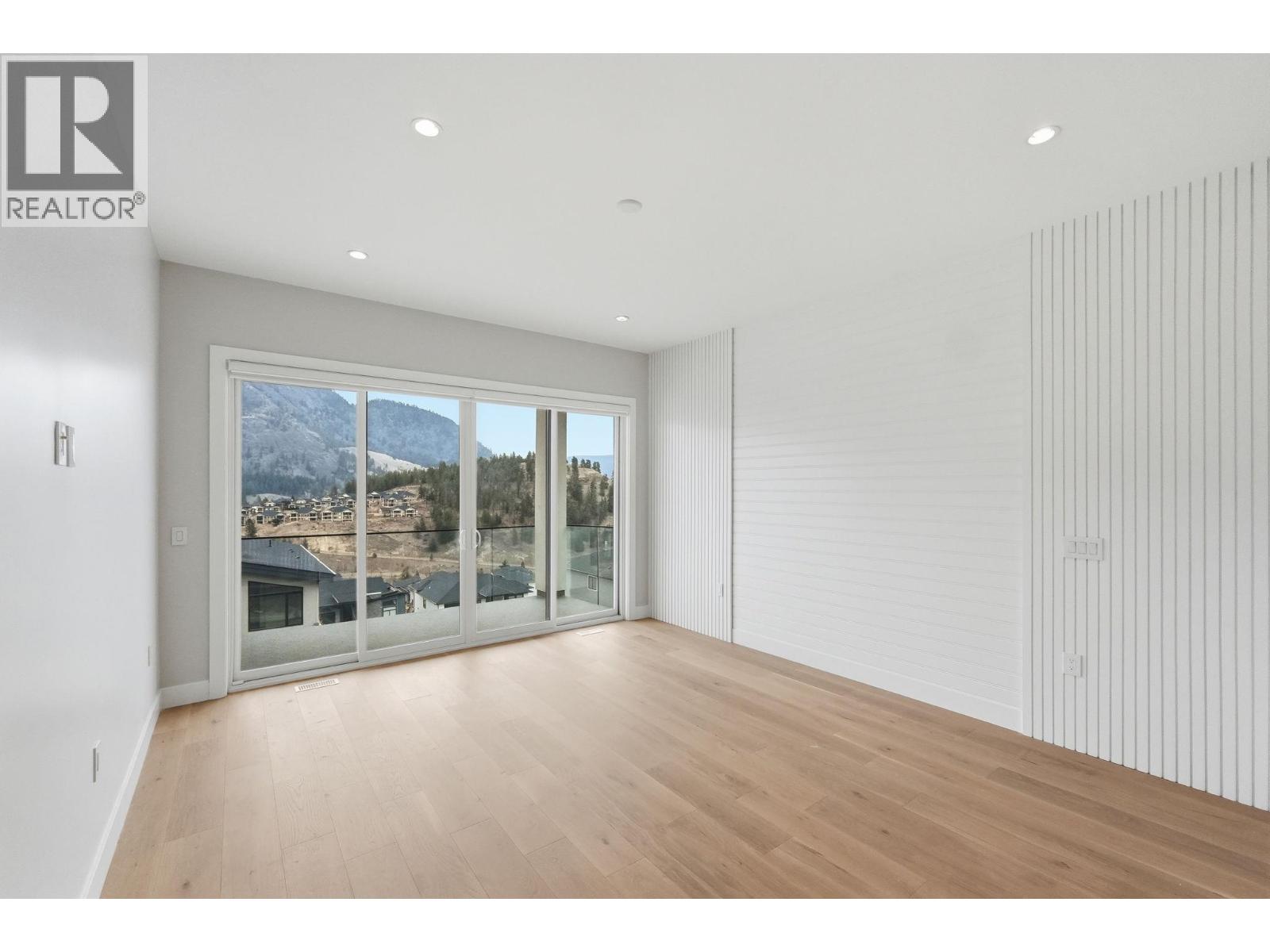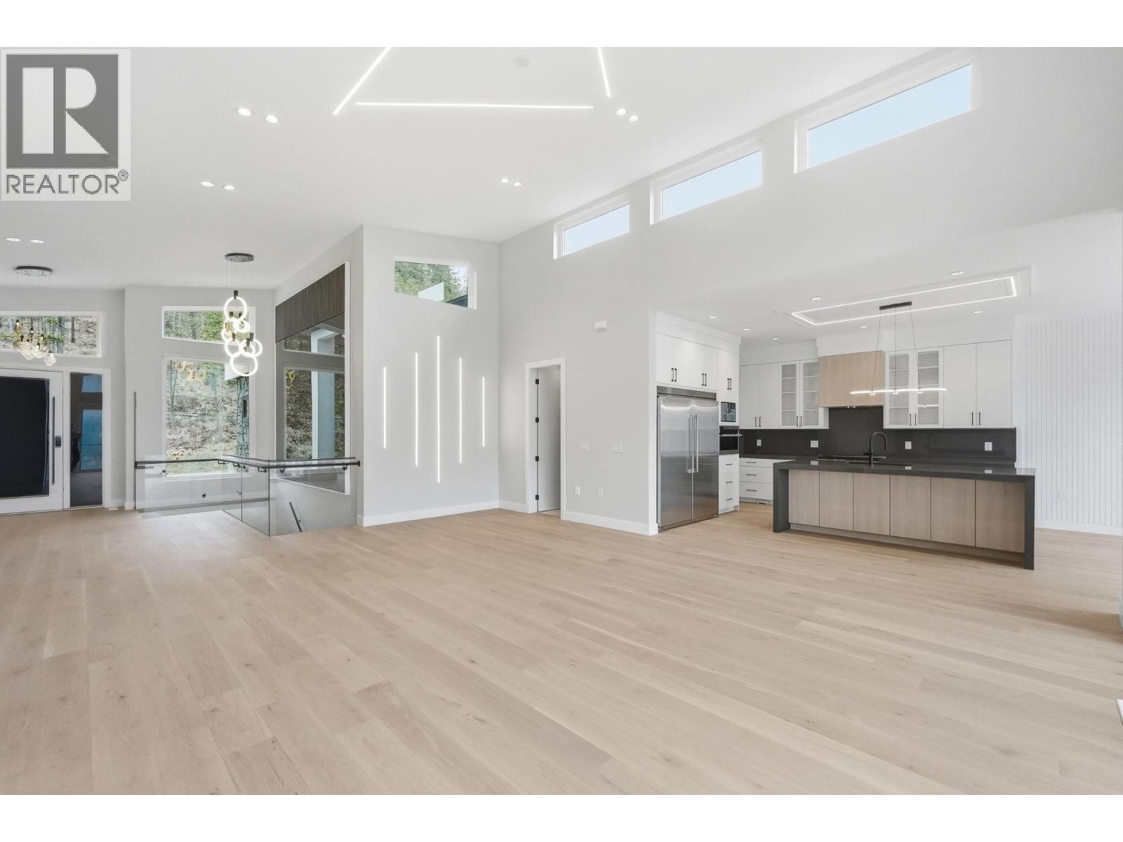 Perched on the hillside in desirable Black Mountain, this exceptional 6-bedroom, 4-bathroom residence offers stunning valley views, thoughtful design, and modern luxury throughout. Expansive windows flood the home with natural light, complemented by elegant lighting selections that allow you to set the perfect atmosphere day or night. The main living area features engineered hardwood flooring and a beautifully designed chef’s kitchen equipped with premium Electrolux appliances, a gas range, and an oversized chef’s refrigerator. A fully equipped spice kitchen provides additional space for cooking and entertaining while keeping the main kitchen pristine. Upon entry, a striking custom glass display above the staircase, crafted with a single joint, creates a dramatic focal point and enhances the home’s open feel. The layout flows seamlessly from the kitchen and living area onto a balcony with its own fireplace which is perfect for enjoying Okanagan evenings. Downstairs offers a spacious second living area, two additional bedrooms, and an impressive 23 ft x 23’6” theatre room complete with a built-in bar. The property also includes a private 2-bedroom suite currently rented for $2,000 per month, positioned along the side of the home to maximize privacy. Additional features include a double garage with epoxy flooring, irrigated landscaping, a generous backyard, and the added benefit of GST being paid by the seller. (id:62999)