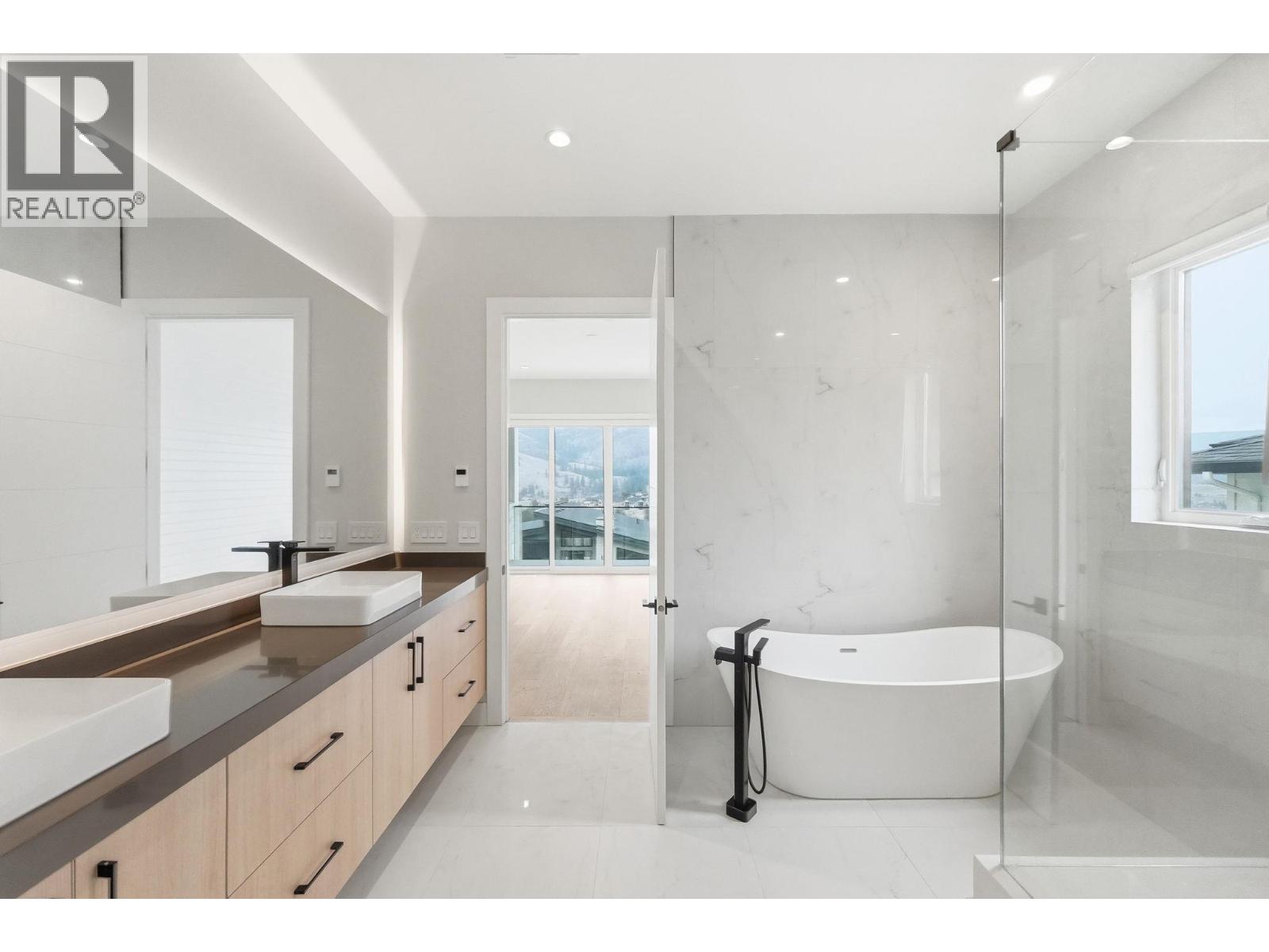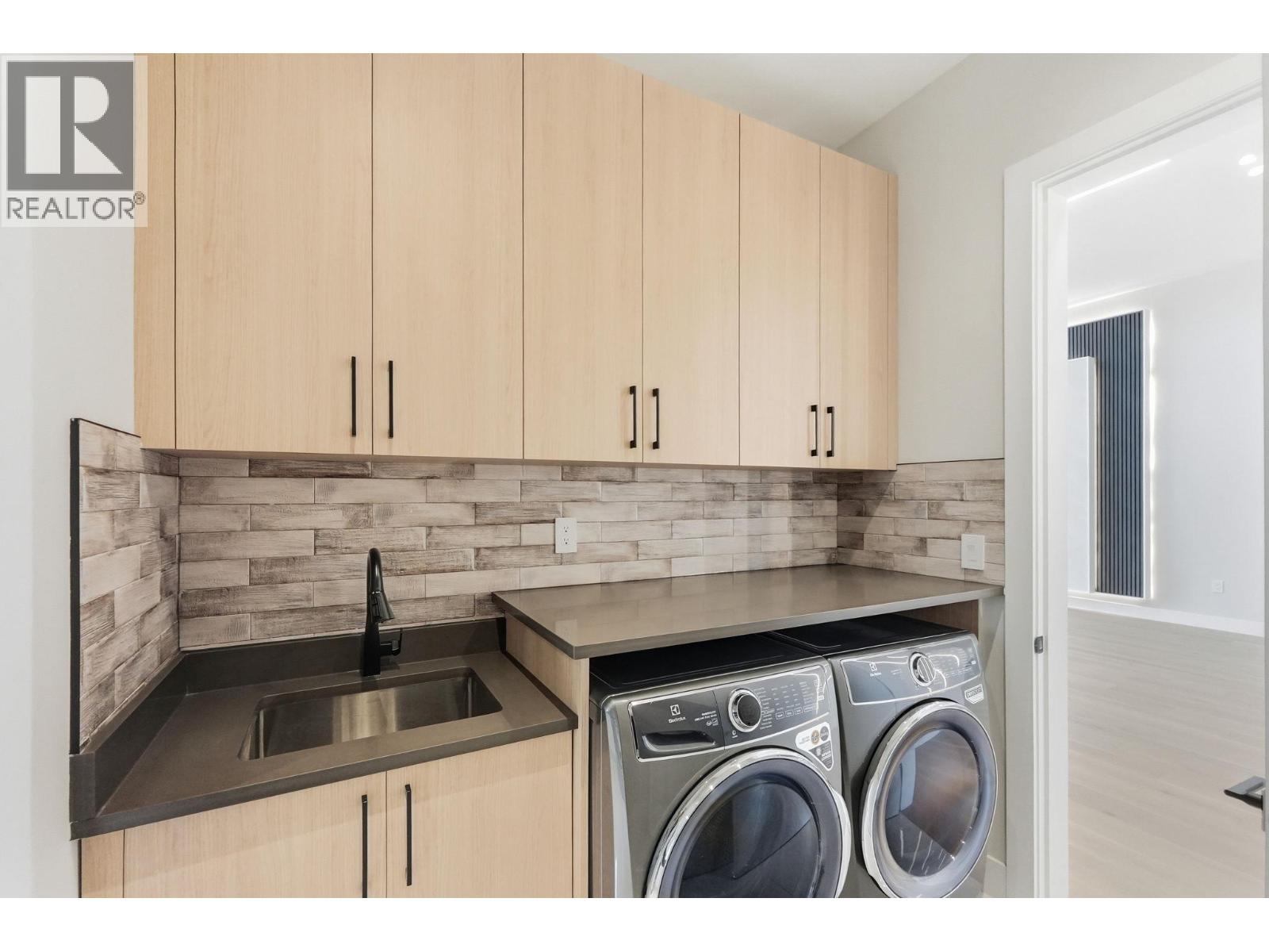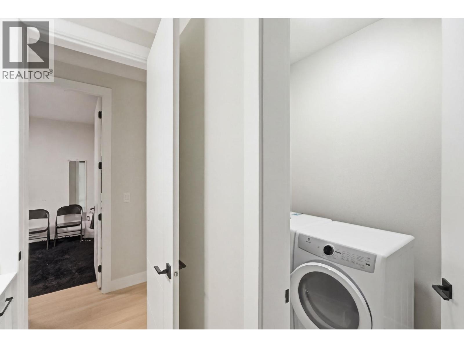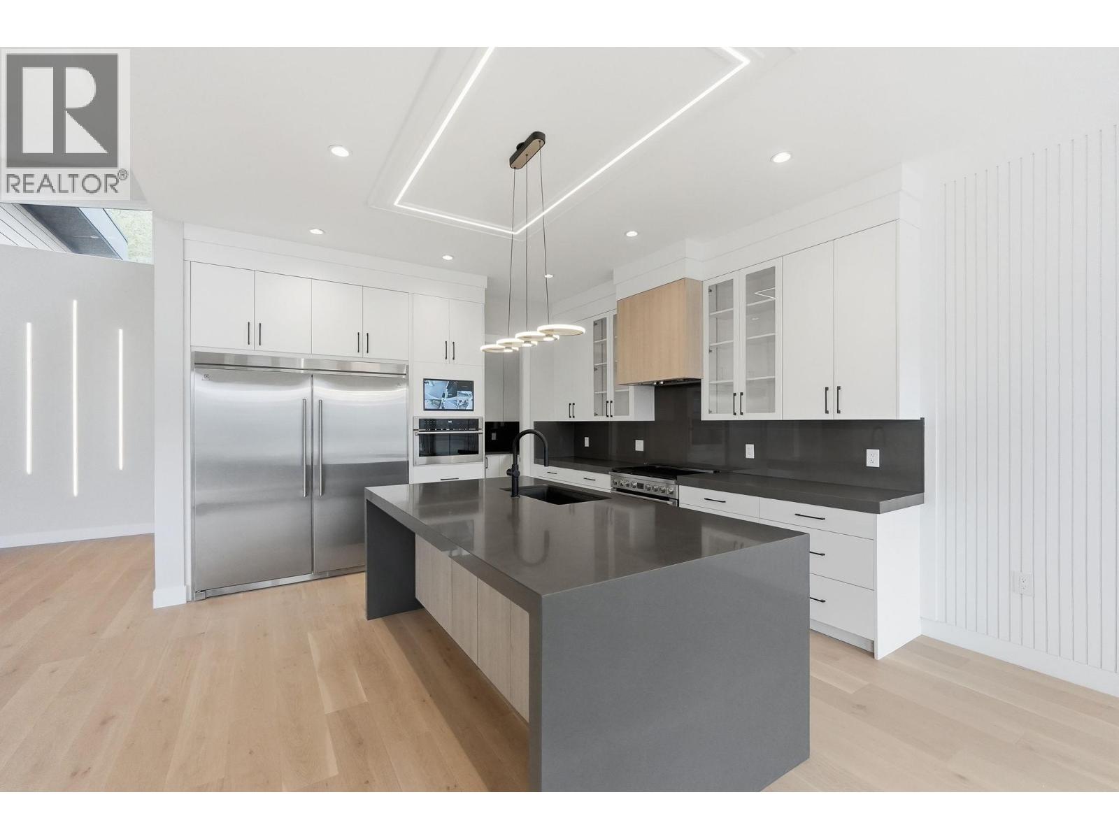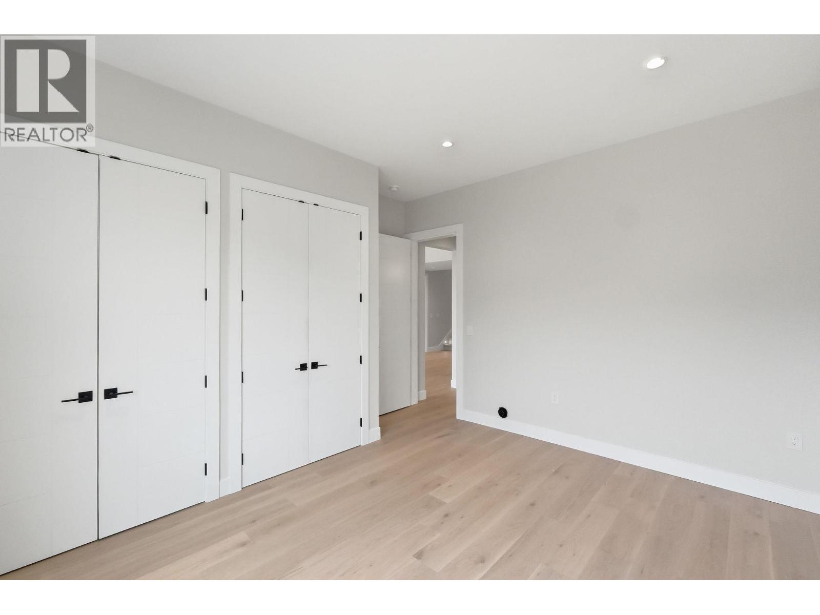Perched on the hillside in desirable Black Mountain, this exceptional 6-bedroom, 4-bathroom residence offers stunning valley views, thoughtful design, and modern luxury throughout. Expansive windows flood the home with natural light, complemented by elegant lighting selections that allow you to set the perfect atmosphere day or night. The main living area features engineered hardwood flooring and a beautifully designed chef’s kitchen equipped with premium Electrolux appliances, a gas range, and an oversized chef’s refrigerator. A fully equipped spice kitchen provides additional space for cooking and entertaining while keeping the main kitchen pristine. Upon entry, a striking custom glass display above the staircase, crafted with a single joint, creates a dramatic focal point and enhances the home’s open feel. The layout flows seamlessly from the kitchen and living area onto a balcony with its own fireplace which is perfect for enjoying Okanagan evenings. Downstairs offers a spacious second living area, two additional bedrooms, and an impressive 23 ft x 23’6” theatre room complete with a built-in bar. The property also includes a private 2-bedroom suite currently rented for $2,000 per month, positioned along the side of the home to maximize privacy. Additional features include a double garage with epoxy flooring, irrigated landscaping, a generous backyard, and the added benefit of GST being paid by the seller. (id:62999)