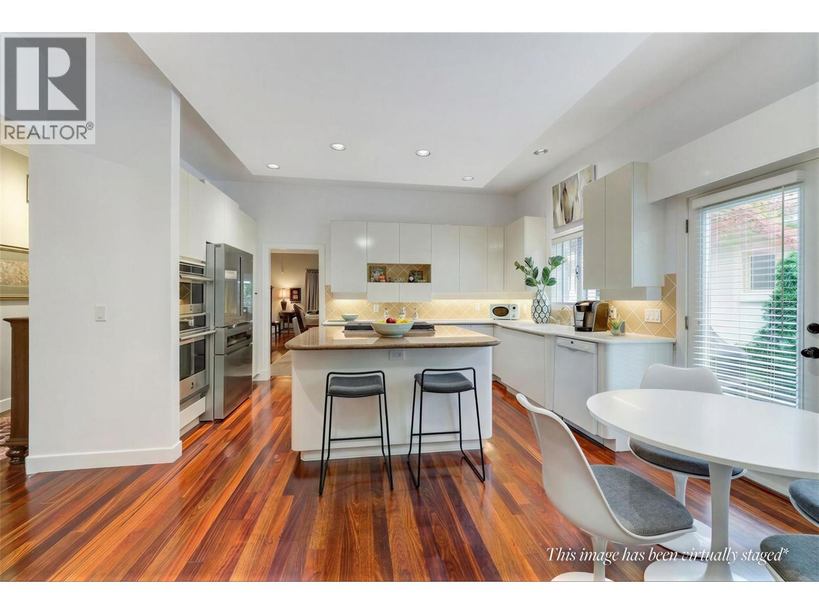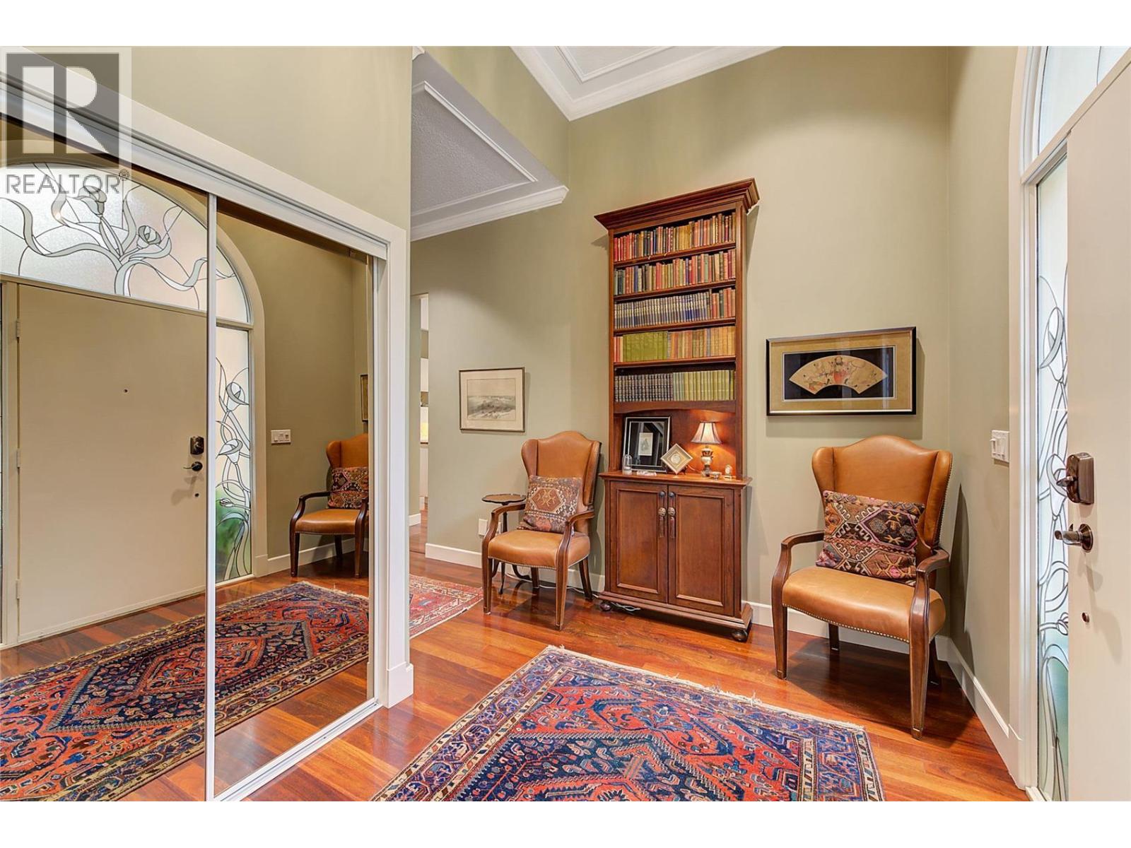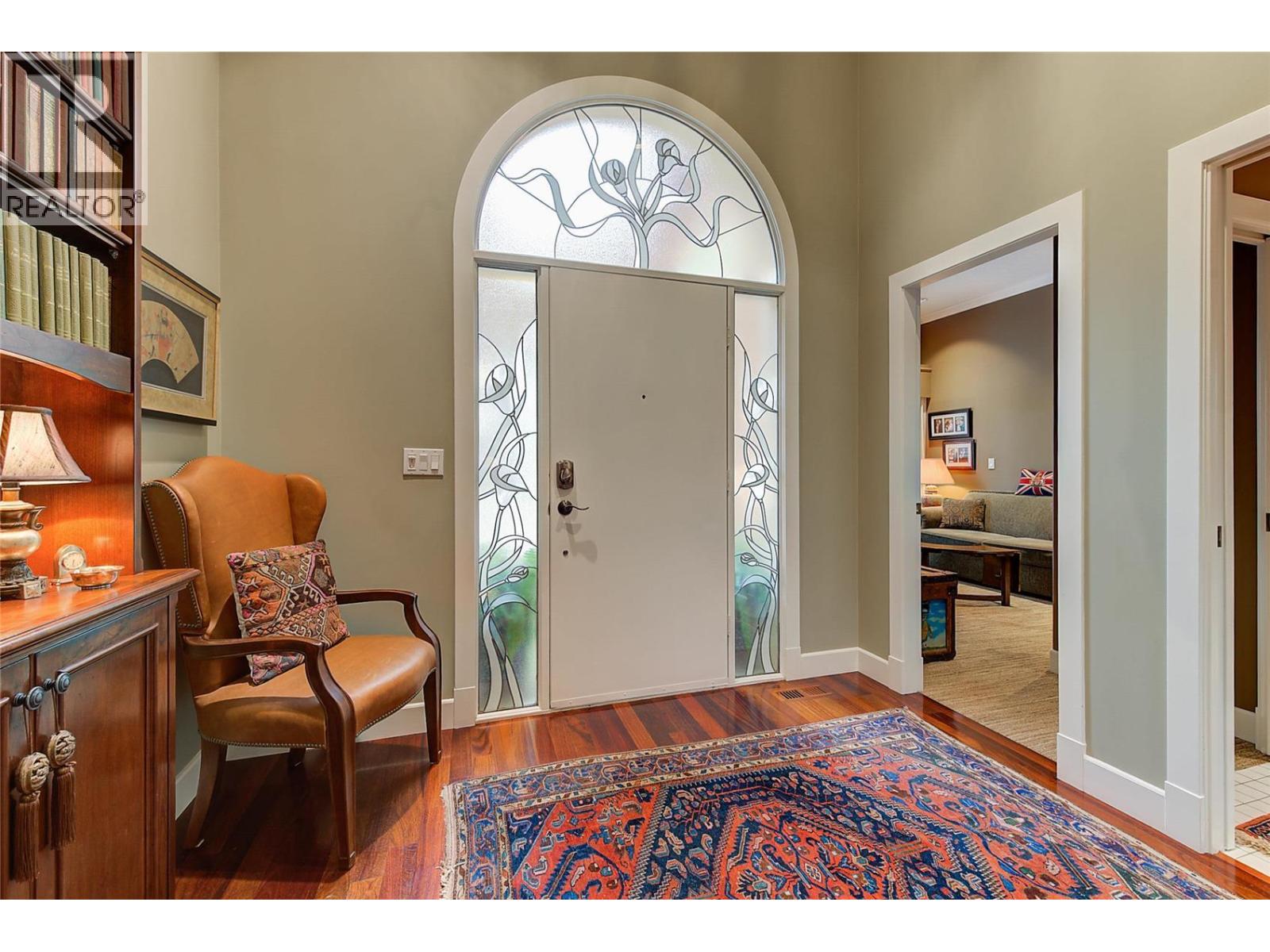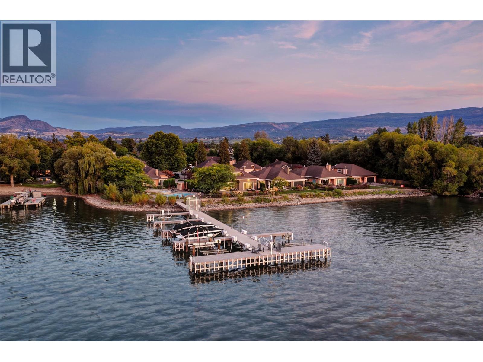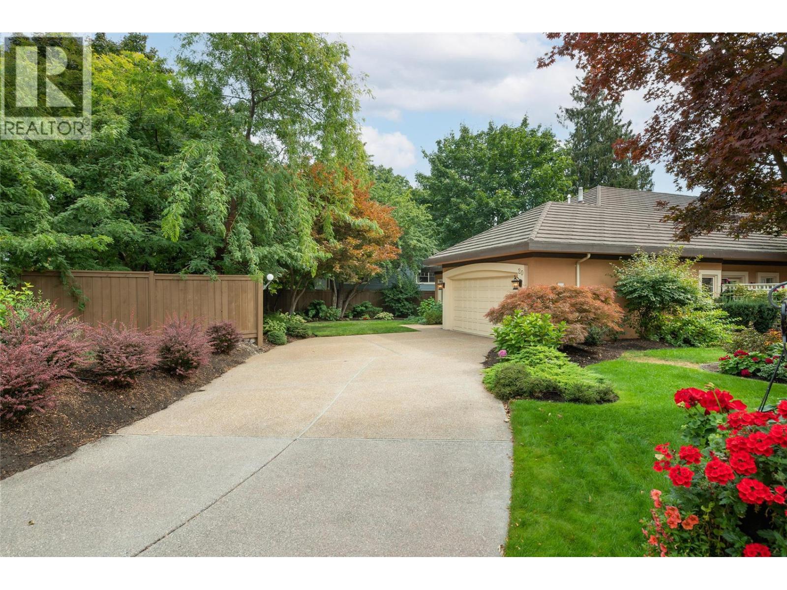 Luxurious One-Level Home in Gated Waterfront Community. Discover the perfect blend of comfort and convenience in this stunning one-level home located in an exclusive gated community. This residence offers easy access to the lake with your own private boat slip and lift. Enjoy tranquil living with waterfront pool beautifully landscaped surroundings. Residents of Le Chateau can also enjoy resort-style amenities on site including an outdoor pool, hot tub & private dock. Upon entry you're greeted by high ceilings, and rich cherry hardwood floors leading to the kitchen and the main living area. The chef’s kitchen features brand-new stainless-steel appliances. Centre island offers a gas range. Off the kitchen is an open, main living area with custom built-ins surrounding the gas fireplace. The primary suite is a gorgeous sanctuary with private access to the backyard and a recently renovated primary ensuite. The ensuite is finished with wood cabinetry, & granite counters for a luxurious feel. Enjoy unwinding in the soaker tub or expansive glass steam shower with a bench and speakers. One additional bedroom and den. In the backyard you’re surrounded by mature landscaping and a trellis bordering the patio. A water feature & outdoor lighting have been added. The two-car garage has been finished with epoxy flooring, and custom cabinetry. Incredible location within walking distance to beaches, cafes, restaurants and boutiques, and only a 5 minute drive to downtown Kelowna. (id:62999)