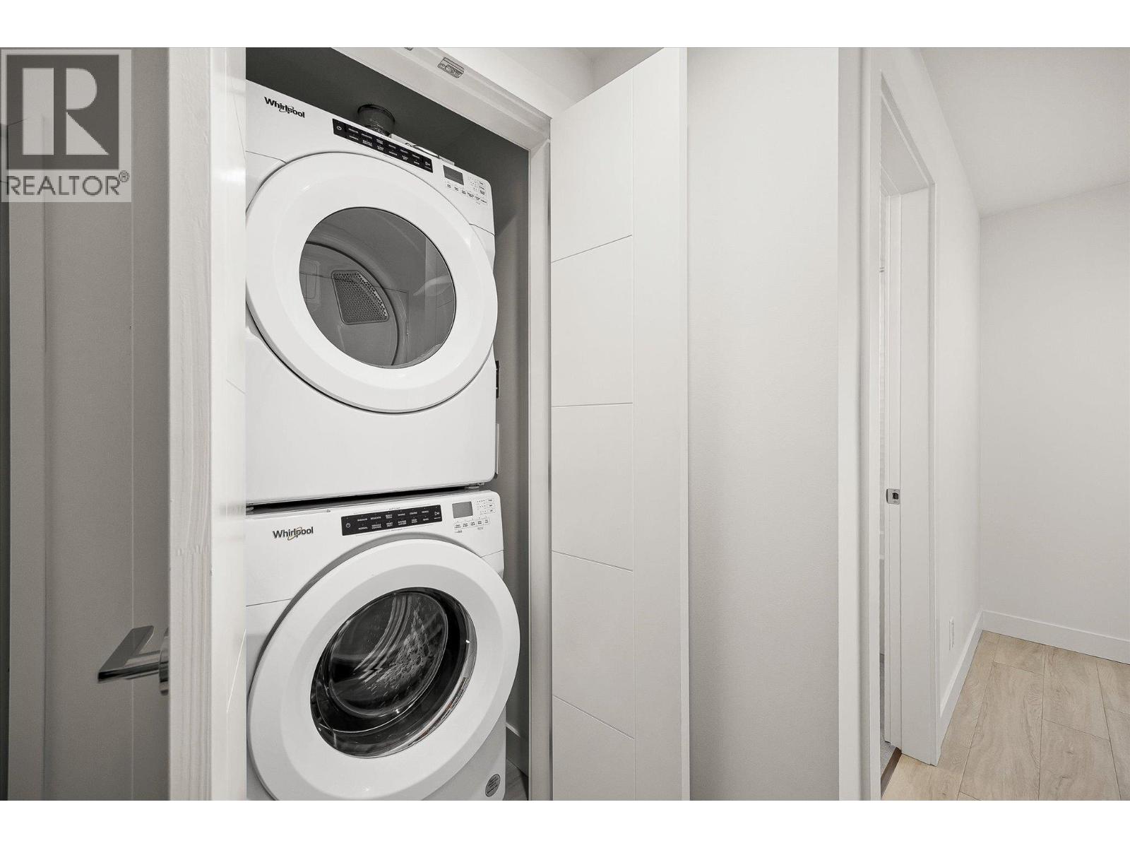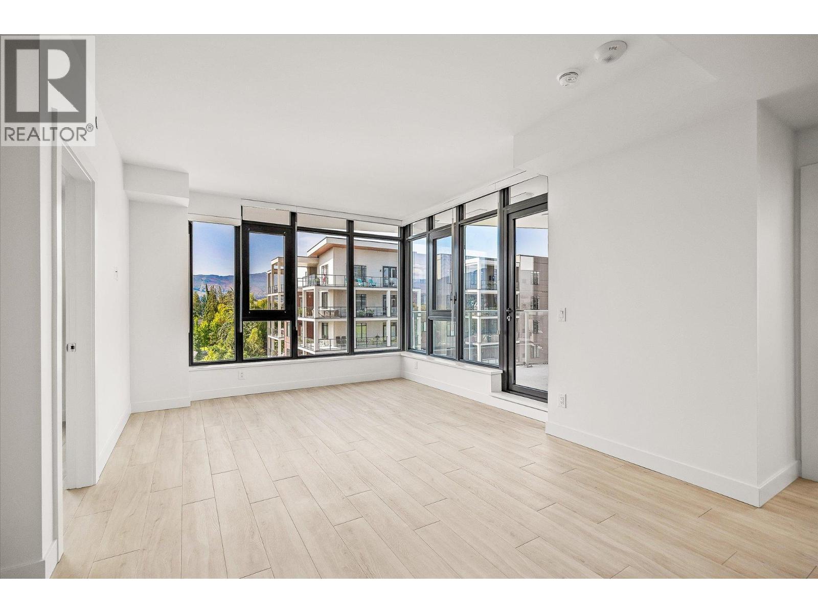 Priced well below assessed value of $854,000! Live steps from the shoreline in Aqua Waterfront Village, an elevated lakefront community in Kelowna’s desirable Lower Mission. This 2 bed, 2 bath home offers approx. 885 sq. ft. of intelligently designed interior space with two bedrooms, expansive windows and a spacious S/W balcony, offering natural light and lake views above the treetops. A split bedroom layout allows for privacy and flexibility. The kitchen features modern two-toned cabinetry, quartz countertops, under-cabinet LED lighting and a premium stainless steel appliance package, incl. a wine fridge. Enjoy luxury wide-plank vinyl flooring throughout the kitchen, living/dining area and bedrooms, blackout roller shades in both bedrooms and an energy-efficient central heating/cooling system. The spa-inspired bathrooms showcase porcelain tile and quartz countertops. 1 secure parking stall (with the rare chance to buy a 2nd stall), 1 storage locker, 1 bike locker are included. Amenities include an outdoor pool and hot tub, gas fire pits and BBQ’s, a fireside lounge and co working area, 2-level fitness centre, pet wash and bike wash and maintenance area. Vacant and ready for quick possession. Only a 5% deposit required. Buyer to verify all details and measurements if deemed important. All offers must be written on the Developer’s CPS. (id:62999)