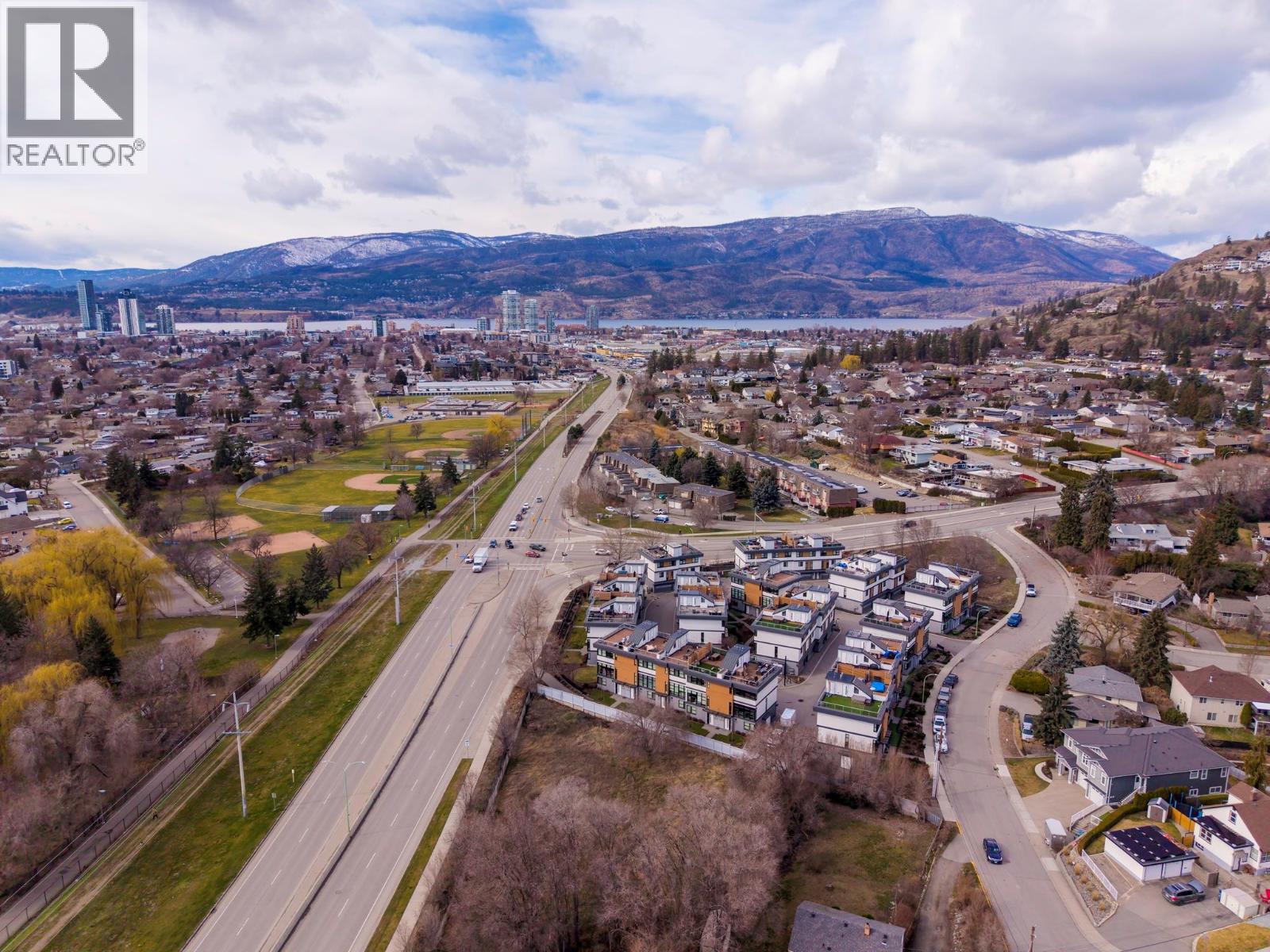 Best location in the development. This 3-bedroom end-unit townhome sits in the quietest, most private position, elevated and set apart with greenspace out front and no direct views in from other units. Southeast exposure brings in excellent natural light, with views from both the living room and primary bedroom. The open main floor features floor-to-ceiling windows, power blinds in the living room, and clean, modern finishes throughout. The kitchen is well laid out with a full stainless appliance package including gas range and steam dryer, plus upgraded window coverings already in place. End-unit design adds four extra windows, creating a brighter, more open feel than interior units. Upstairs, the 588 sq.ft. rooftop patio offers a true outdoor living space with city and mountain views, plus a more functional layout unique to end units. Upgrades include anextended garage built to fit full-size trucks, hands-free skirted toilets, and a newer high-end Eco Spa hot tub. Visitor parking is directly across, with additional room in front of the garage for easier access and maneuvering. Built with geothermal heating and cooling, LED lighting, and quality insulation for efficient year-round comfort. Central location with quick access to downtown Kelowna, Knox Mountain, breweries, restaurants, shops, and the waterfront. One dog or one cat allowed. Award-winning development with 3 Gold Tommie Awards and 2 Silver. (id:62999)