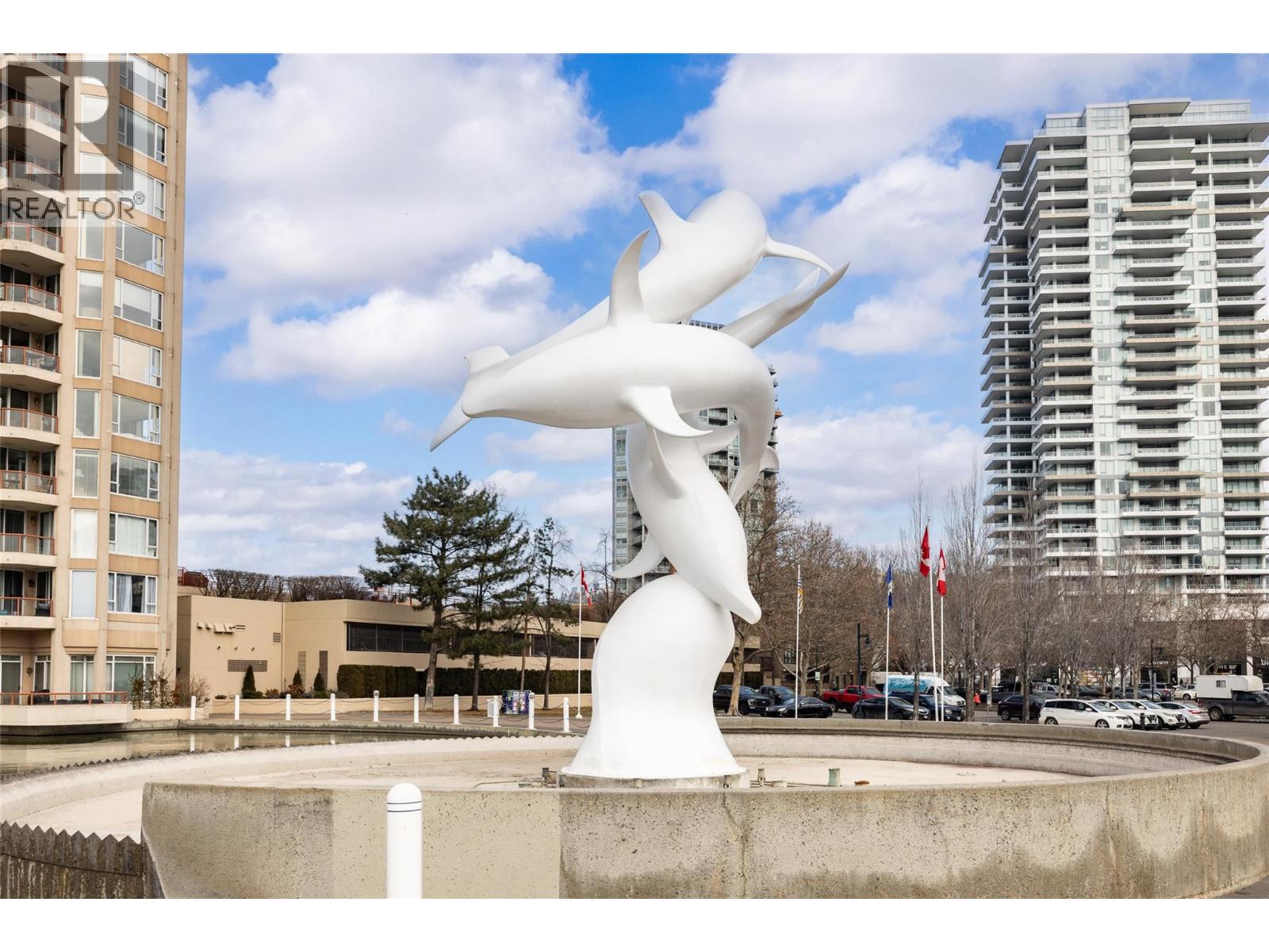 Iconic waterfront living in the heart of Kelowna’s Cultural District! Perfectly positioned on the waterfront, this beautiful two bedroom two bathroom lakeview condo offers a front-row seat to the very best of downtown Kelowna living. Inside, expansive walls of windows flood the home with natural light and frame views of Okanagan Lake, the bridge, the boardwalk, and the iconic Dolphins fountain below. The thoughtfully designed floor plan blends comfort and function, with a generous living area, ideal for both everyday living and entertaining. The kitchen features bar-style seating, under-cabinet lighting, ample cabinetry, and abundant counter space, seamlessly opening to the dining area where lake and city views elevate every meal. Step outside to not one, but two private patios, perfect for morning coffee, sunset dinners, or a glass of Okanagan wine as the city lights come alive. The primary bedroom is a true retreat, complete with a walk-in closet and a private ensuite, while the second bedroom and full bathroom provide flexibility for guests, a home office, or family. The Dolphins offers resort-style amenities including an outdoor pool, hot tub, tennis court, fitness centre, and immaculately maintained grounds. Right outside your doorstep you’ll find Kelowna’s Cultural District, with world-class dining, galleries, theatres, boutique shopping, and microbreweries just steps away. Walk to the beach, marina, yacht club, boardwalk, festivals, and waterfront parks, or simply enjoy the energy of downtown from your own balcony. Whether you’re seeking a full-time residence, a high-end urban retreat, or a premier waterfront investment, this is lakefront living at its most iconic, where culture, convenience, and the Okanagan lifestyle meet. (id:62999)
