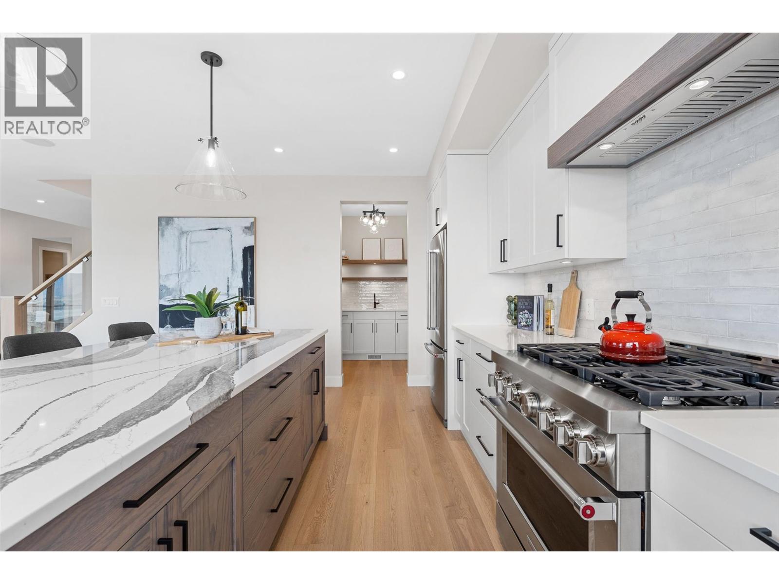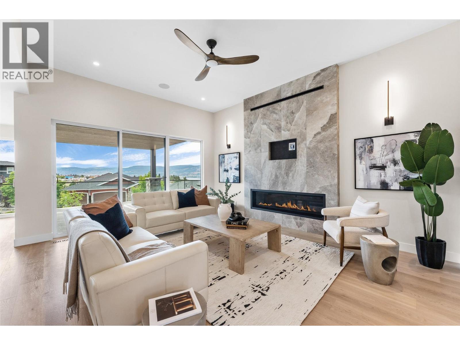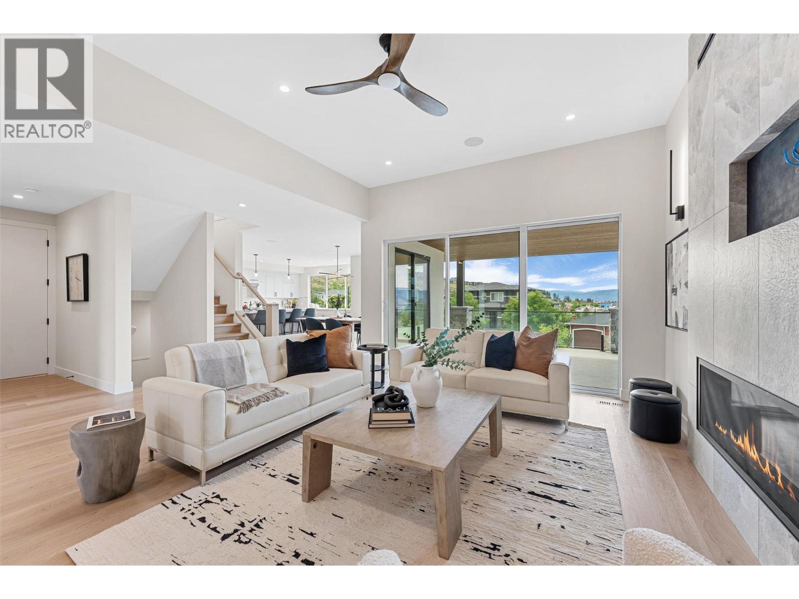 Move-in Ready! NO GST APPLICABLE. Brand-new, spacious 4 bed, 4 bath home with incredible lake views. Built by Destination Homes. Quality, high-end finishes include white oak floors and stairs, a large 72” custom fireplace with large format 24”x 48” tile, Norelco cabinets, quartz countertops, and designer lighting. Enjoy 3 levels of living, multiple patios for an outdoor living experience, and 2 separate garages providing parking for 3 cars. Home offers 2 primaries with en suites. The top floor is entirely dedicated to the main primary suite with a large sun deck, sit down make-up vanity, free-standing soaker tub, custom tiled shower, and large walk-in closet with an island. Lower-level is designed for entertaining with a wet bar, separate entrance, and three bedrooms. Exceptional neighborhood with excellent schools nearby, very close to brand new commercial development which includes large grocery chain, drugstore and much more. Proximity to parks, trails, beaches, golf courses and world-class wineries. Opportunity to execute a pool installation in time to enjoy this summer. Fully landscaped. (id:62999)
