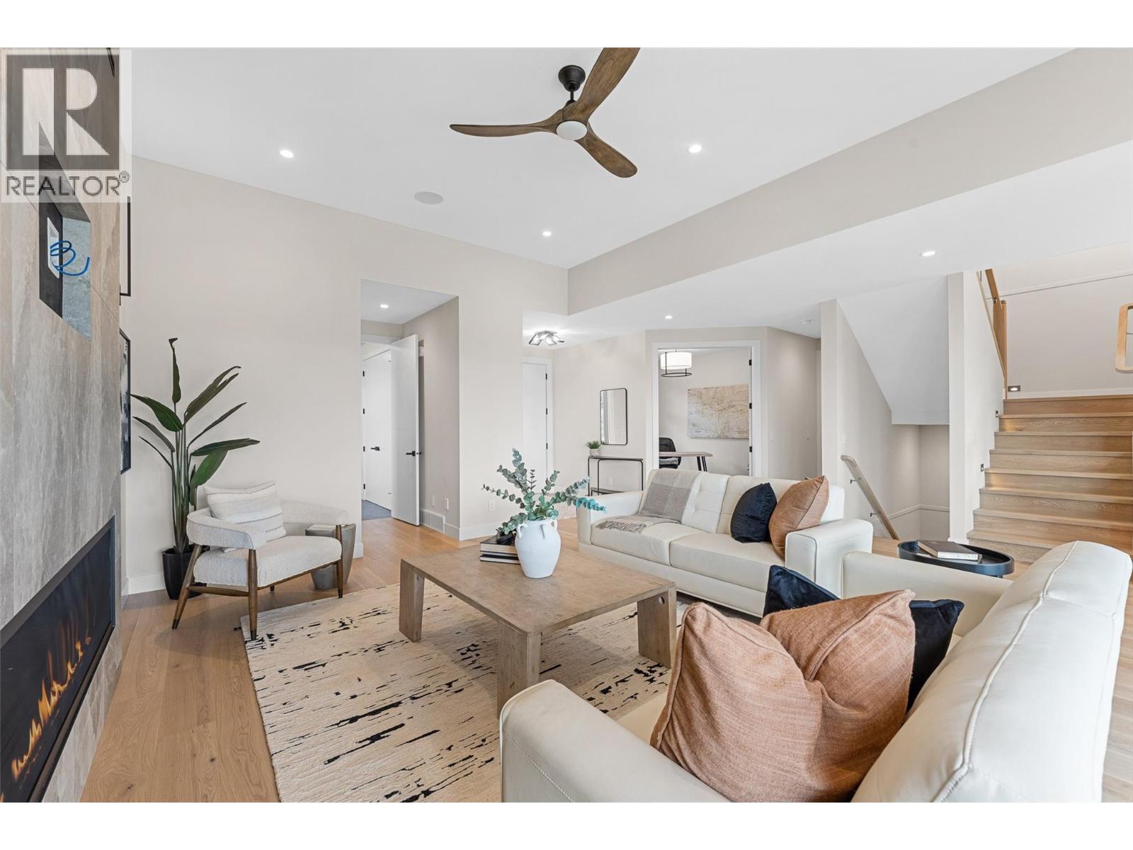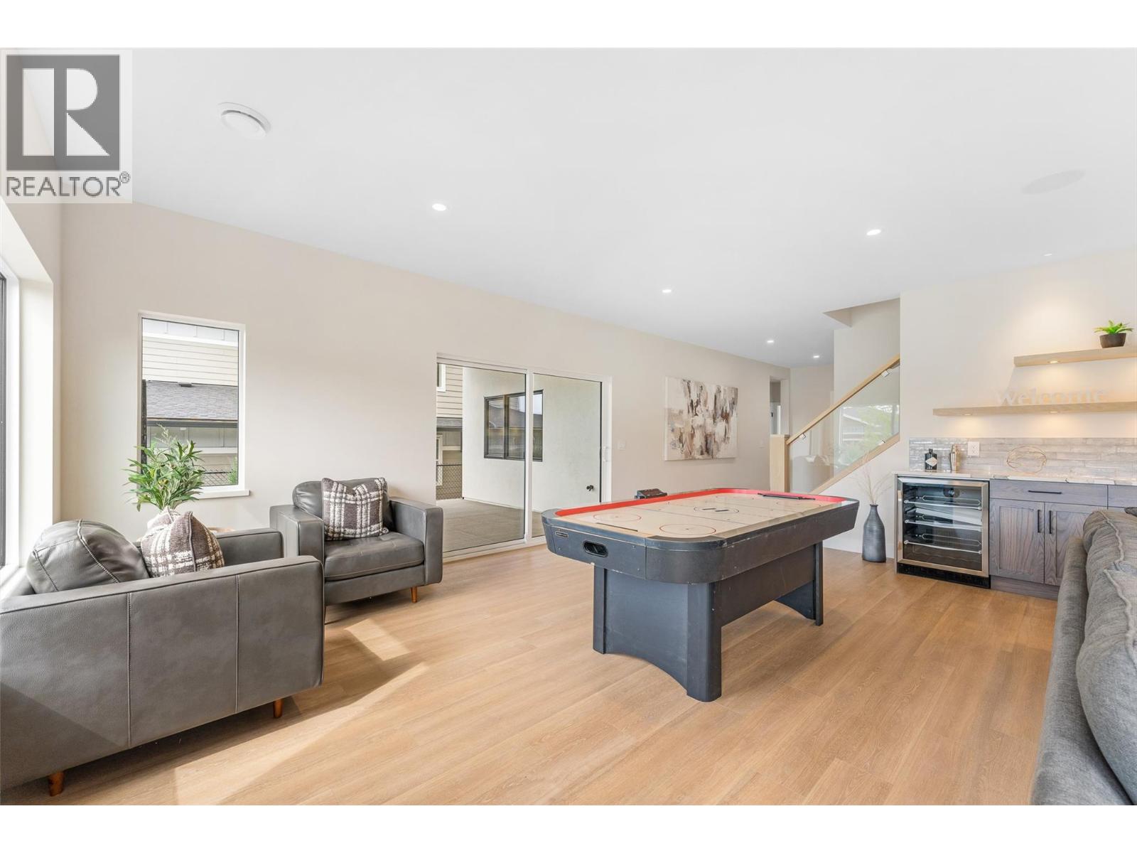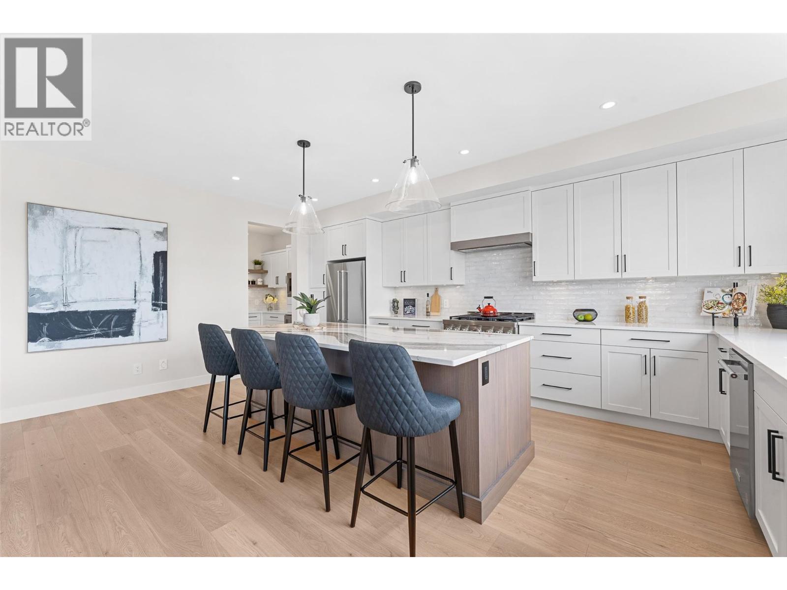 Move-in Ready! NO GST APPLICABLE. Brand-new, spacious 4 bed, 4 bath home with incredible lake views. Built by Destination Homes. Quality, high-end finishes include white oak floors and stairs, a large 72” custom fireplace with large format 24”x 48” tile, Norelco cabinets, quartz countertops, and designer lighting. Enjoy 3 levels of living, multiple patios for an outdoor living experience, and 2 separate garages providing parking for 3 cars. Home offers 2 primaries with en suites. The top floor is entirely dedicated to the main primary suite with a large sun deck, sit down make-up vanity, free-standing soaker tub, custom tiled shower, and large walk-in closet with an island. Lower-level is designed for entertaining with a wet bar, separate entrance, and three bedrooms. Exceptional neighborhood with excellent schools nearby, very close to brand new commercial development which includes large grocery chain, drugstore and much more. Proximity to parks, trails, beaches, golf courses and world-class wineries. Opportunity to execute a pool installation in time to enjoy this summer. Fully landscaped. (id:62999)