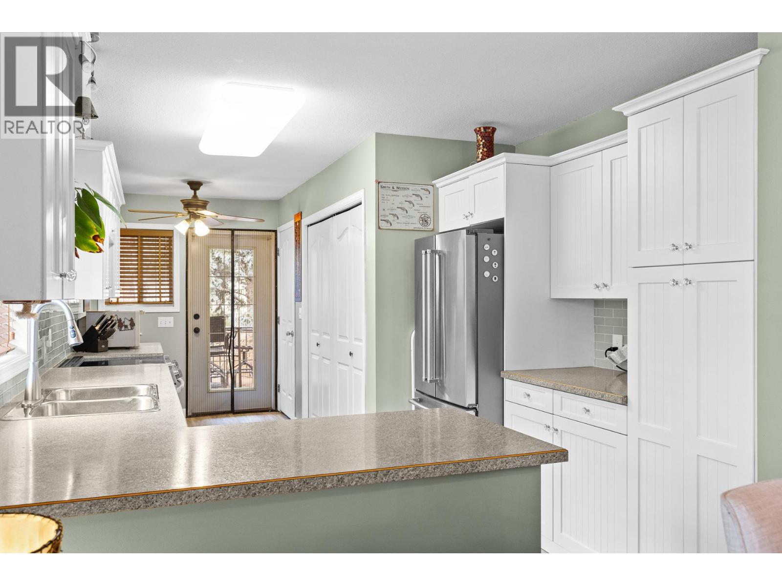 Welcome to this bright and inviting 1,206 sq. ft. home offering 3 bedrooms and 1.5 bathrooms, thoughtfully designed for comfortable everyday living. The spacious living room is filled with natural light from large front windows and features a stylish wall-mounted electric fireplace, creating a warm focal point. The kitchen is both functional and attractive, featuring white shaker-style cabinetry, a subway tile backsplash, stainless steel appliances, and generous counter space. Bright and open, it overlooks the dining and living areas, creating a natural connection to the main living space and making it perfect for everyday living and entertaining. The spacious primary bedroom offers a comfortable retreat with a convenient ensuite and sliding glass doors that open onto the raised back deck, creating an easy connection to the outdoor living space. The deck, also accessible from the kitchen, features sleek metal railings and overlooks a relaxing hot tub area—perfect for unwinding at the end of the day. The private backyard is beautifully finished with mature trees, attractive plantings, and low-maintenance synthetic lawn, all enclosed with privacy fencing. Two additional bedrooms provide flexible space for family, guests, or a home office. Major mechanical updates include a high-efficiency furnace, central air conditioning, and hot water on demand, all approximately three years old. The property also offers ample parking with space for an RV plus three additional vehicles. (id:62999)