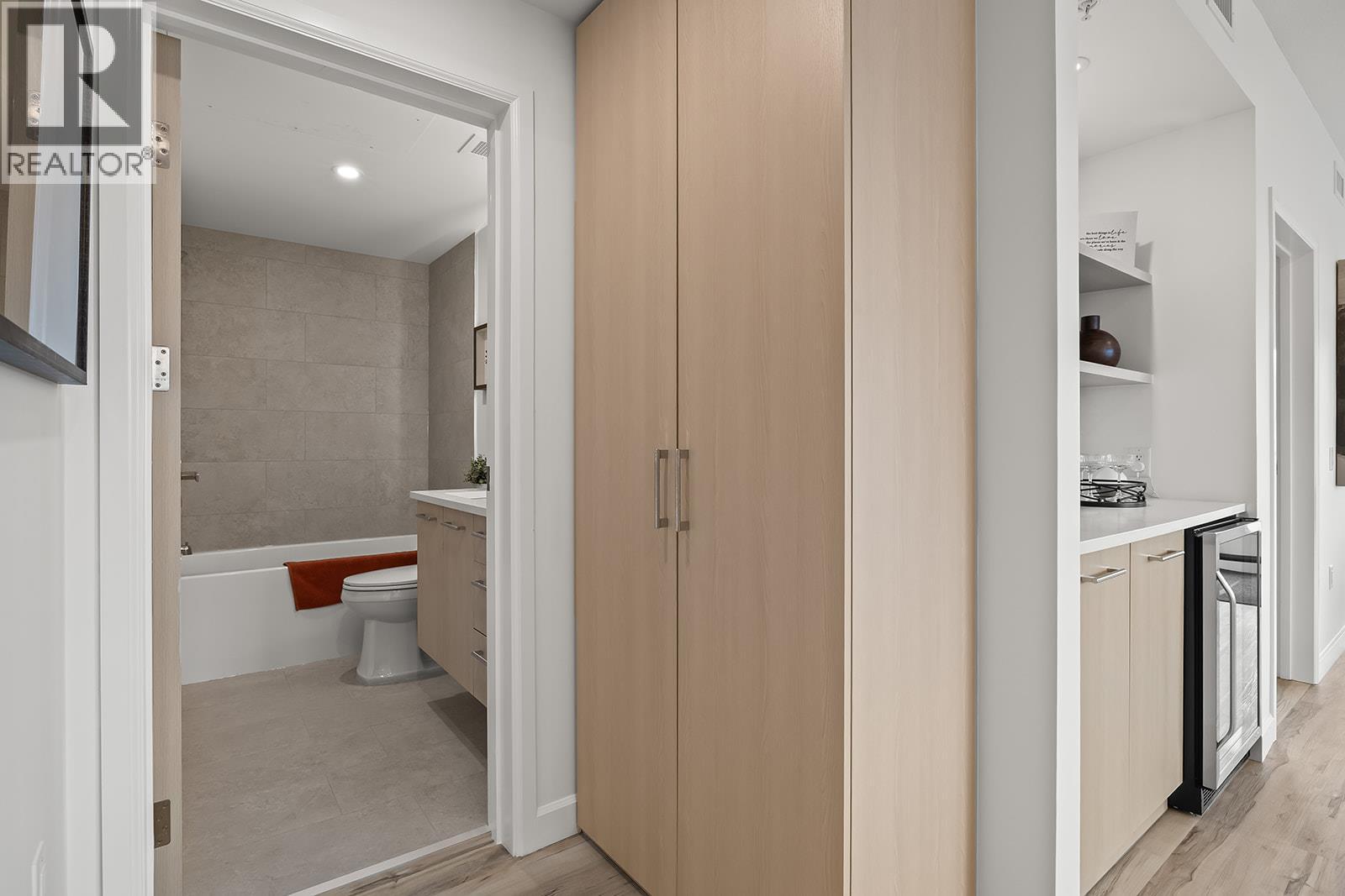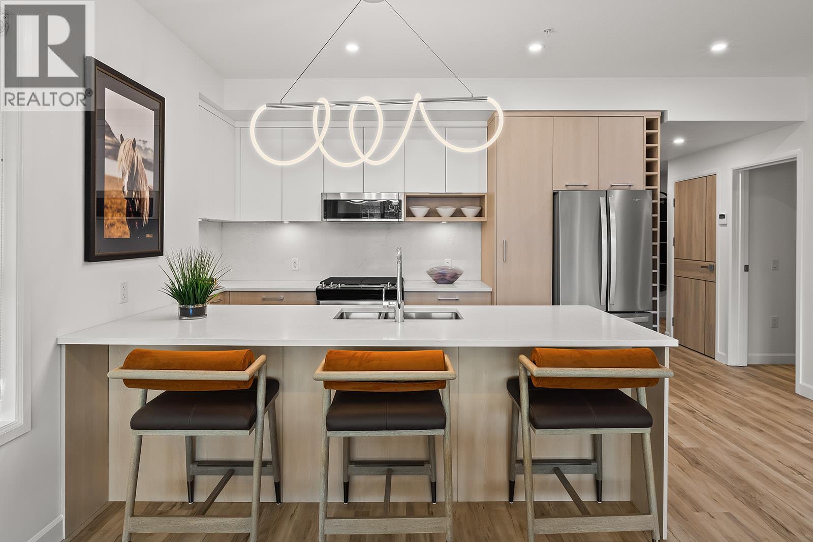 NEW PROMO. SAVE UP TO $161,000 including 3-Years of Strata Fees. Brand New. Move-In Ready. And anything but ordinary. Welcome to Eminence at Knox Mountain. This 2-bed + Den, 2-bath Front Corner home, located next to the lobby/elevator offers approx. 1,166 sqft of smart, sophisticated living. Inside, 9-ft ceilings & expansive windows create a bright, open feel. The Earth colour palette interior blends warm wood tones, striking black accents & glass balcony features. A premium Kitchen with 2-tone cabinetry, quartz countertops, stainless steel appliances, a gas range & a unique wine storage feature. An in-suite laundry room adds convenience, while designer LED lighting, a statement entry door, solid-core interior doors, bathroom wall tiled in the ensuite, & custom shelving & closet solutions complete the polished finish. You’ll also enjoy underground parking with your own private bike cage. The building’s common rooftop viewing terrace gives all new meaning to Kelowna’s Patio Season. Pet-friendly & Nature at your doorstep with direct access to Knox Mountain’s hiking & biking trails. Downtown Kelowna and Glenmore are minutes away. Eligible buyers may qualify for the Property Transfer Tax exemption & the upcoming 1st time home buyer GST exemption & remaining homes include up to $100k in built-in savings from original pricing. Move-In Ready 1-Bed to 2-Bed+Den homes. Sales Centre open Saturday & Sunday 12-4pm or by appointment. (id:62999)