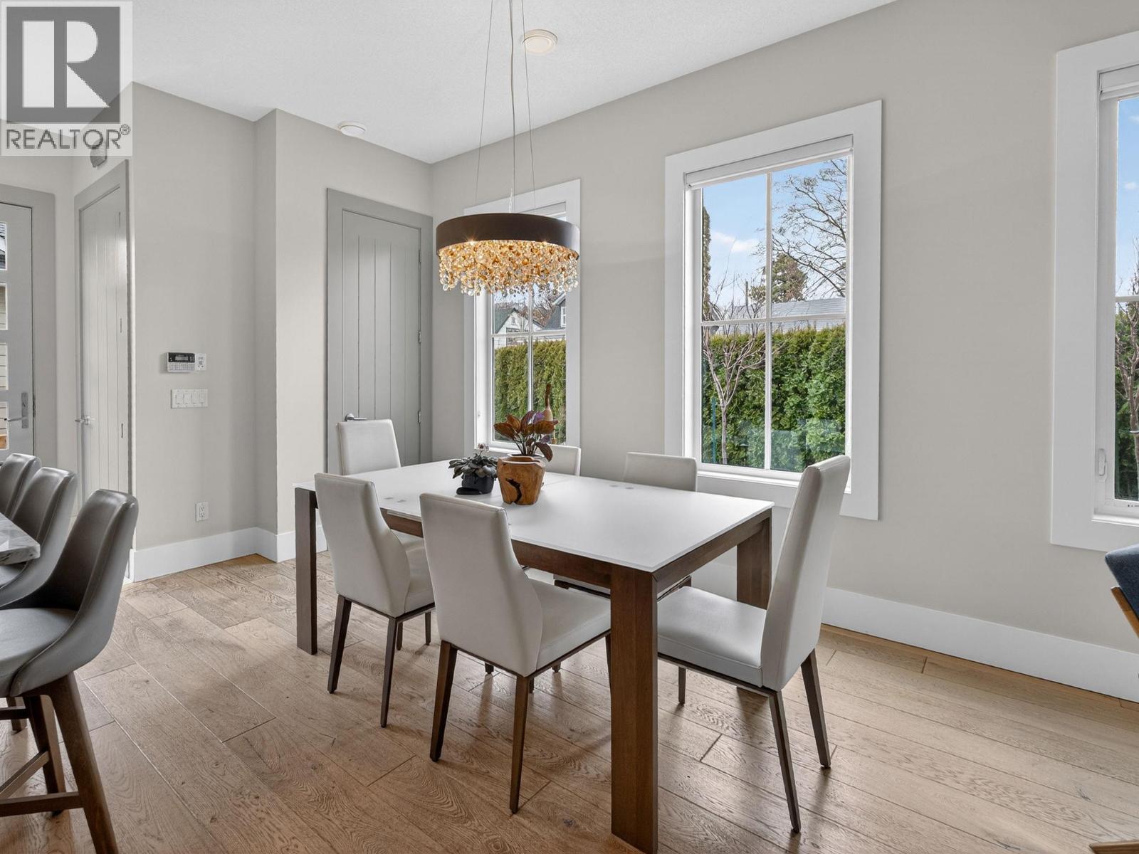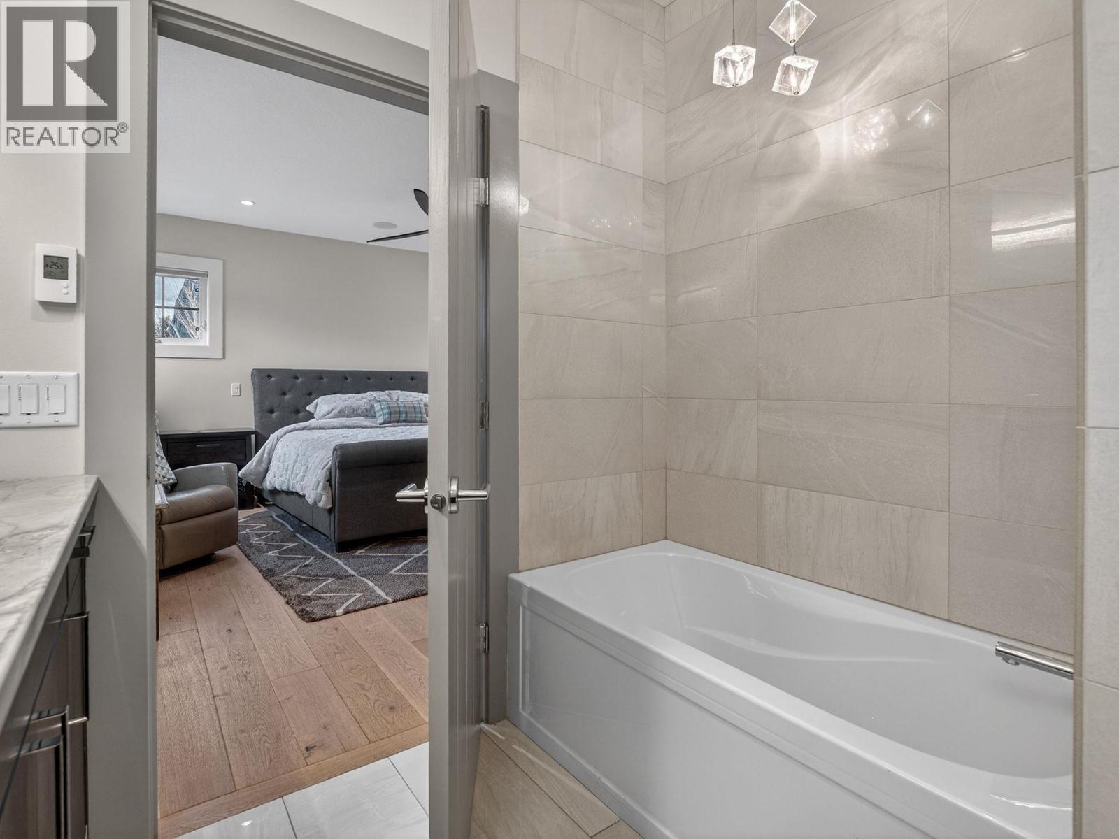 This upscale residence offers the space and privacy of a home with the convenience and low maintenance of a townhome or condo. Situated on a desirable corner lot just steps from the lake, this sophisticated 3 bedroom, 3 bathroom property blends thoughtful design with quality craftsmanship by Hundal Homes. The main level features soaring 10 ft ceilings, 8 ft doors, and an open concept layout that creates a bright and inviting living space. The chef inspired kitchen is designed to impress with granite countertops, heated tile floors, a large island, built in Frigidaire refrigerator/freezer, and a 36-inch dual fuel gas range. The living room is anchored by a cozy gas fireplace, while a main floor office provides the perfect work from home space. Upstairs, the spacious primary suite offers a relaxing retreat with a luxurious ensuite, accompanied by two additional bedrooms, a stylish full bathroom, and convenient upper-level laundry with granite folding counter. All bedrooms include ceiling fans for added comfort. Additional highlights include 4 legal parking stalls, a heated detached garage, central air, instant hot water, central vacuum, built in 4-zone sound system, custom Christmas lights and video surveillance. Location can’t be beat. Enjoy beach access at the end of the street and easy walking distance to the hospital, and downtown amenities. (id:62999)