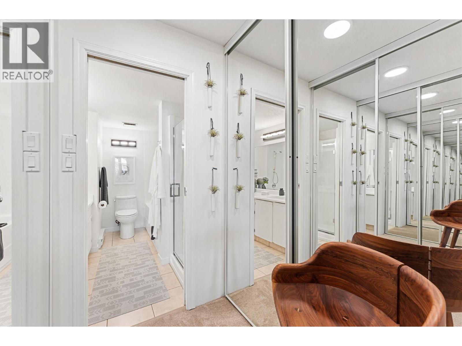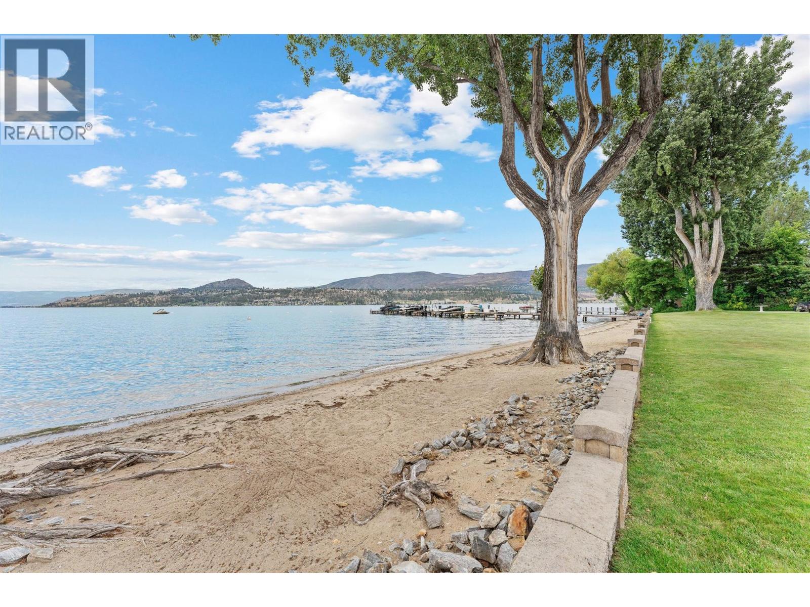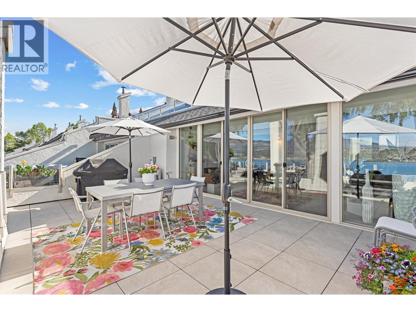 This beautifully maintained waterfront residence offers bright, spacious one-level living in one of Kelowna’s most sought-after communities. Featuring two generous bedrooms and two bathrooms, the home includes a modern maple kitchen with an eating peninsula and adjacent dining area, perfect for entertaining. The living room, complete with a cozy gas fireplace, opens into a sun-drenched flex space through new floor-to-ceiling glass doors, leading to a fully refurbished lakefront patio. The expansive primary bedroom features a walk-through closet and a luxurious 5-piece ensuite with a glass shower and soaking tub. Additional highlights include updated LED recessed lighting, remote-controlled foyer lighting, blackout blinds in the front bedroom, new ceilings in the primary suite, refreshed paint and hardware, a split-unit heater and A/C in the living room, a newer LG slide-in range, and a large in-suite storage closet. The newly renovated laundry room adds to the home’s convenience. Building enhancements include a rubberized entry staircase and landings, fresh exterior paint, and updated front landscaping. Residents enjoy access to a concrete pool and newly tiled hot tub, along with secure underground parking—stall #28 included. Centrally located and within walking distance to amenities, this move-in-ready home blends modern comfort with timeless lakeside charm. (id:62999)