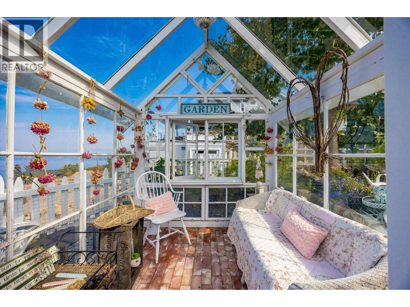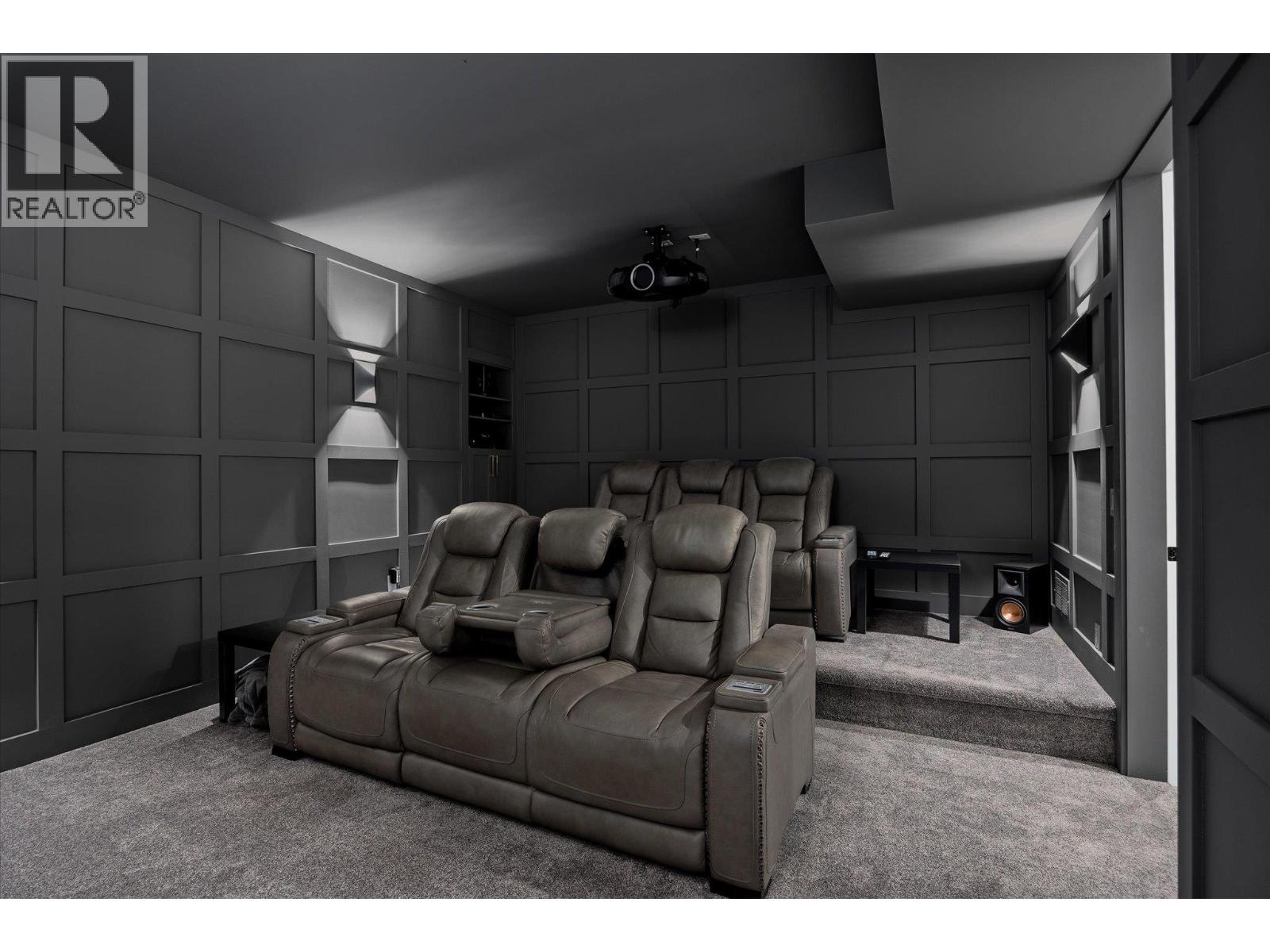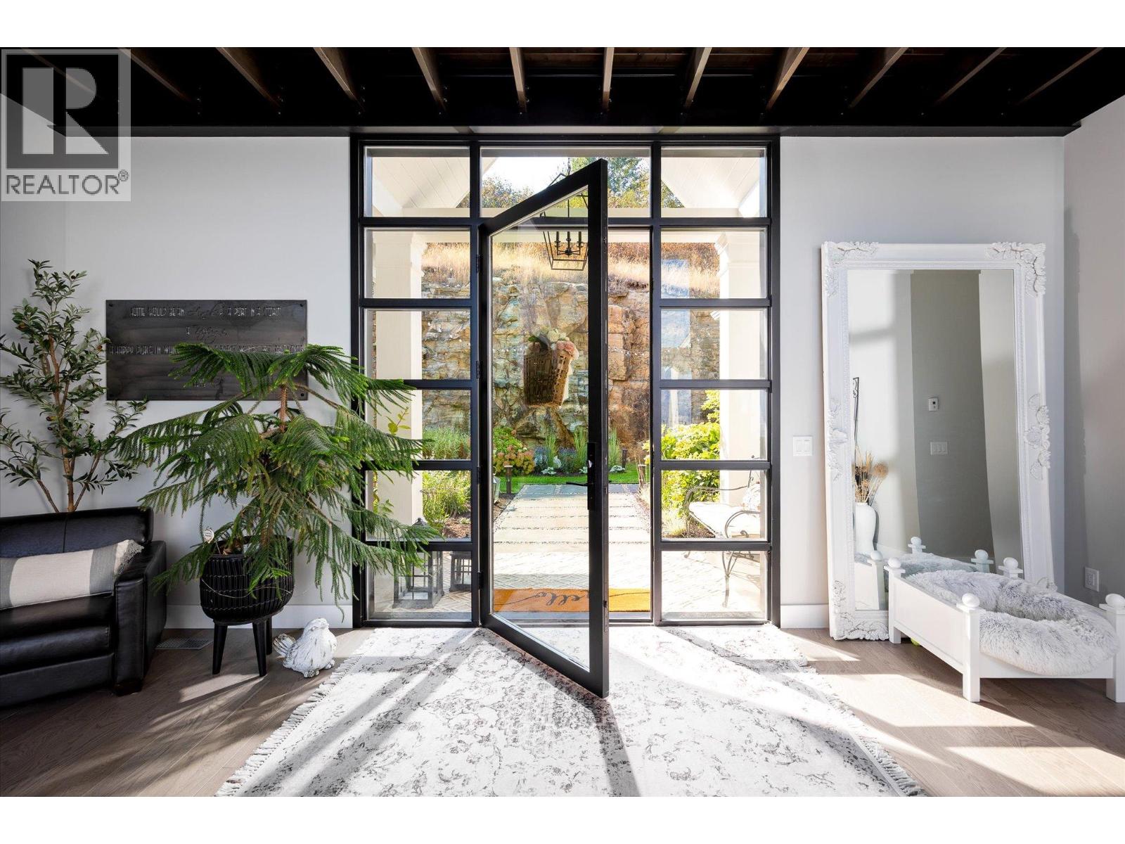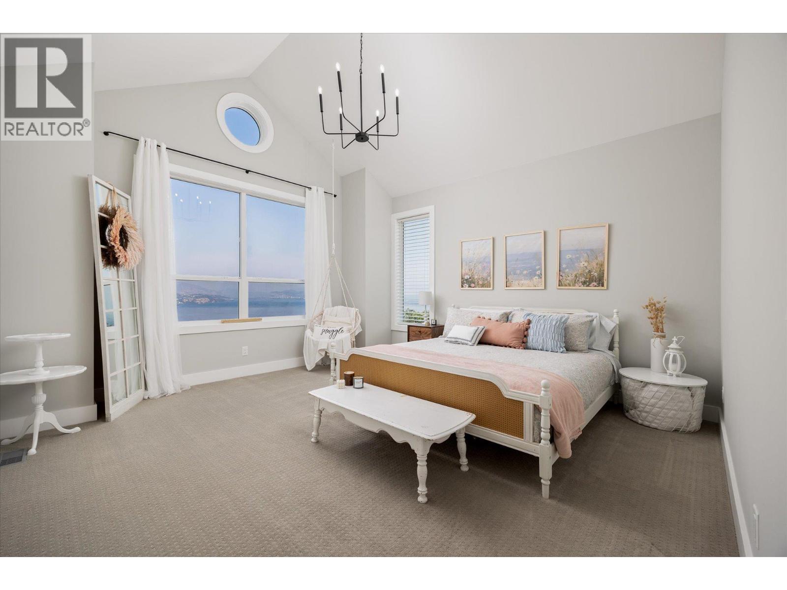 The best view in Kelowna. 2019-built four bedroom, five bathroom, 5,100+ square foot Modern Hamptons residence perched on a 5.129-acre lot in the Upper Mission area of Kelowna! Upon entering the property, you're greeted with your substantive driveway that carves through the rock, creating a unique estate feel. The grounds include substantial mature landscaping, a custom greenhouse/garden area, a large 30'x60' open-air structure at the top of the property (Wedding venue, workshop conversion, greenhouse, etc), a waterfall & pond feature at your central entry, and several raised planter bed areas; a rare property where even the garden gets a view. Upon entering the home, you are greeted with soaring 20 foot ceilings in the living room that flow straight ahead to the infinity pool that blends into Okanagan Lake ahead. The main floor offers this stunning living room, a kitchen with a pass-through to the outdoor BBQ area, and a dining room with perfect indoor/outdoor transitions. The master on the main offers the same panoramic views, and a five piece private ensuite. The main floor is finished off with a powder room, laundry, and an additional bedroom/office. Upstairs via the floating staircase are two complete master bedrooms with their own en-suites, as well as a private ""perch"" one further level up as a viewpoint. Downstairs, there is a tandem-car garage and a full recreation room that features a bar, room for a pool table, a full bathroom, and a private, fully outfitted theatre room. Outdoor amenities include the covered deck with heaters, BBQ area, hot-tub, tiled infinity pool, and sunken fire pit with seating area. This property uniquely has the modern features of a high-end residence but with over five acres, stunning views, full privacy, and extras like the detached structure, and plenty of uncovered parking. (id:62999)