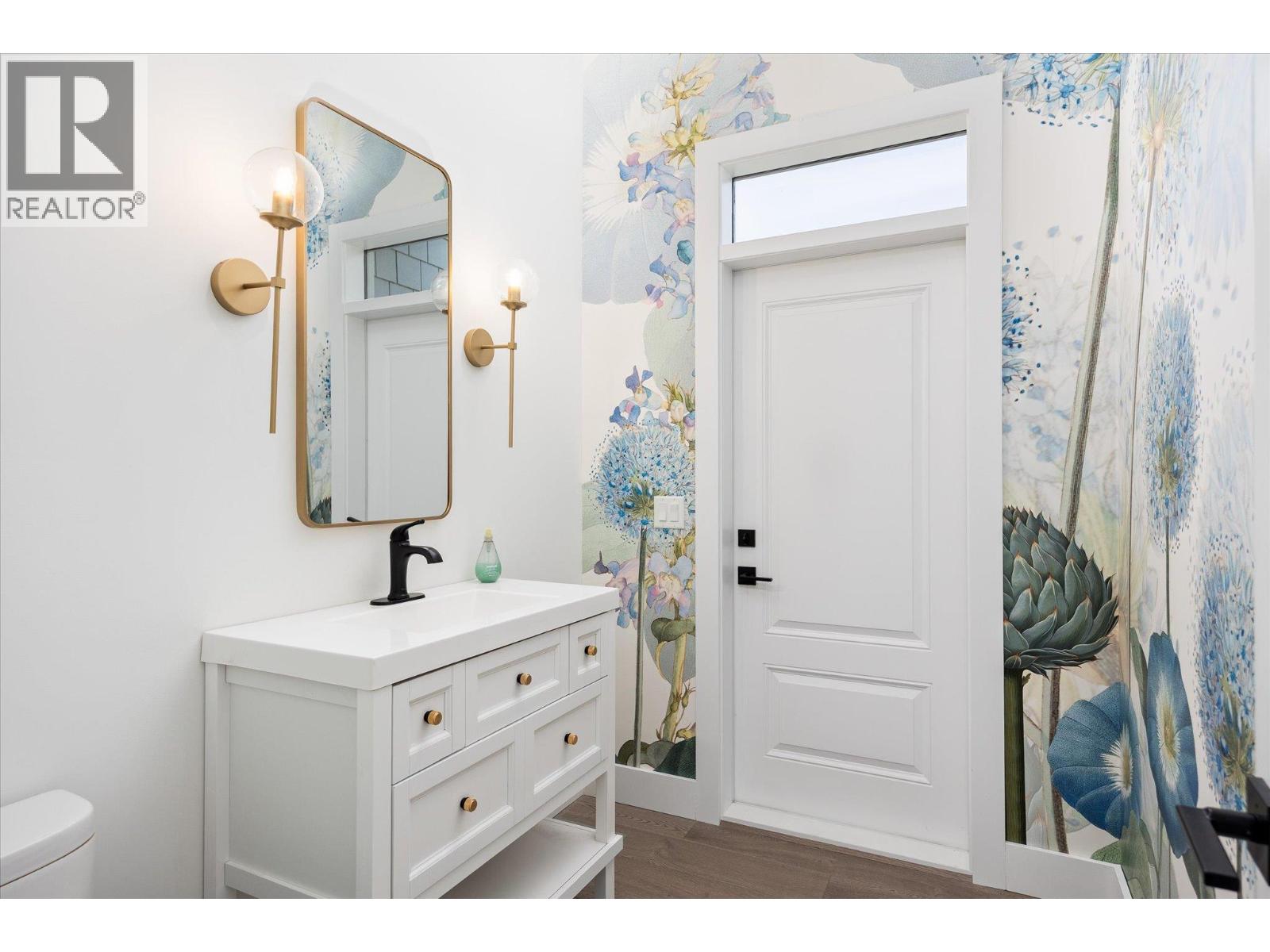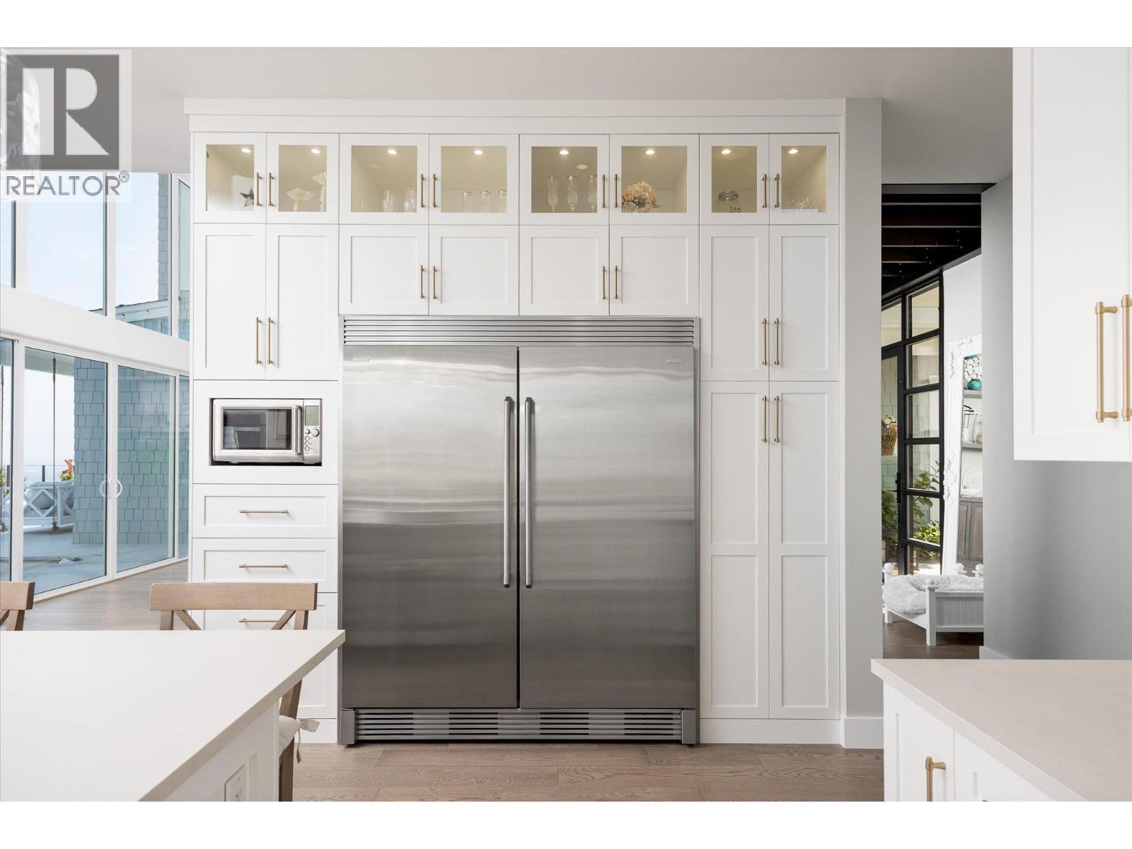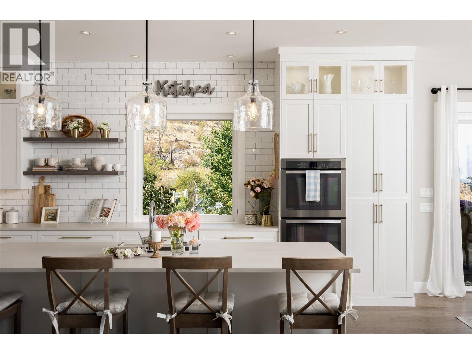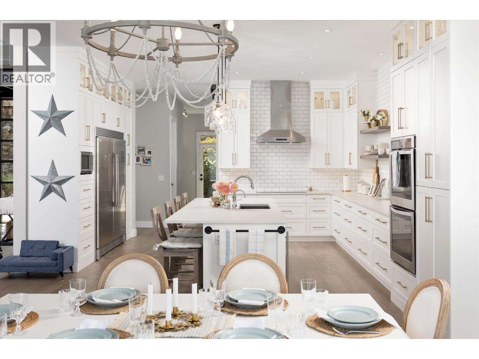 The best view in Kelowna. 2019-built four bedroom, five bathroom, 5,100+ square foot Modern Hamptons residence perched on a 5.129-acre lot in the Upper Mission area of Kelowna! Upon entering the property, you're greeted with your substantive driveway that carves through the rock, creating a unique estate feel. The grounds include substantial mature landscaping, a custom greenhouse/garden area, a large 30'x60' open-air structure at the top of the property (Wedding venue, workshop conversion, greenhouse, etc), a waterfall & pond feature at your central entry, and several raised planter bed areas; a rare property where even the garden gets a view. Upon entering the home, you are greeted with soaring 20 foot ceilings in the living room that flow straight ahead to the infinity pool that blends into Okanagan Lake ahead. The main floor offers this stunning living room, a kitchen with a pass-through to the outdoor BBQ area, and a dining room with perfect indoor/outdoor transitions. The master on the main offers the same panoramic views, and a five piece private ensuite. The main floor is finished off with a powder room, laundry, and an additional bedroom/office. Upstairs via the floating staircase are two complete master bedrooms with their own en-suites, as well as a private ""perch"" one further level up as a viewpoint. Downstairs, there is a tandem-car garage and a full recreation room that features a bar, room for a pool table, a full bathroom, and a private, fully outfitted theatre room. Outdoor amenities include the covered deck with heaters, BBQ area, hot-tub, tiled infinity pool, and sunken fire pit with seating area. This property uniquely has the modern features of a high-end residence but with over five acres, stunning views, full privacy, and extras like the detached structure, and plenty of uncovered parking. (id:62999)