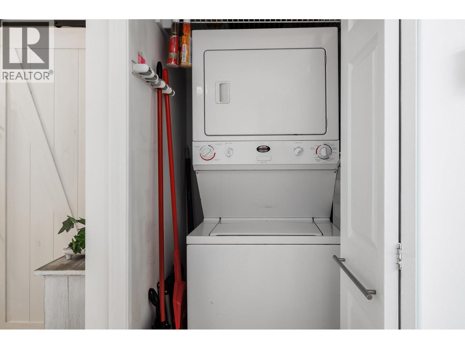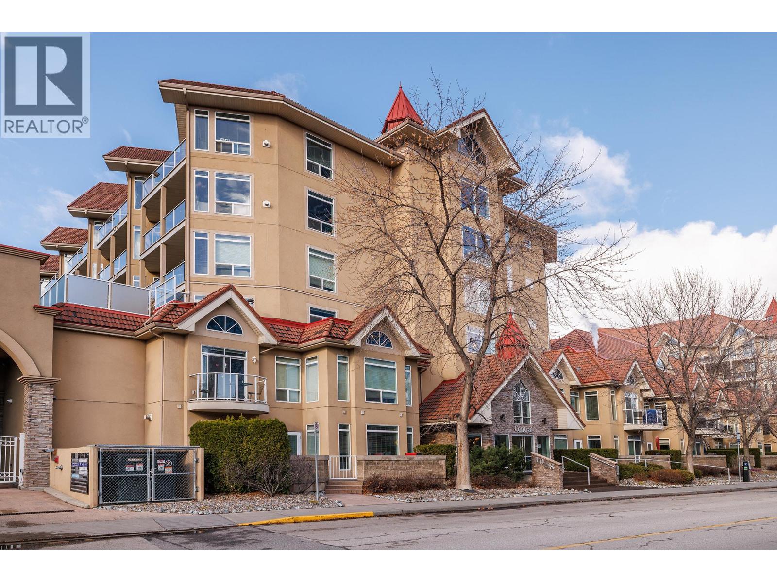 Welcome to Discovery Bay, a resort-style community in the heart of Kelowna, just steps from the waterfront. This bright top-floor 1-bedroom residence features vaulted ceilings, abundant natural light. Fully renovated and offered turn-key furnished, the home showcases timeless décor, hardwood flooring, a cozy gas fireplace, built-in speakers, and custom storage cabinetry. The well-equipped kitchen includes high-quality appliances, dishes, glassware, and new pots and pans—perfect for everyday living or continued Airbnb use, pending approval. The bedroom offers a walk-in closet with built-in storage, while Hunter Douglas window coverings and antique shutters add style and function. A barn door leads to the updated bathroom with vanity and walk-in shower. Additional highlights include in-suite laundry, central heating and cooling, underground parking, elevator access, and a private deck. Enjoy outstanding amenities including indoor/outdoor pool, hot tub, fitness centre, and expansive communal sun deck with BBQs. Pets allowed with size restrictions. A fantastic downtown opportunity! (id:62999)
