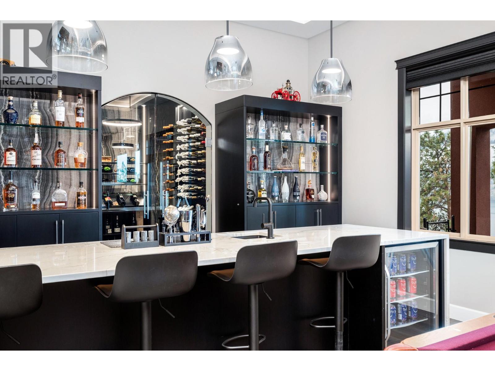 Rare Kelowna lake & mtn view acreage. 2.49 private acres w breathtaking 180 plus degree views of Okanagan Lake & Westside mtns, fully renovated by Bercum Builders & tucked away on a quiet McKinley Landing cul-de-sac. This private 4BD, 3BA walkout rancher blends refined indoor living w exceptional outdoor space. Inside, vaulted ceilings frame the open-concept main living area anchored by a chef’s kitchen featuring a massive titanium leather granite waterfall island, natural white Macaubas quartzite counters & full-height backsplash, & premium finishes thru-out. Expansive windows capture incredible views while the space flows effortlessly into the dining & living areas. Primary suite offers balcony access to the hot tub, 2 W/I closets & spa-inspired ensuite w deep soaker tub & oversized rainfall W/I shower. 2nd bdrm, full BA, office & laundry complete the main lvl. Walkout lower lvl is an entertainer’s dream featuring a custom award-nominated wine cellar, wet bar, theatre rm w raised back row seating & auto blackout blinds, gym w rubber flooring, 2 oversized bdrms, bonus rm/office & 3rd full BA. Outside, the resort-style backyard showcases a salt water pool, expansive outdoor living areas & continued views. OVSZD heated garage/workshop provides excellent storage for vehicles, rec gear & OK lifestyle toys. Minutes to DT Kelowna, YLW airport, wineries, beaches & endless recreation, this exceptional McKinley Landing property offers the perfect blend of privacy, luxury & lifestyle. (id:62999)