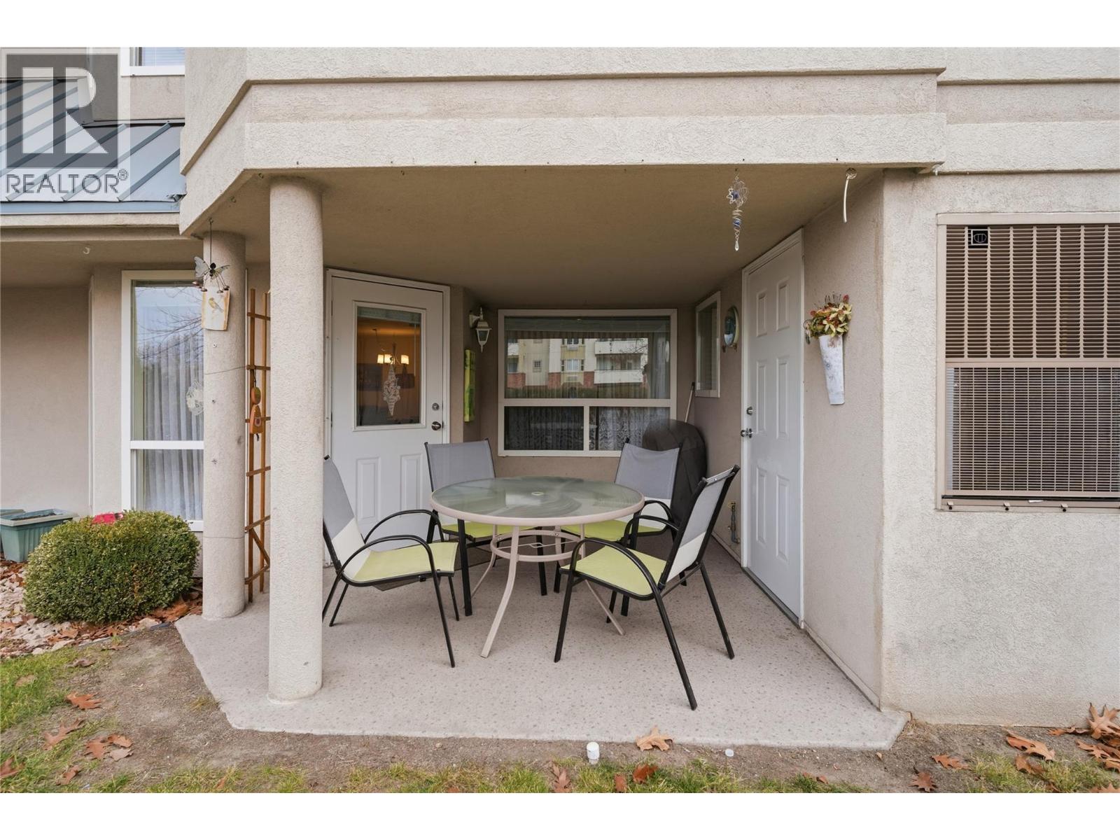 The One They Never Want to Leave! There's a reason the original owner has been here since day one... this place just works. Ground-floor 2 bed / 2 bath in Bristol Gardens, 1,156 sq ft, and it still shows like the show home it actually was. The layout makes sense the way most condos don't. Oversized bedrooms with bay windows, a primary suite with walk-in closet, and an updated ensuite with a walk-in tiled shower. Separate laundry room (not a closet situation). Same-floor storage. Walk-out patio with gas BBQ hookup. Central heat and A/C. Furnace replaced in 2021. The details are there because someone actually cared. The building is well-run, well-maintained, and honestly a bit of a unicorn...heated parkade, car wash bay, clubhouse, woodworking workshop, and two elevators. Walk to Orchard Park Mall, Costco, Superstore, restaurants, and the Mission Creek Greenway. Whether you're simplifying your life or looking for a well priced starter home, this is the kind of home that makes both decisions feel really smart. Pet friendly (1 dog or cat). Low strata fees. Move in and breathe. (id:62999)