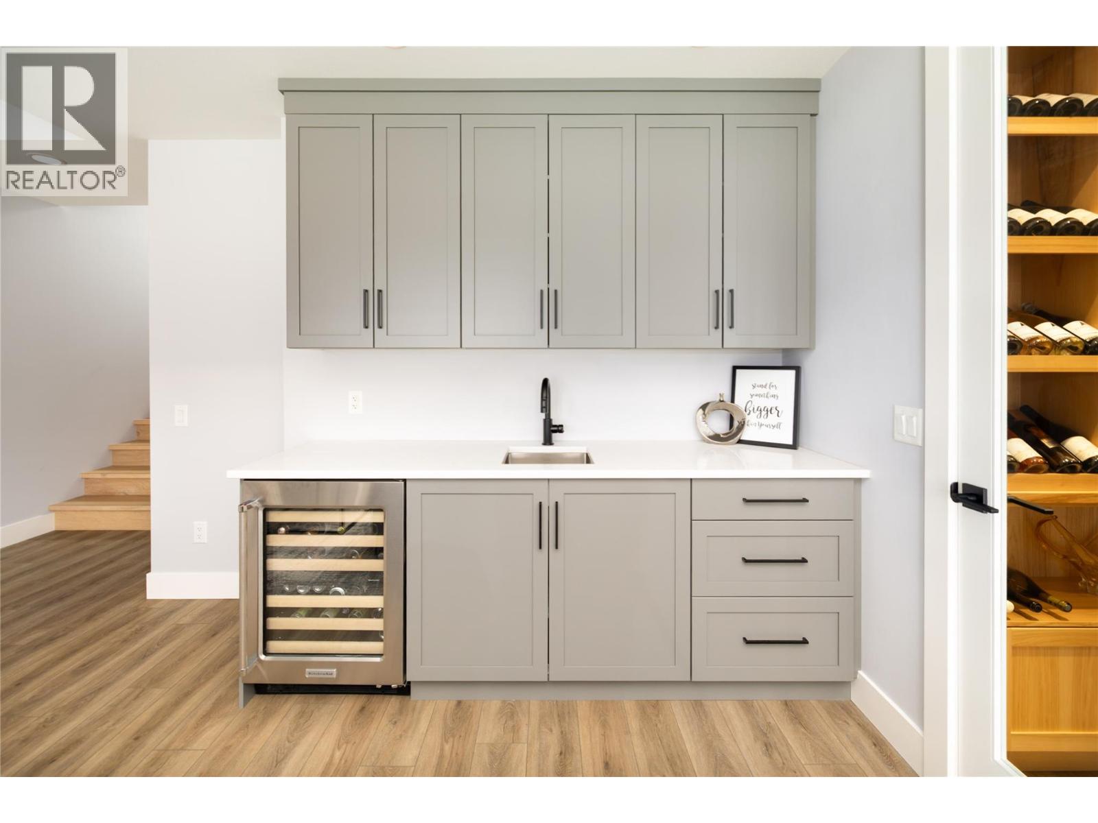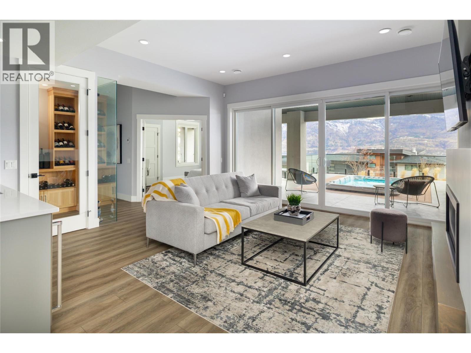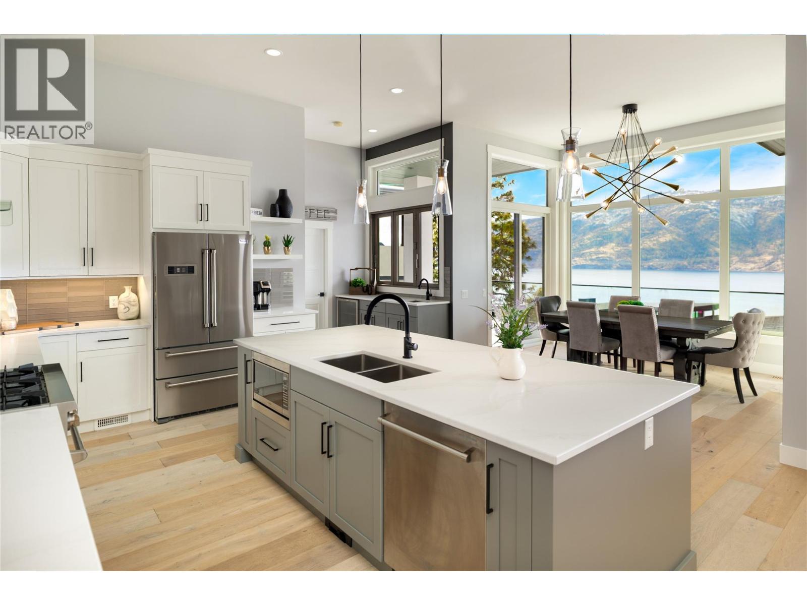 Experience elevated Okanagan living in this beautiful lakeview rancher, perfectly positioned in McKinley Beach—just a stroll away to the shoreline, marina, and endless lakefront adventures. Spanning nearly 3,700 sq. ft., this modern home features a triple car garage, 6 bedrooms and 4 full bathrooms, including a private 2-bedroom legal suite with its own outdoor patio space. The main living space has an open-concept layout, a cozy gas fireplace and breathtaking lake views. The gourmet kitchen is complete with a large island, Thor gas range, walk-in pantry, and a stylish wet bar area with a folding window that opens up to the deck. Enjoy 2 oversized lakeview decks offering both covered and sun-soaked spaces—perfect for morning coffee or sunset entertaining. The primary suite offers amazing lake views, and the main level is complemented by an additional bedroom, full bath, and a spacious laundry room.The lower level is designed for relaxation and entertainment, featuring a rec room with a second fireplace, wet bar, and a glass-enclosed wine room. Two additional bedrooms and a full bathroom complete the space, with direct access to your private swim spa deck—enjoy it as a refreshing plunge pool in the summer or a hot tub in the winter. Residents have access to the community amenity centre with indoor pool, gym, yoga studio, sauna, pickleball and tennis courts, community gardens, playgrounds, and scenic hiking trails. Plus, the newly opened Azhadi Winery is in walking distance. (id:62999)
