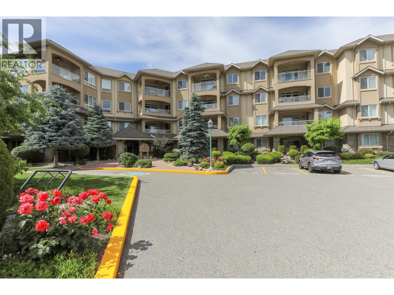 TOP FLOOR! Enjoy beautiful views of the pool and mountains from your covered balcony. The perfect spot for your morning coffee in the sunshine. This 2-bedroom, 2-bathroom condo offers a desirable split-bedroom layout for added privacy. The kitchen and bathrooms feature granite countertops, complemented by fresh paint throughout and a newer A/C unit. The spacious primary bedroom includes a full ensuite with double closets. Cozy up to the warmth of your gas fireplace in the winter or host endless barbeques in the summer, with gas conveniently included in your strata fees. Additional perks include a storage locker located just down the hall and a dedicated bicycle/tire storage room in the underground parkade. Meadowbrook is sought after for its resort feel. Whether you like lounging poolside in the sun or having some laughs over a game of pool with friends in the newly remodelled clubhouse, it's a perfect place to call home. Amongst the amenities are 3 guests suites with low nightly rates. Meadowbrook is centrally located, just a stone’s throw away from transit, shopping, recreation & the rail trail. (id:62999)
