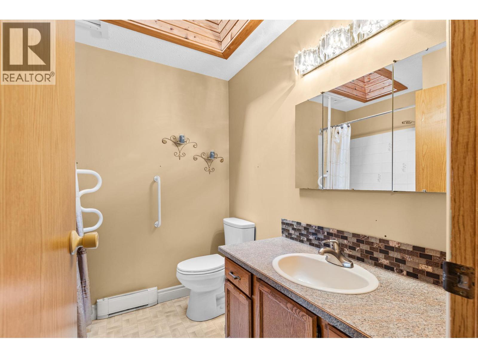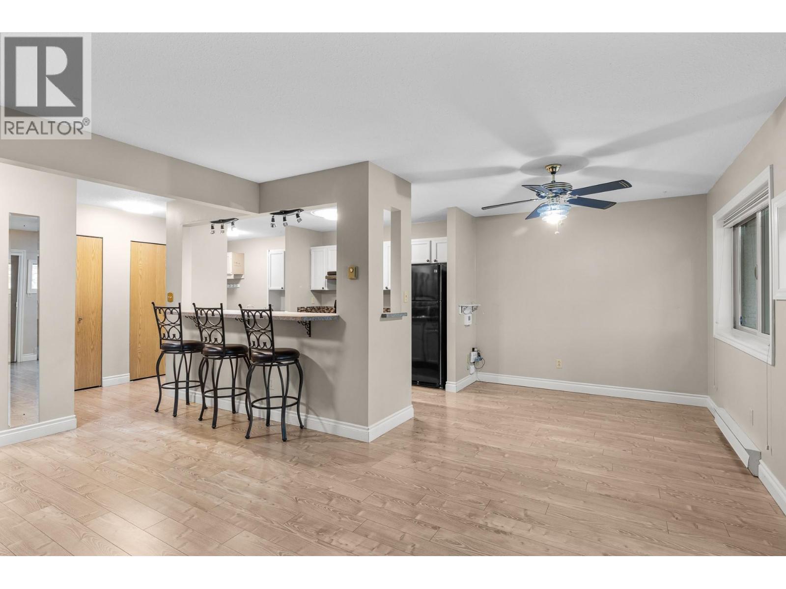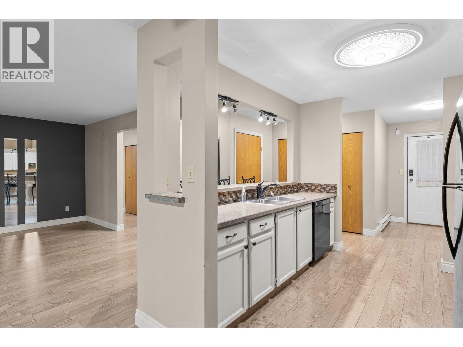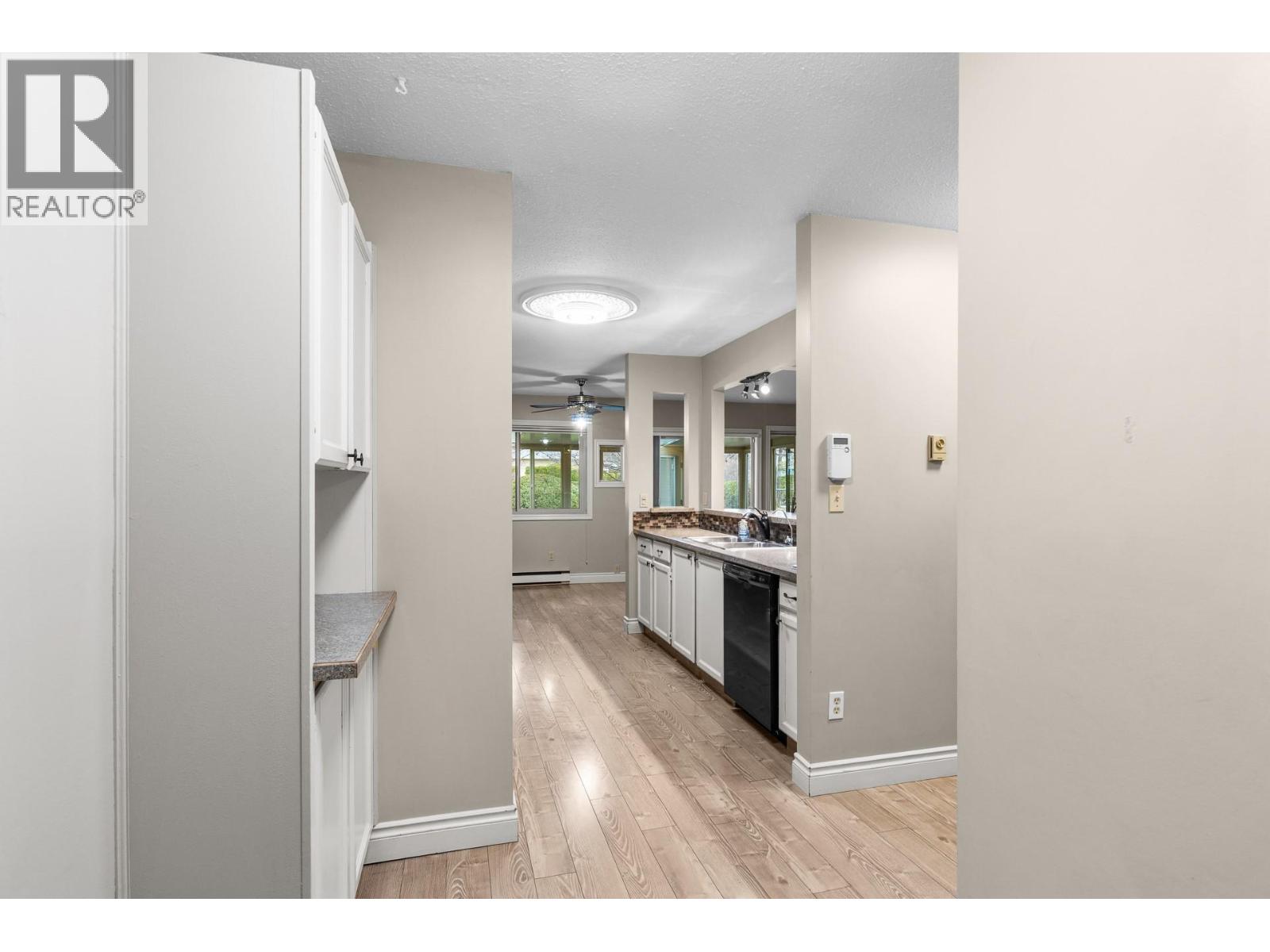 OPEN HOUSE Saturday the 28th 2pm-4pm....Beautifully Updated Rancher Townhome – A True Gem! Bright end unit offering exceptional privacy and natural light, this spacious 2 bedroom, 2 bathroom level-entry, one-story 55+ adult-oriented townhome offers approximately 1,400 sq. ft. of living space including the sunroom—one level living like this is so rare to find! Ideally located within walking distance to shopping, transit, and the Mission Creek Greenway, with a convenient bus route nearby. This home features a hard-to-find open floor plan, laminate flooring, updated trim, newer windows, a newer roof, no Poly B plumbing, and a newer hot water tank, with sunny south-facing exposure perfect for relaxing or entertaining. An absolutely amazing 300 sq. ft. quality-built sunroom adds exceptional living space and includes access to a crawl space and storage area, plus a door leading to the adjacent storage unit complete with a seating area. The updated kitchen showcases black appliances, while the expansive living and dining area offers a sliding glass door to the outdoor space. Enjoy two generous bedrooms, including a king-sized primary with walk-in closet and 3-piece ensuite, a full 4-piece main bathroom with skylight, a separate laundry and storage room off the entry, and covered parking, plus tons of visitor parking including a convenient space right at your door. Such a unique and special opportunity in a well-maintained community. PET RESTRICTIONS: 1 cat or 1 dog under 16'! (id:62999)