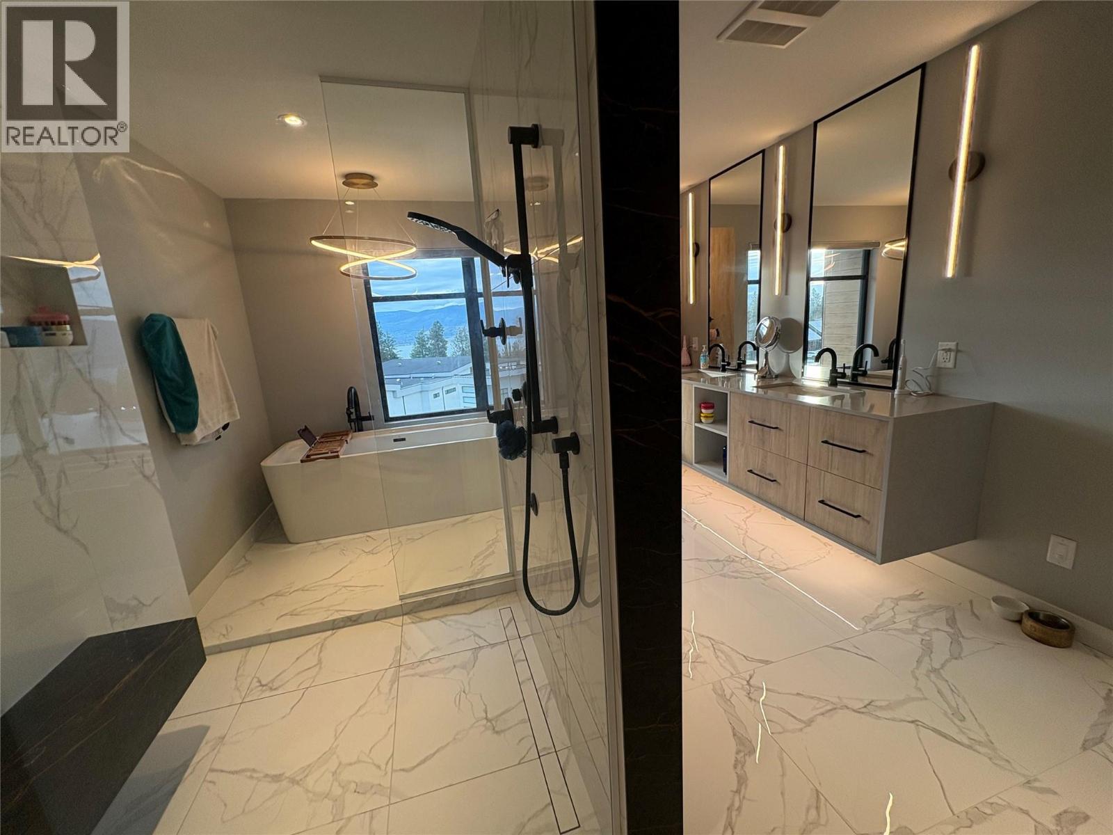 Upper mission beautiful lakeview house situated on this quiet cul-de-sac . This house is very close to local wineries, restaurants, shops, the beach and schools. This house has its own elevator to get access easily to upstairs from your main entrance and garage . There are 2 bedrooms and 2 bathrooms on the third floor. There is 1 bedroom and 1.5 bath on second floor and 1 bedroom and ensuite bathroom located in the first floor . Natural light streams into your kitchen with expensive quartz counter space and ample contemporary designed cabinets including large Island and boutique bar area. The living rooms have 15' ceilings, built-in fireplaces and huge windows along with access to the back patio. The huge master bedroom has a spa-like master bath and walk-in closet and you can see the lakeview from the master bedroom , and step out the deck , you can see the bridge and lake and mountain view .This house has oversized garage is large enough to accommodate a 40’ motorhome w/ enough extra room for a 4 more vehicles and toys. (id:62999)