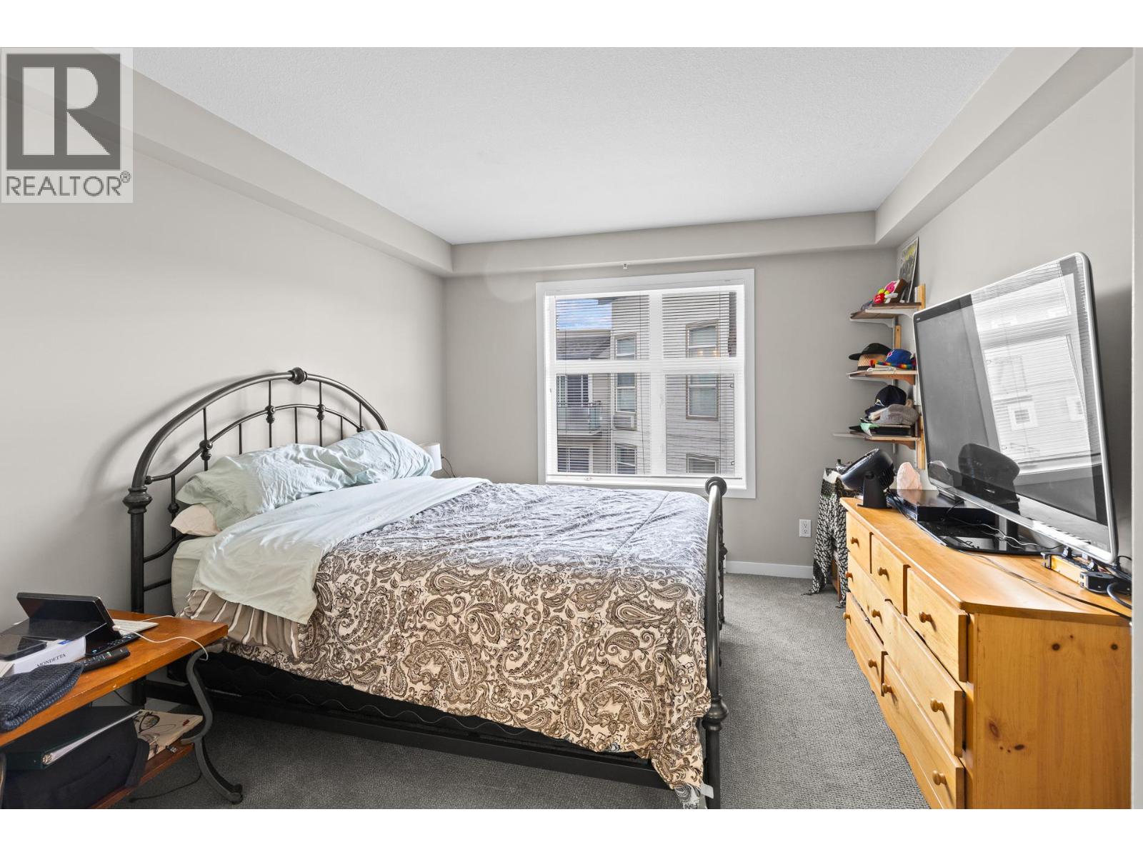 Top floor bright and modern 2 bedroom + den, 2 bathroom corner condo offering 1003 sqft of stylish living space! Relax on the spacious covered deck with views of the pool and volleyball court — perfect for recharging or entertaining. This condo includes 2 secured parking stalls, laminate flooring in the main living areas. The open-concept kitchen boasts granite countertops and a tile backsplash. The split-bedroom layout provides ideal privacy — the large primary suite features a walk-in closet and 4-piece ensuite, while the second bedroom is located next to the main bath. A convenient den/office is located near the front entrance. Other highlights include in-suite laundry and a wall-mounted A/C unit. The Verve is a sought-after complex with amenities: outdoor pool, volleyball court, picnic and BBQ areas, and a fully fenced dog park. Pet-friendly (up to 2 dogs or 2 cats, or 1 of each), no age restrictions, and rentals allowed. Centrally located close to downtown Kelowna, UBCO, public transit, shopping, restaurants, and schools. Enjoy nearby golf courses, beaches, and the beautiful Brandt’s Creek linear park trail. (id:62999)