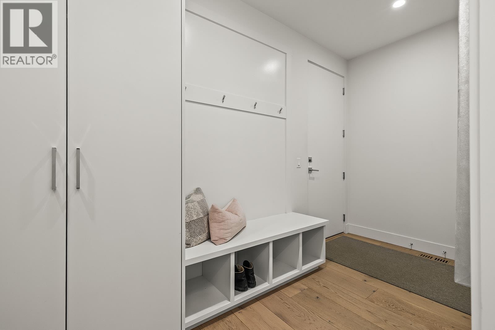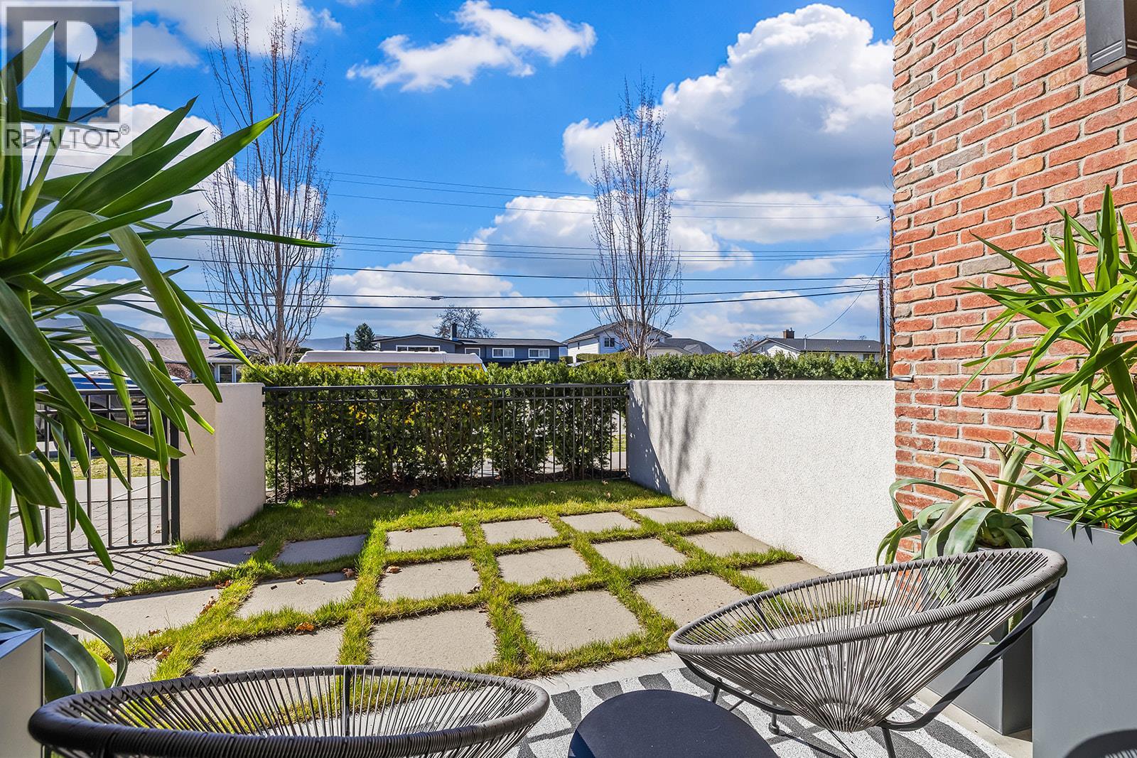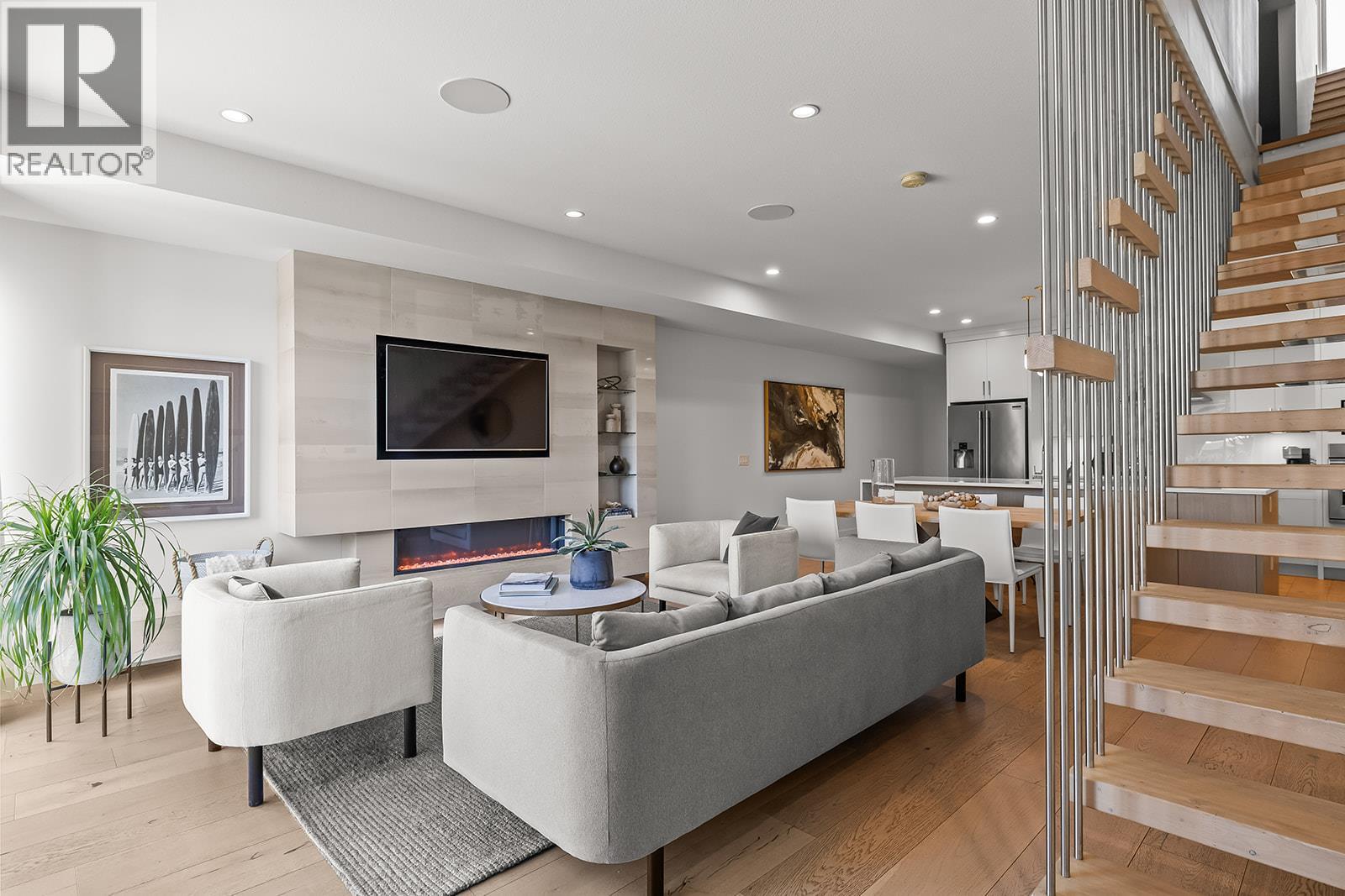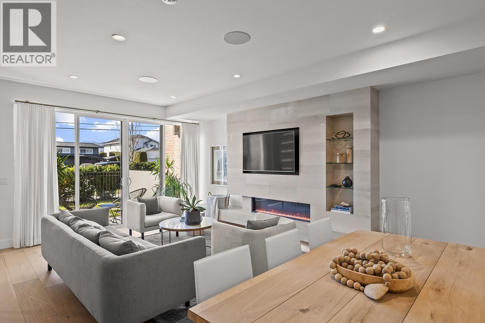 Welcome to this contemporary, modern townhome offering an exceptional lifestyle and is perfectly situated. This property features three bedrooms and three bathrooms with 1914 square feet of bright, open interior living space and an additional 452 square feet of private outdoor space. The main floor boasts a grand level entry and an open-concept layout, ideal for entertaining. The kitchen is fully equipped with stainless steel appliances and features flat-panel cabinets and premium quartz countertops, which are featured throughout the home. The second level is thoughtfully designed for comfort and convenience, housing all three bedrooms, a lounge/family room, and laundry space. The luxurious primary suite includes a walk-in closet and a five-piece ensuite bathroom with a modern glass shower and a soaker tub. The two additional bedrooms are ideal for family or guests and share a full bathroom equipped with a double vanity. They also have their own patio doors leading to a private, quiet covered deck. One of the standout features of this property is the extensive outdoor space: a front patio, a private rooftop patio and covered deck off the spare bedrooms making it perfect for exceptional outdoor entertaining, enjoying Okanagan evenings and mountain views. If you need space for your toys and storage, this home features an attached double garage and an easily accessible crawl space for extra storage. Ideally located, this sought-after neighborhood is perfect for walking or biking to local amenities, including beaches, parks, shopping, transit, and Downtown Kelowna. Pets are allowed with restrictions. (id:62999)