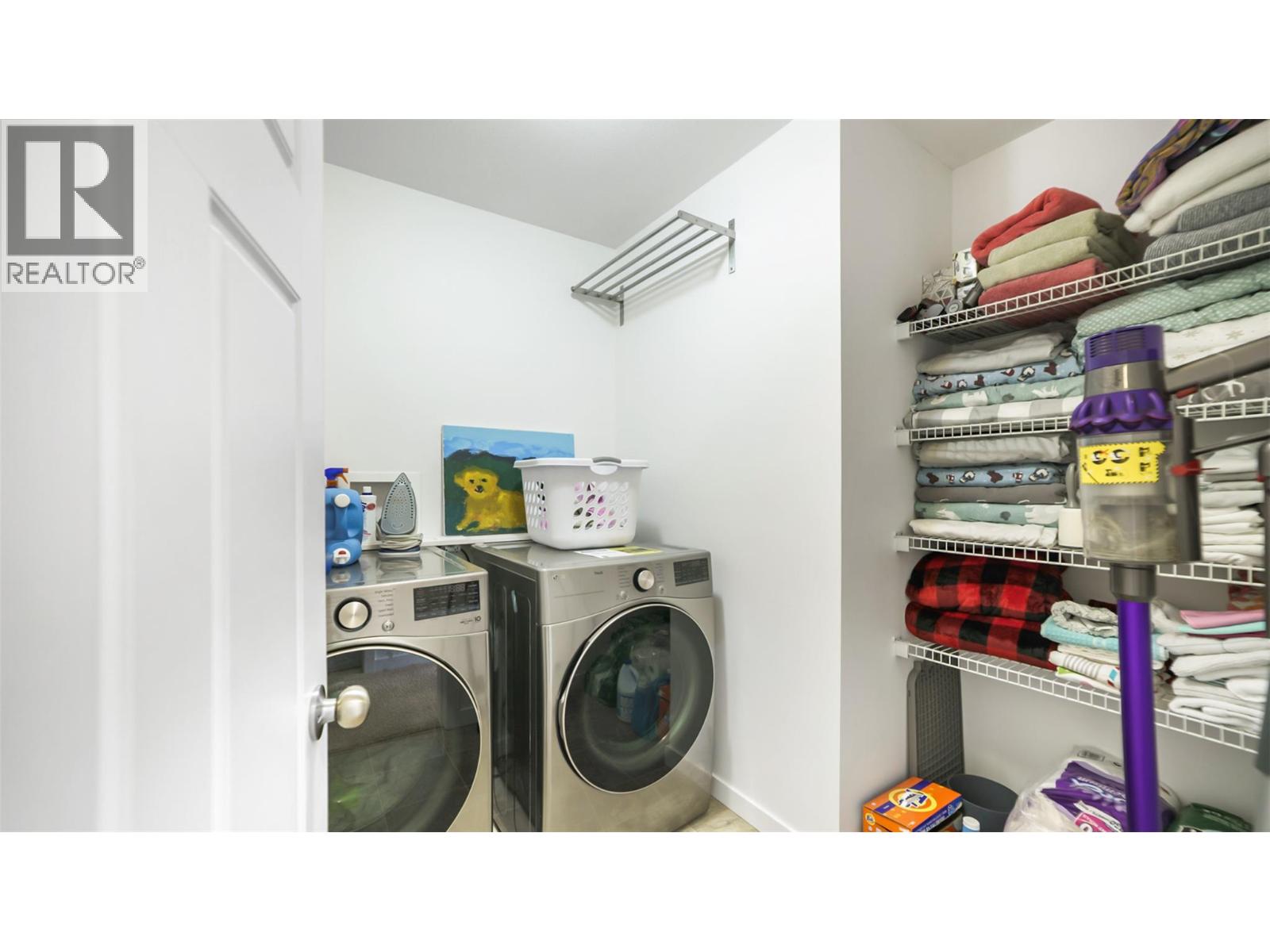 Welcome to 5485 South Perimeter Way in Kettle Valley. Built by Mission Group, this four bedroom, four bathroom townhome offers over 1,800 sq ft of bright, functional living space designed with families in mind. The open concept main floor is filled with natural light and features 9 foot ceilings, oversized windows, stainless steel appliances, and a large kitchen island, with direct access to a patio overlooking the community park. Perfect for BBQs or keeping an eye on the kids. The fenced front yard adds even more space for pets and play. Upstairs, the spacious primary suite includes a walk in closet and a 5 piece ensuite with dual sinks, a soaker tub, and glass shower, along with two additional bedrooms, a full bathroom, and convenient upper level laundry. The finished lower level offers a fourth bedroom and direct access to a rare double garage with extra storage. With guest parking out back, Amberhill’s private playground, and close proximity to Chute Lake Elementary, hiking trails, and the Village Centre, this home offers both community and convenience. Recent updates include a 2023 heat pump rated to -30, new stainless steel kitchen appliances (2022–2023), washer and dryer (2022–2024), and a full interior repaint in 2024, offering peace of mind for years to come. (id:62999)
