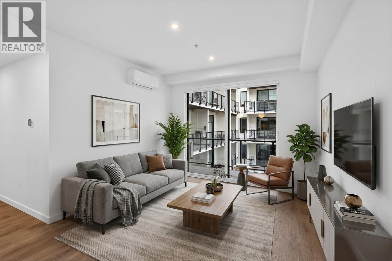 Welcome to Five Crossings—one of Kelowna’s most amenity-rich and lifestyle-focused communities. This bright 1 bedroom inside unit offers a smart, efficient layout and a quiet outlook toward the landscaped courtyard, creating a peaceful retreat in the heart of the city. Thoughtfully designed for modern living, the home features contemporary finishes, a sleek kitchen with built-in appliances, and efficient heating and cooling for year-round comfort. Five Crossings offers an incredible collection of lifestyle amenities. Residents enjoy a fully equipped fitness centre, yoga and zen lounge, co-working space, bike storage and repair station, and a convenient dog wash. The stylish residents’ lounge is perfect for gathering with friends and features a full kitchen, golf simulator, pool table, projection screen, and fireplace. The sixth-floor rooftop is a standout feature, with expansive terraces, BBQs, covered outdoor dining with a fireplace, and multiple cozy fire pit areas to relax and take in the city and mountain views. Ground-level amenities include a bocce court, dog run, shared garden plots, MODO car share, and EV charging stations. This home also includes TWO storage lockers—an exceptional amount of space, a rare bonus! Located just steps from Capri Shopping Centre, restaurants, parks, and transit, Five Crossings offers convenient urban living with incredible amenities. (id:62999)