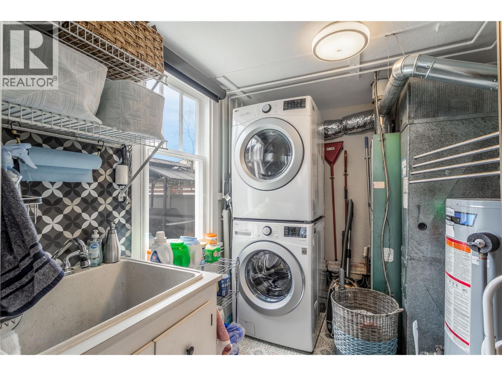 Location, Location Location!!! This 900+ sqft 2 bed, 1 bath home has been lovingly maintained by its current owners and is ready for its new chapter. Located only 7 houses from Kinsmen Park and Okanagan Lake, you will love the vibe of this location! Imagine taking your paddle board out of the detached 12x24 garage and only being a few houses from the lake. This area is being re developed with new modern homes making their way into the landscape. When you walk in you are greated with 9' ceilings and tons of natural light thanks to the big windows making the space bright and inviting. Both the interior/exterior has been proffesionally painted. 2 good sized bedrooms and a single bath with a tub/shower stall. A functional kitchen layout with really cool vintage sink. Forced air heating and alarm system. The back patio is covered with a metal roof extending the patio season and over looks the south facing, fully fenced yard with underground irrigation. The whole property has been laid out for easy maintenance and simple yard work. 1 year old roof and detached garage has a newer overhead door with opener. Fruit trees, RV parking, storage shed and pre wired for a hot tub. This would be an awesome holding property while you have your dream home designed in a really great area of Kelowna. Check out the virtual tour in the media tab! (id:62999)
