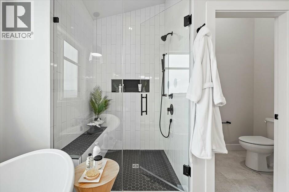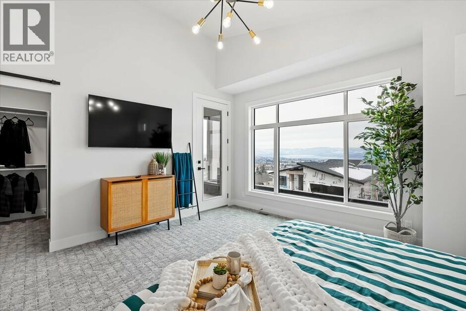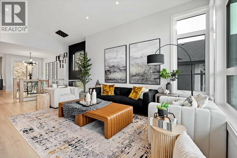 Meet the home that turns heads, proudly built by local builder Carrington Homes, this former showhome is anything but ordinary. The Emerald floor plan delivers walk-up living in the quite community Lone Pine Estates with jaw-dropping city and lake views. the main floor boasts soaring vaulted ceilings, oversized windows, and natural light that creates a wow factor you’ll feel instantly. The great room is pure statement: a 16’ custom fireplace wall, sleek electric fireplace, floating cabinetry, and a showpiece open wine display made for entertaining. The kitchen is equally impressive with bold contrasting cabinetry and a fully equipped butler’s pantry featuring a beverage fridge, second sink, and ample storage. This home also offers 2 additional bedrooms, an office, a rec room with wet bar, and a spacious primary retreat with a 5-piece ensuite. Enjoy a 3-car garage plus a bright 2-bedroom legal suite with private laundry - great for family or guests. GST applicable. (id:62999)