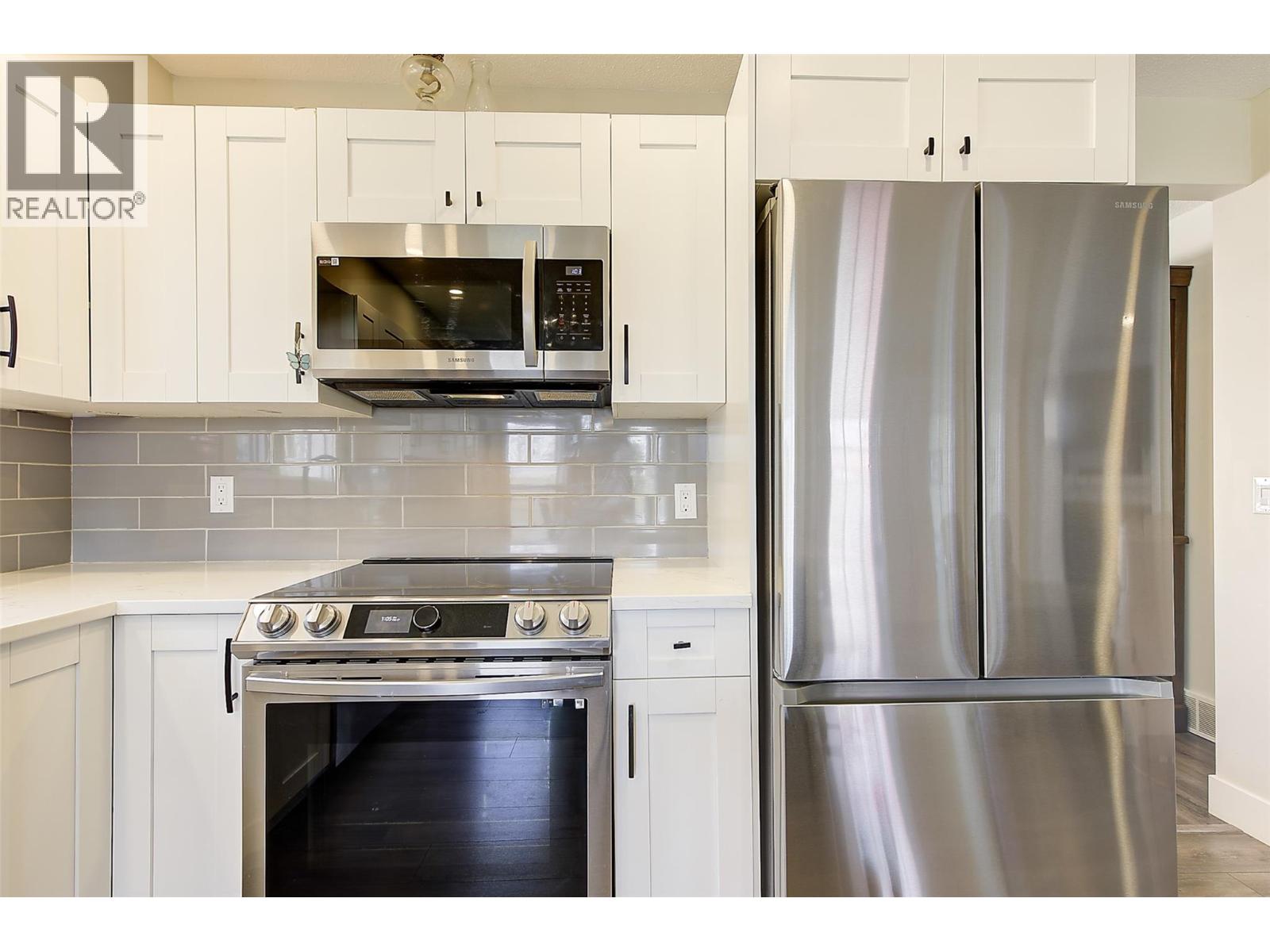Comfort, convenience,& carefree living define this move-in ready rancher in the highly sought-after 55+ gated community of Sandstone. Thoughtfully updated & easy to maintain, this home is ideal for downsizers seeking a simplified lifestyle without sacrificing quality or space. The bright white island kitchen features quartz counters, pantry cupboards, quality Samsung appliances, and a sunny bay-window nook—perfect for relaxed mornings. The layout offers two bdrms & two full baths (spacious primary suite with walk-in shower). A family room with brick gas fireplace is a welcoming place to unwind. An enclosed sunroom provides year-round enjoyment with minimal upkeep. Rancher style home makes day-to-day living effortless. Recent upgrades incl a Bosch three-rack dishwasher, Samsung washer and dryer, LED lighting throughout, added ceiling light in the primary bedroom, updated furnace, and a new garage door with opener motor. All Poly-B plumbing in the home and to the street has been replaced. The double garage includes added ceiling insulation and a 220 plug—ideal for an electric heater or future EV charger. Step outside and enjoy walkable access to Guisachan Village for groceries, cafés, and daily needs, with Kelowna General Hospital, parks, beaches, and the Greenway just minutes away. Residents enjoy exceptional amenities including indoor and outdoor pools, swirl pool, clubhouse, gym, library, RV parking, and wide, level roads. One dog or one cat permitted (size restrictions). (id:62999)