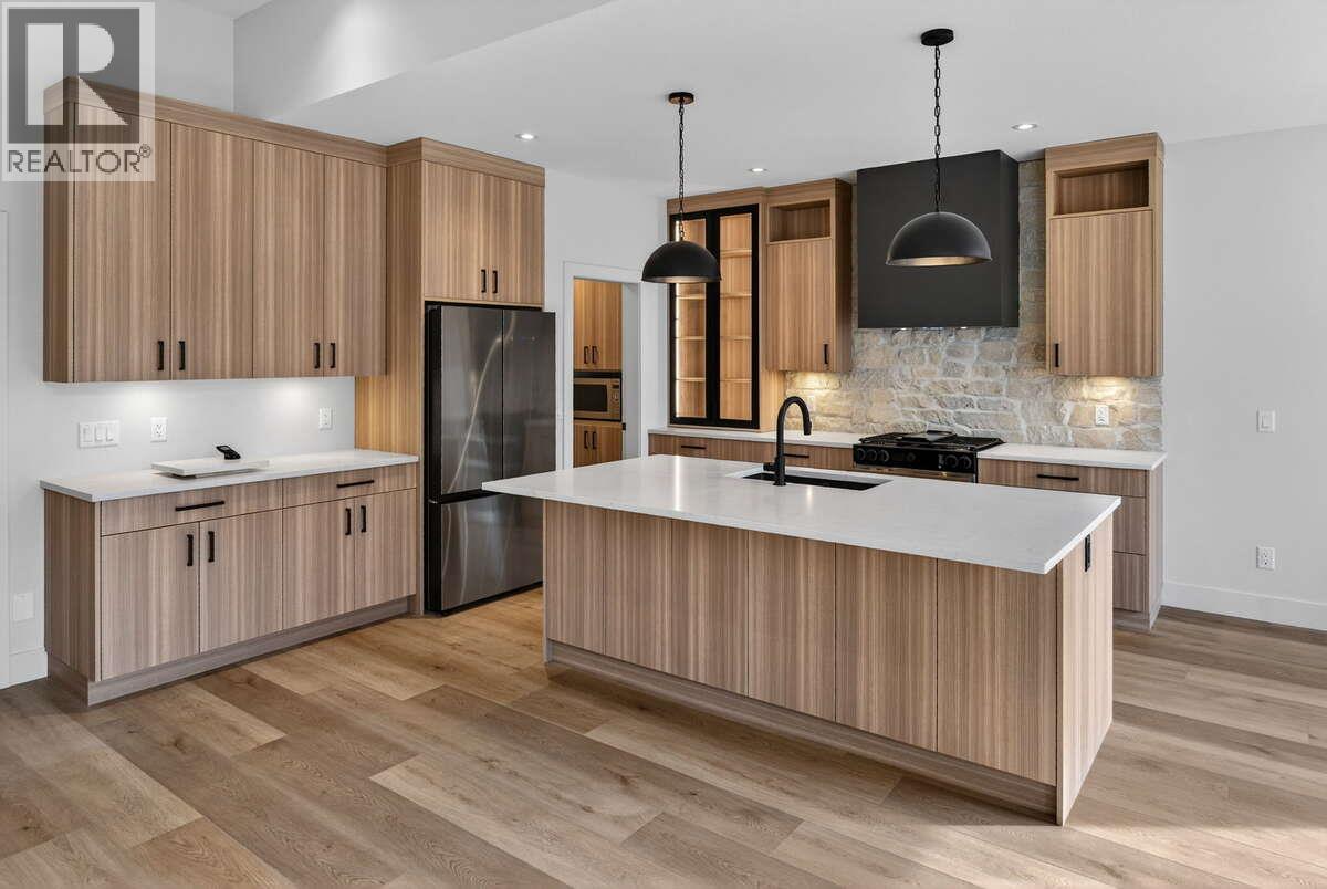 *** For more information, please click Brochure button. *** Welcome to 2125 Montenegro Drive—an exceptionally designed walk-out home in Kirschner Mountain, one of Kelowna’s emerging hillside communities surrounded by nature and scenic trails. Built by Stability Management and move-in ready, this brand-new residence blends warm, modern design with thoughtful functionality. The main level is bright and open, anchored by a beautifully curated kitchen with natural wood cabinetry, quartz countertops, oversized island, gas range, and a full-height stone backsplash. Matte black accents and custom detailing add contrast, while large windows bring in natural light. The living area is centred around a gas fireplace with herringbone tile interior and wood mantle. With 4 bedrooms and 4 bathrooms across 2,928 sq ft, the layout offers excellent flexibility. The primary suite features a spa-inspired ensuite with freestanding tub and glass shower. The lower level includes an additional bedroom, bathroom, and functional living space; plus a 1-bedroom legal suite with private entrance, luxurious finishes, separate laundry, heating, and A/C. Complete with a bright double garage, forced air heating, and central air, this home offers modern comfort just minutes from schools, parks, golf, UBCO, and the airport. GST applicable. (id:62999)
