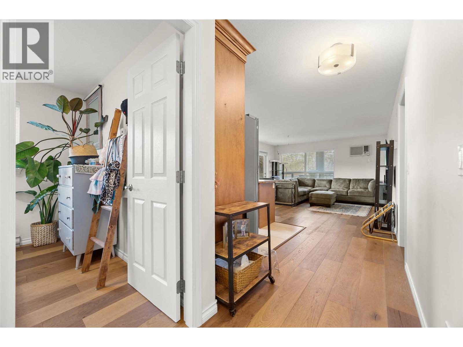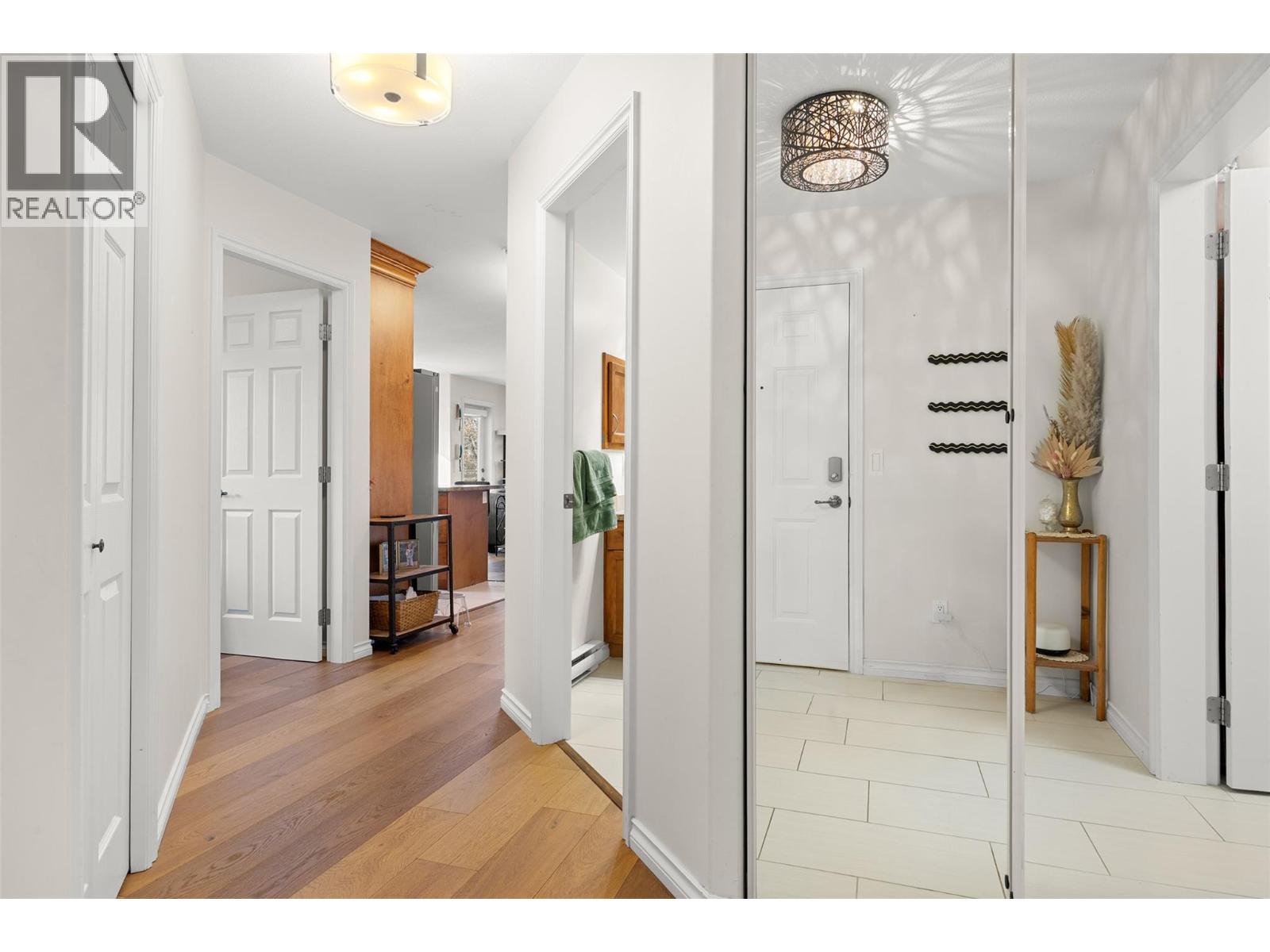 Nestled in the sought-after Brookshire building, a short walk to downtown and the beach. This spacious corner unit with a private entryway offers the perfect blend of comfort, functionality, and central Kelowna living. Bright and inviting, your next home's layout is filled with natural light thanks to large windows that wrap the corner of the home, creating an open and airy feel throughout. This well-designed floor plan features separation between living spaces and bedrooms, offering both privacy and flow. The generous living area connects seamlessly to a covered patio, ideal for morning coffee and relaxing evenings. The large kitchen is both practical and welcoming, with ample counter space and an eat-up area that makes everyday living easy. Thoughtful touches throughout the home, including new flooring, create a warm, livable space that suits a wide range of buyers, from first-time purchasers to downsizers or investors looking for a strong central location. Brookshire is known for its quiet, well-maintained setting while still being close to everything Kelowna has to offer, including the Abbott Street corridor. Just minutes from downtown, the hospital, beaches, shopping, and transit routes, you’ll enjoy convenience without sacrificing a sense of community. A rare opportunity to own a bright corner unit in a proven location. This is Kelowna living made easy. (id:62999)