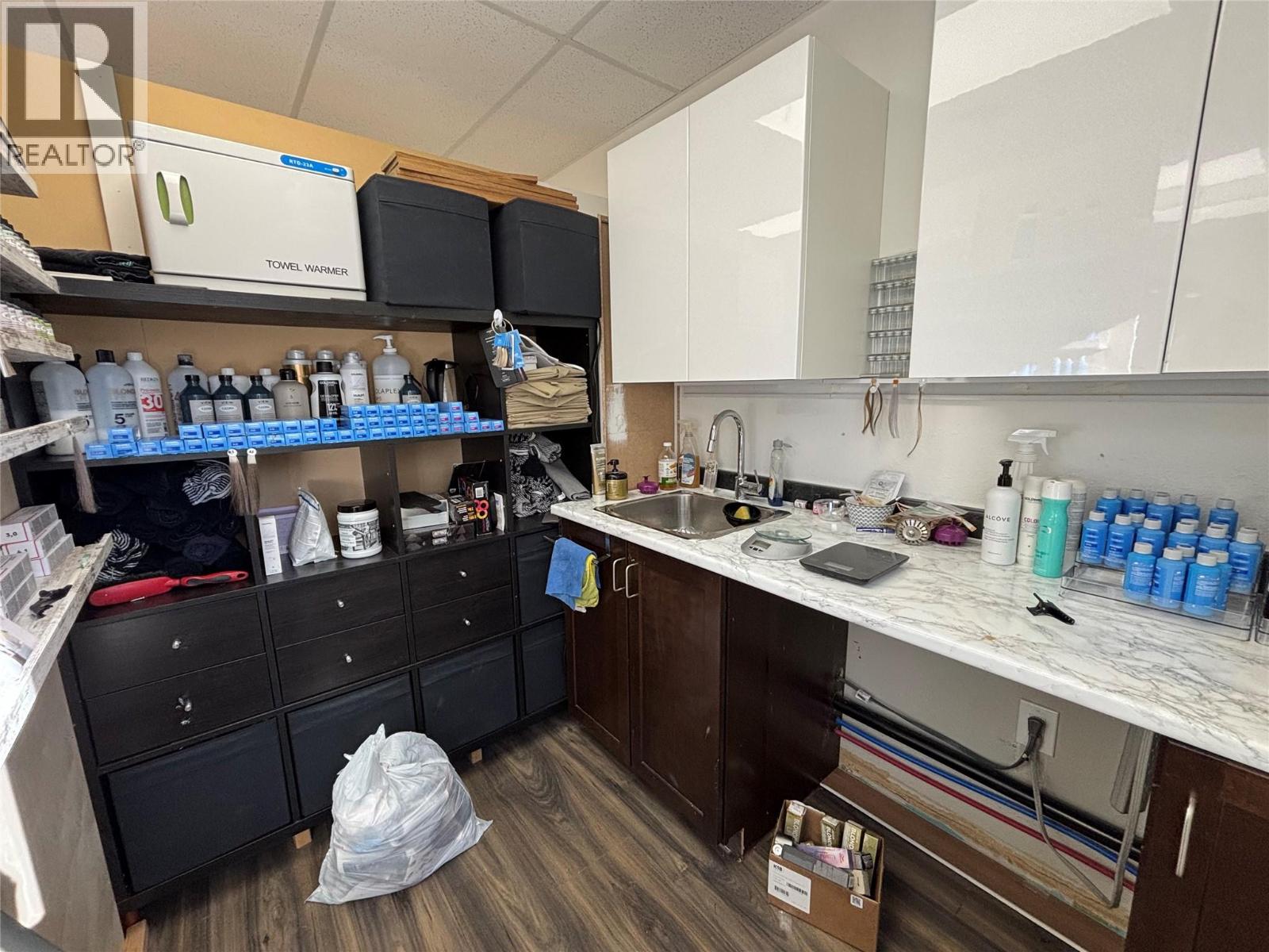 Bright, modern, and move-in ready, 201–1579 Sutherland Ave is a 392 SF second-floor unit offering a turnkey opportunity in a desirable central area of Kelowna. The space features durable vinyl plank flooring and a wall of south-facing windows that flood the unit with natural light, creating an inviting and elevated environment for both clients and customers. Currently built out as a hair salon, the open-concept layout offers excellent flexibility for a variety of uses, complemented by thoughtful improvements including two sinks—one of which is located within a well-designed storage area featuring ample counter space and shelving. Located within a well-maintained professional office building, the unit includes one dedicated parking stall, convenient access to a shared front parking lot for clients and customers, and use of common second-floor washrooms. A rare opportunity to secure a bright, functional, and versatile space in one of Kelowna’s most accessible central locations. Lease is triple net; the gross monthly rent includes estimated additional rent of $7.50 psf 2025. (id:62999)