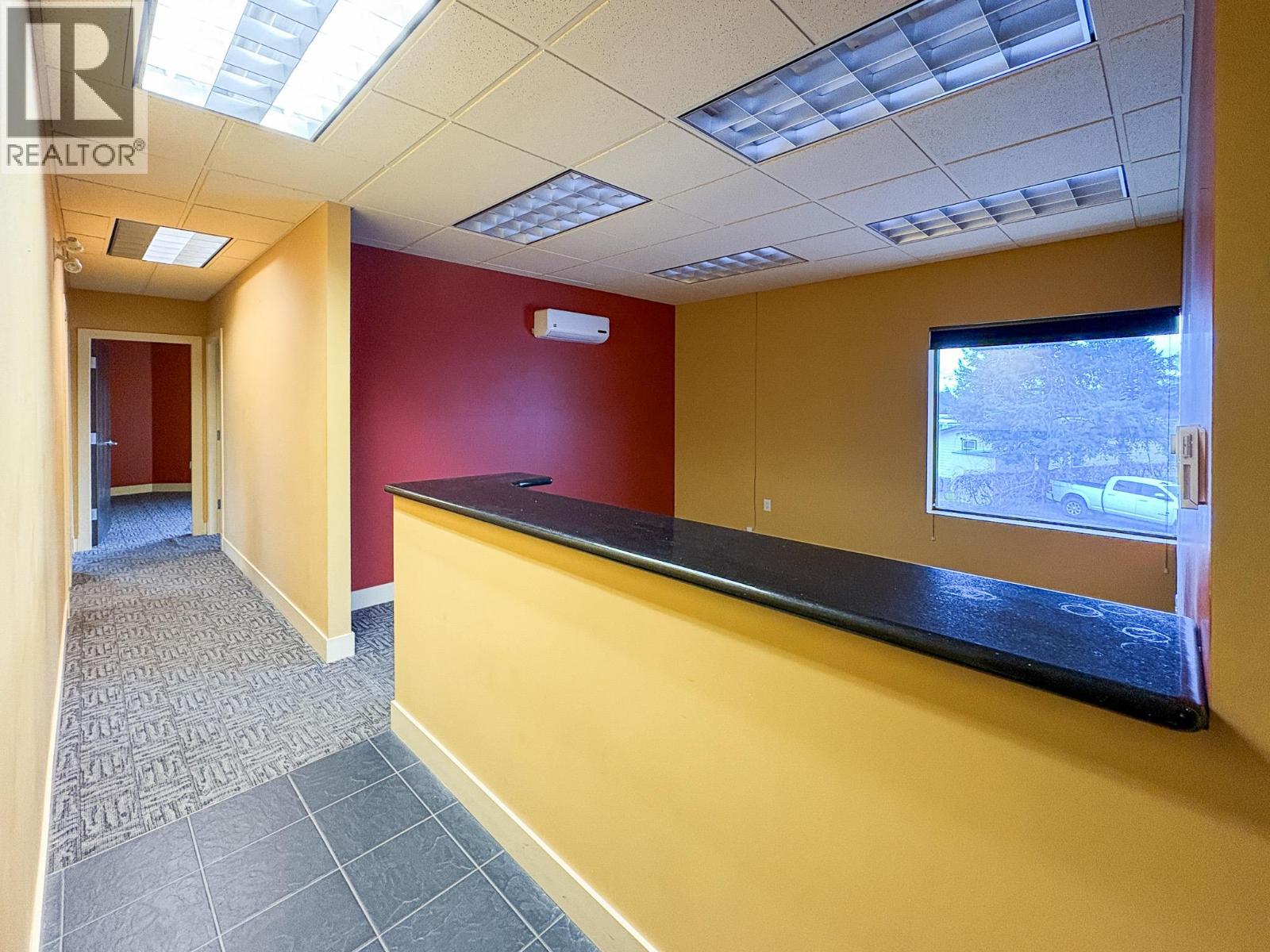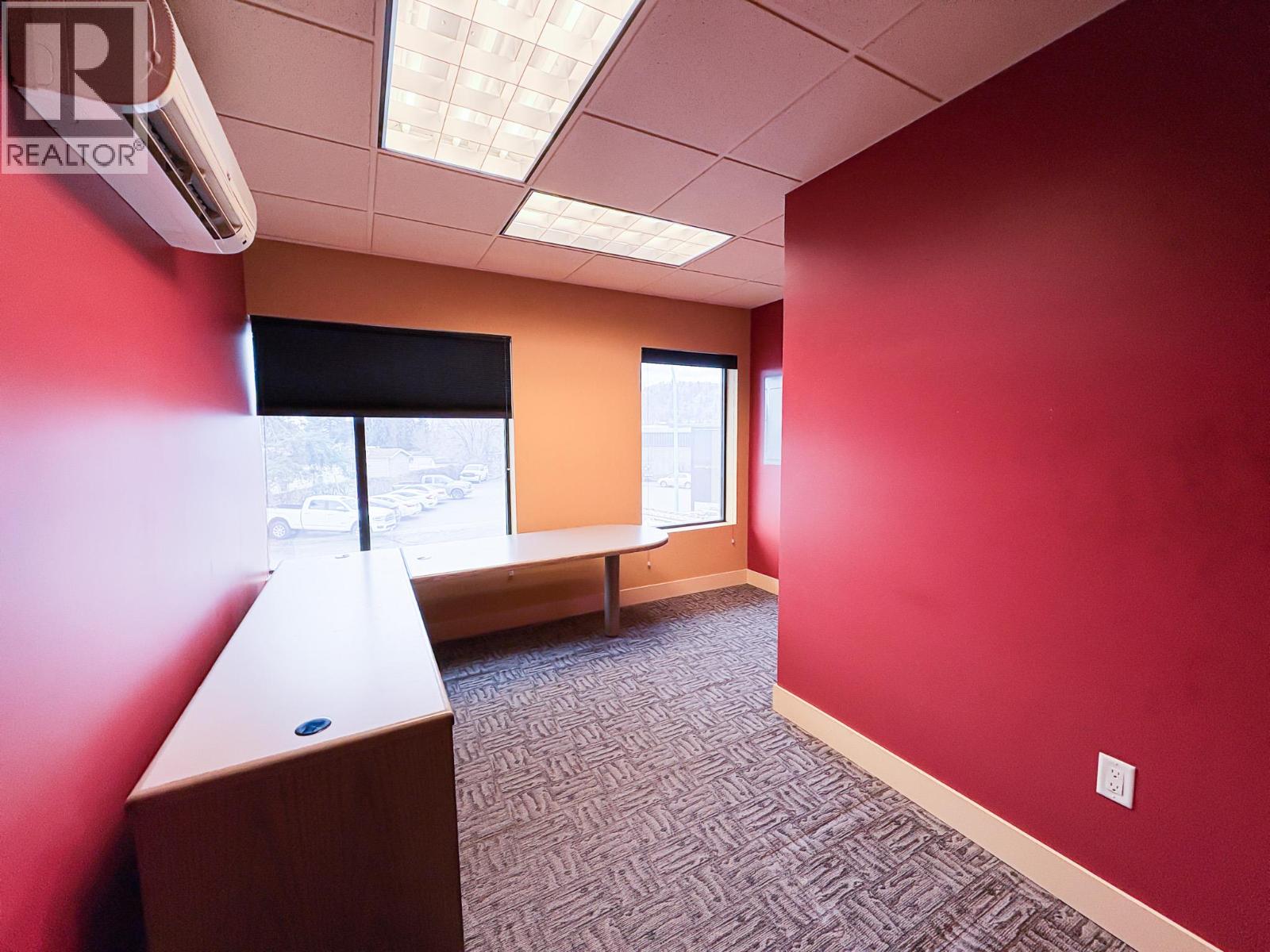 This 1,356 SF second-floor office space offers a clean, well-finished layout featuring a reception area, four (4) private offices, a boardroom, in-unit kitchenette, in-suite washroom, and storage room. The space is well suited for professional or administrative users seeking a functional and efficient office environment. Located at the quieter end of Banks Road, the property provides a calm working setting while remaining conveniently close to Highway 97, surrounding amenities and provides tremendous value for the space. One designated parking stalls plus plenty nearby street parking. Available immediately. (id:62999)
