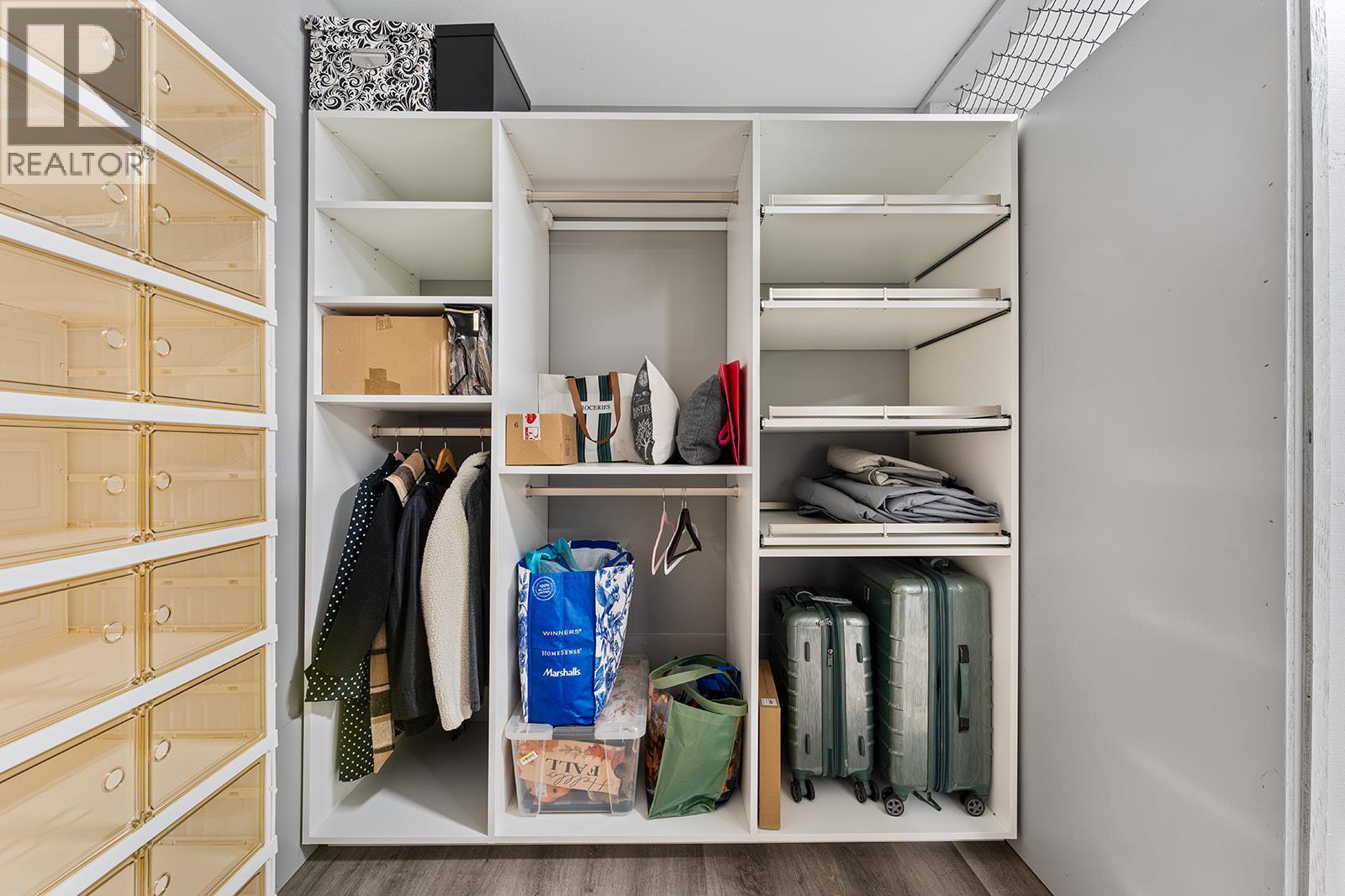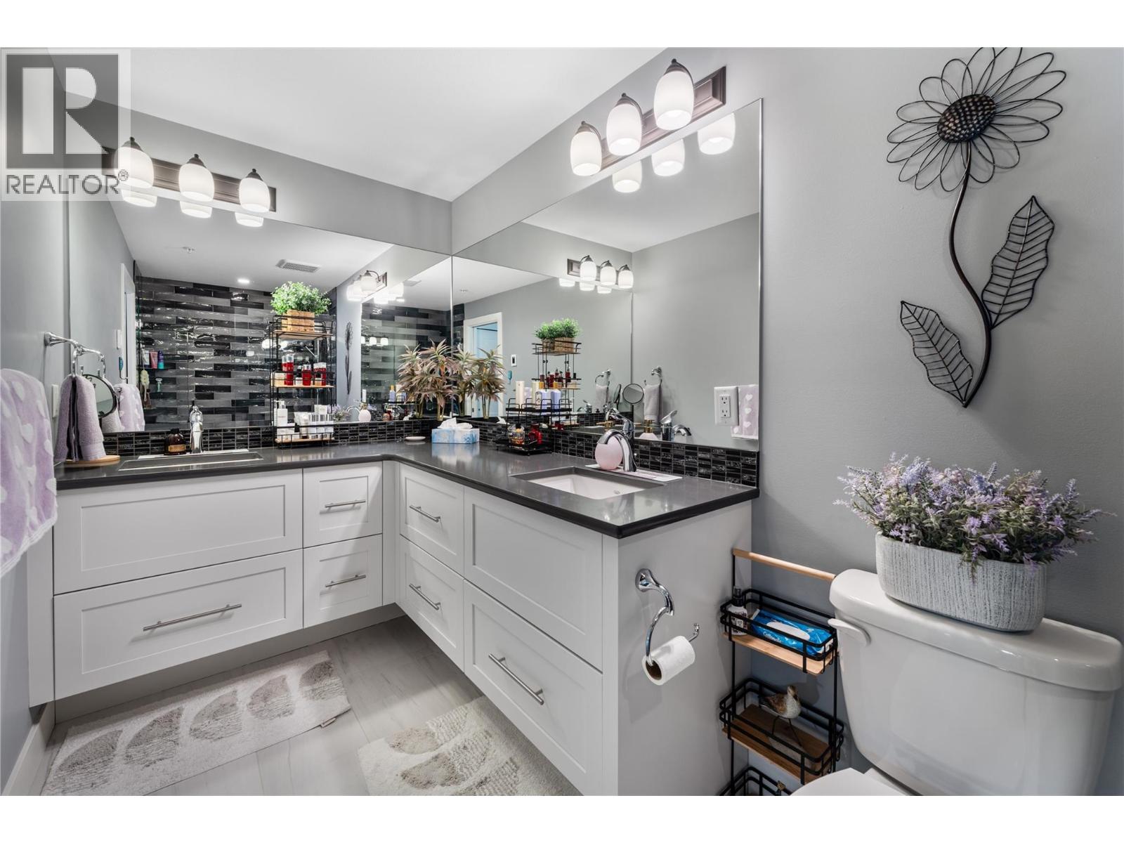 Stunning lakeview 2 bedroom, 2 bathroom condo offering two spacious balconies. This thoughtfully designed floorplan features custom finishes throughout, including over $30,000 in California Closets upgrades that add both function and a high-end, tailored feel. The chef inspired kitchen offers stainless steel appliances, custom cabinetry, a pantry, and a large island that anchors the open concept living and dining space, complete with a Dimplex electric fireplace and ideal for entertaining. The primary bedroom offers a private retreat with a beautifully appointed ensuite featuring a generous walk in shower, along with access to a covered deck perfect for morning coffee with breathtaking lake views. A second full bathroom with a bathtub provides comfort for guests or family. Enjoy year round comfort with forced air heating, central air conditioning, and on demand hot water, complemented by a fresh, modern designer colour palette that shows like new. An oversized storage locker on the same floor adds everyday convenience. At Granite, residents enjoy a rooftop hot tub outdoor pool, plus full access to McKinley Beach amenities including a marina, fitness centre, courts, gardens, and the Our Place Amenity Centre. Located 15 minutes to the airport, 20 minutes to downtown Kelowna, and 6 minutes to Glenmore shopping, this home offers the perfect blend of luxury, convenience, and lakeside living. (id:62999)