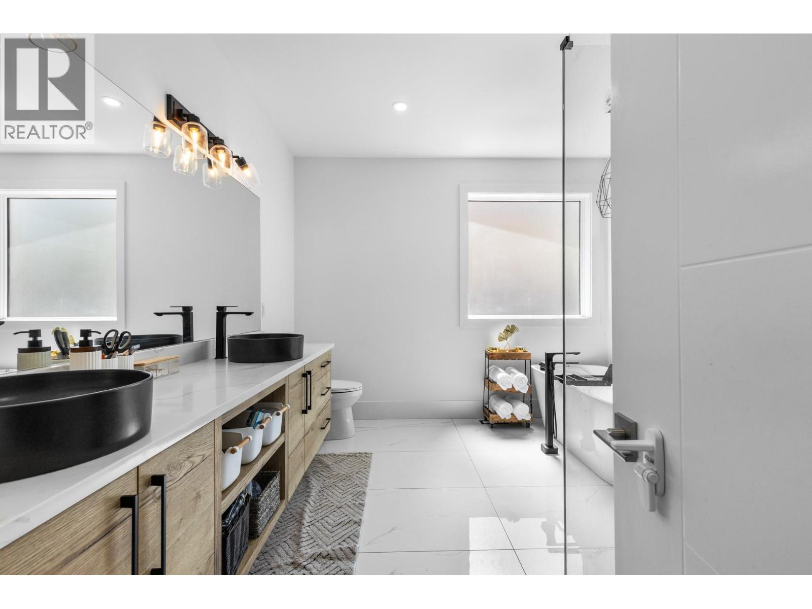 No GST | Legal Suite | Lake, Mountain & City Views | New Home Warranty | Quick Possession This beautiful 2021 built home in the sought-after Lone Pine Estates neighborhood is a true showstopper. With over 3,875 sq. ft. of well-designed living space, this 6 beds, 4 bath home offers amazing views, a flexible layout, and high-quality finishes throughout. The home features high ceilings along with large transom windows, creating a bright, open feel and allowing even more natural light to fill the space. Warm wood accents add charm throughout, and the exterior boasts stacked stone detailing and stucco siding for excellent curb appeal and low maintenance. A butler’s pantry with a second fridge adds convenience, while a security system with cameras provides peace of mind. The upper floor includes 3 spacious beds and 2 full bath, including a large and private primary bedroom. You'll love the two front balconies with stunning southwest views of the lake, mountains, and city. A third balcony at the back of the home is perfect for relaxing or entertaining. The main floor features a fourth bedroom, a full bathroom, and a second living area with a wet bar: ideal for aging parents, growing kids, or guests seeking privacy. Also on the main level is a legal 2 beds, 1 bath suite with a separate entrance and its own laundry, it's a fantastic mortgage helper or space for extended family (Currently rented for $1800/month). 7mins to golf, 10 minutes to shopping, 13 minutes to UBC Okanagan, 40 minutes to Big White. (id:62999)