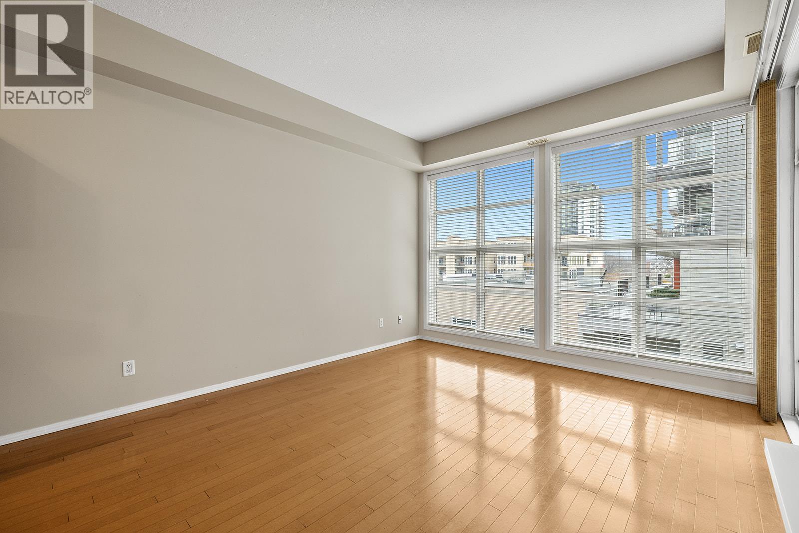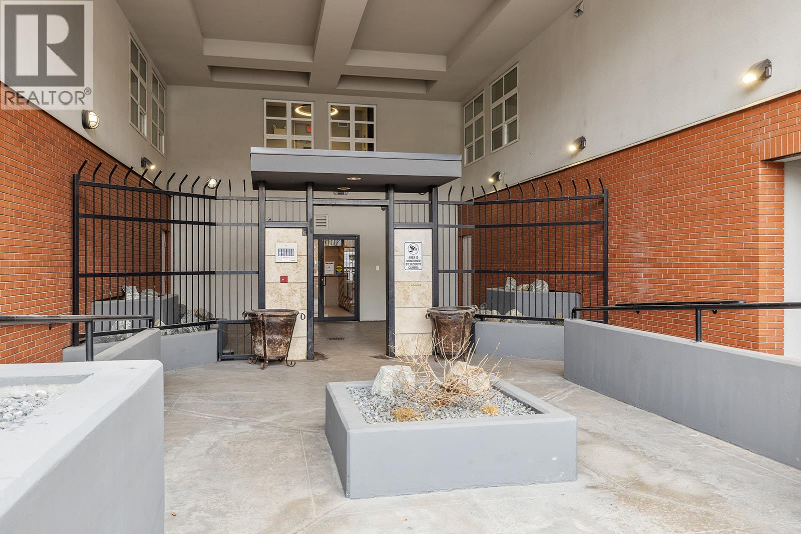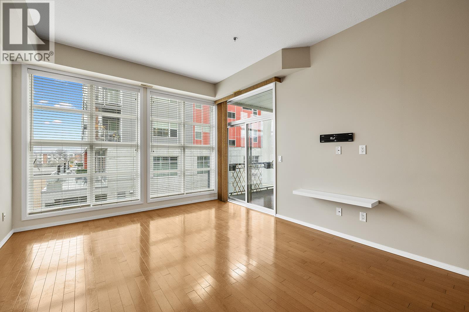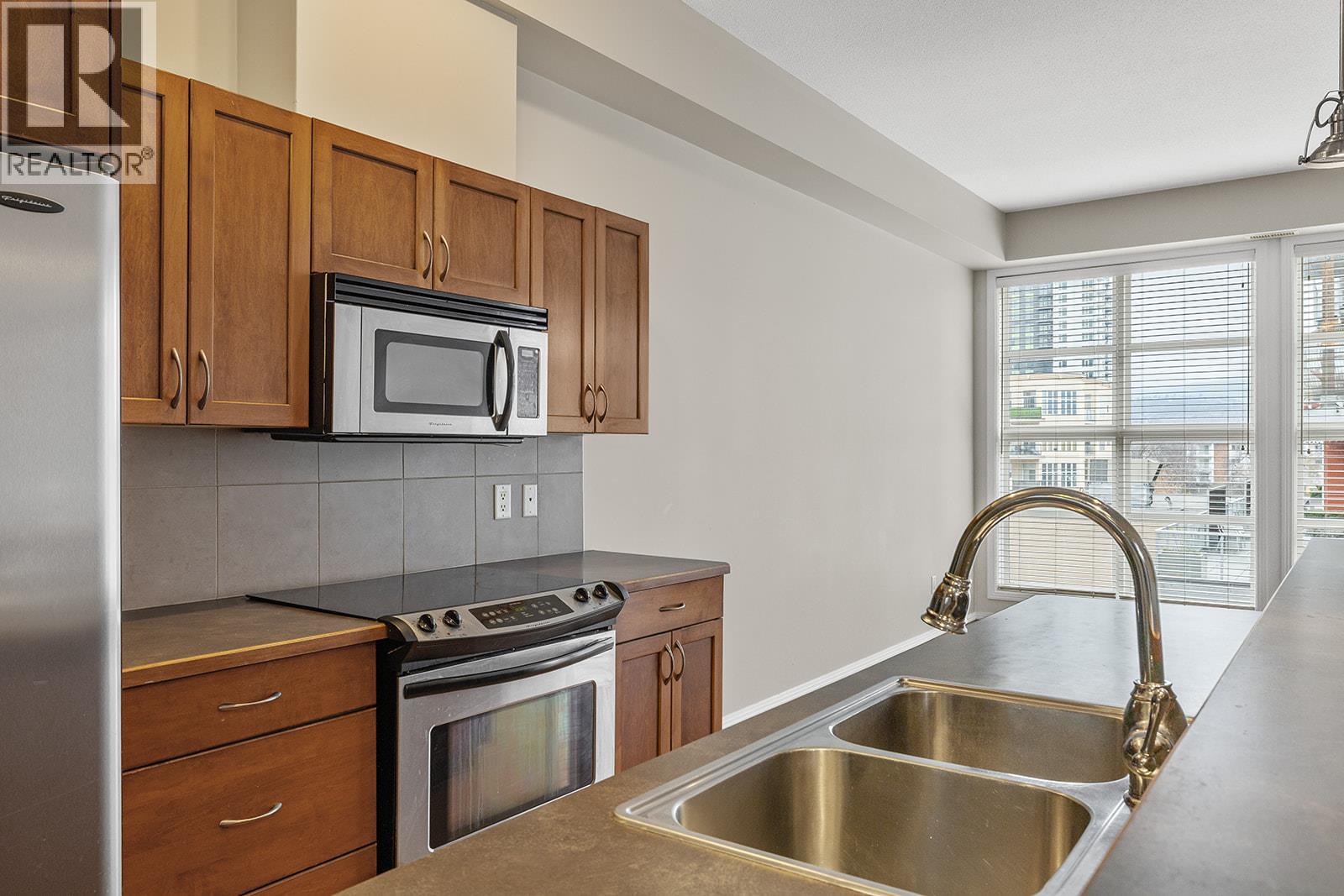 Ready to experience the vibrant heart of Kelowna’s Cultural District? This bright two bedroom, one bathroom condo at Ellis Court is vacant and ready for you to move in! Unbeatable location is everything: step outside your door and you are moments away from Prospera Place, Kelowna Community Theatre, YMCA, local breweries, exceptional restaurants, unique shops and Safeway. The lake and beaches are just minutes away, offering the perfect urban-meets-nature lifestyle. The condo itself features an open floor plan enhanced by soaring 10-foot ceilings and huge windows, flooding the space with natural light. The living room boasts hardwood flooring and leads to an east-facing covered deck with a mountain view. The kitchen is complete with maple cabinetry, stainless steel appliances, and a raised eating bar. Building amenities include secure underground parking (with one assigned stall), central heat and air conditioning, in-unit laundry, a storage locker, and a sophisticated glass elevator. Ellis Court is also a pet-friendly building (with restrictions). (id:62999)